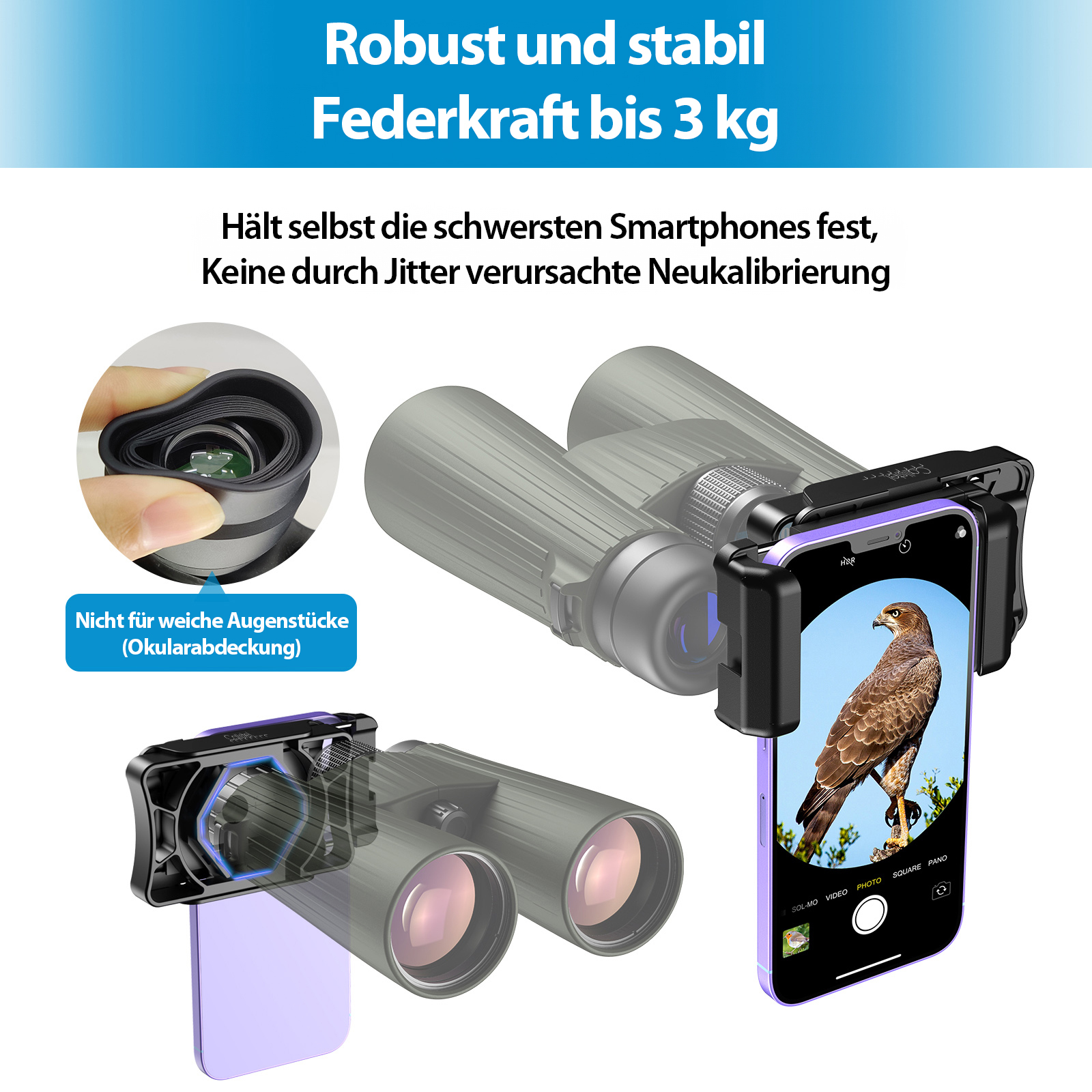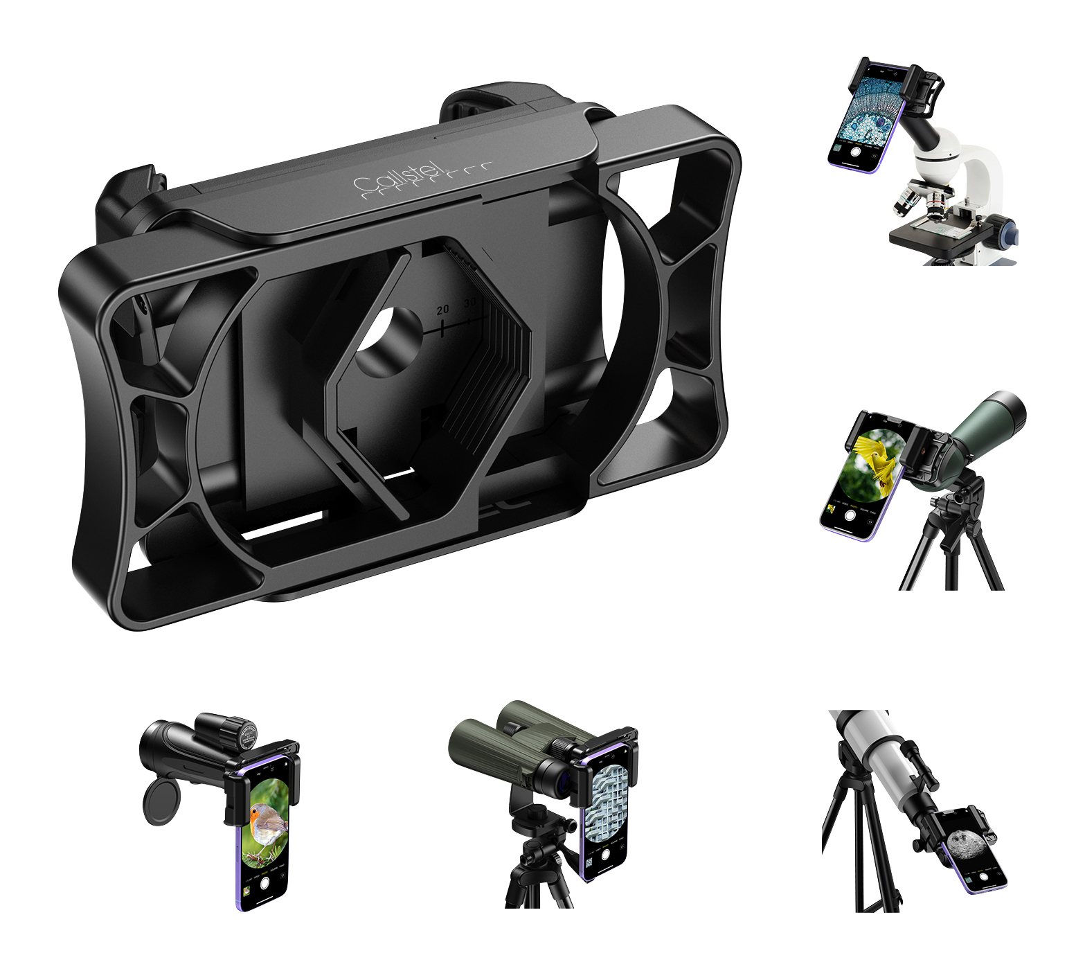 (lifepr) (Buggingen, 12.03.2024) Mit dem Universal-Smartphone-Okularadapter von Callstel kann man sein Smartphone auf Teleskop, Mikroskop und Fernglas adaptieren und für erstaunliche Tele- und Makroaufnahmen nutzen!