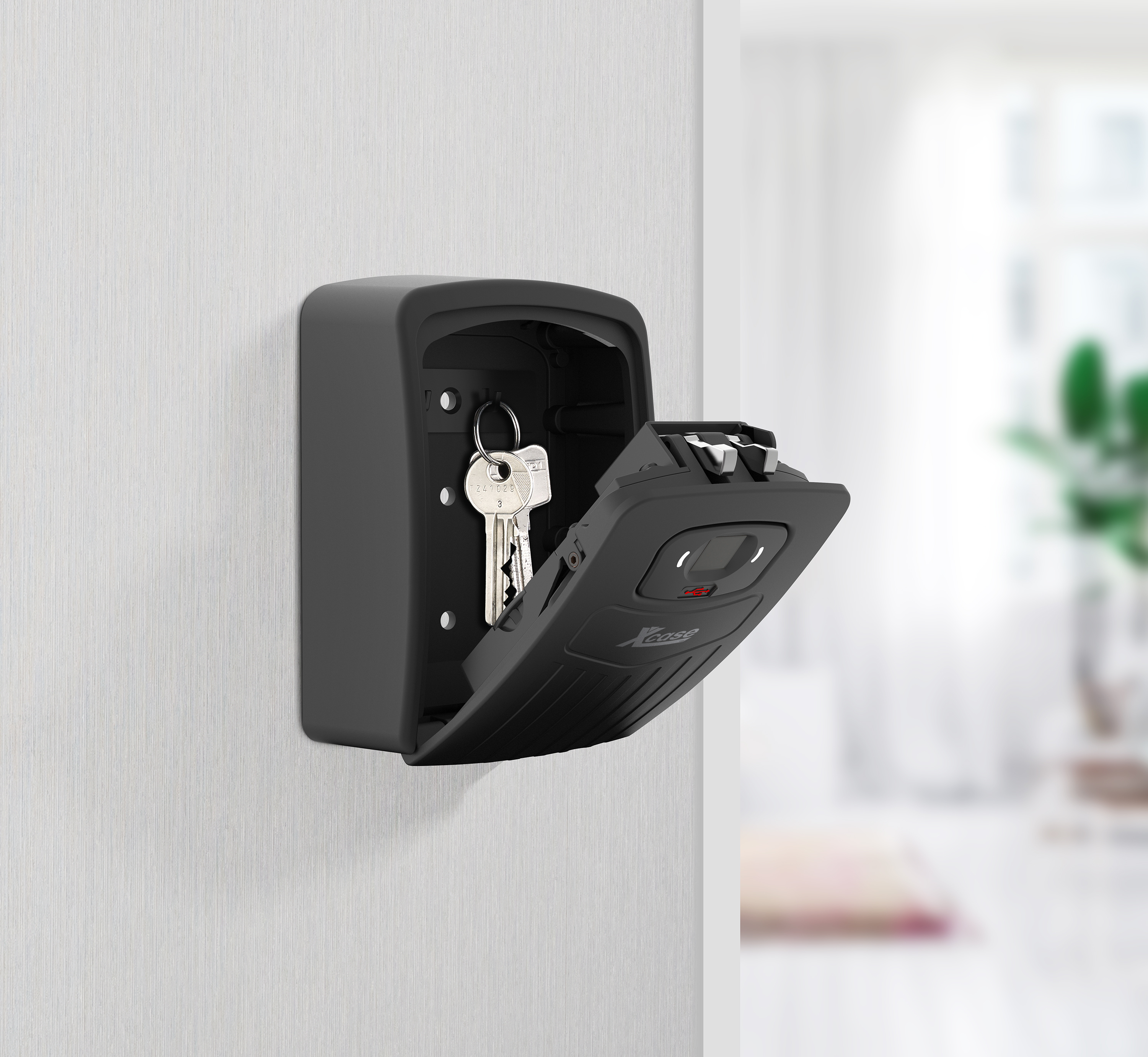 Ideale Lösung für die sichere Aufbewahrung: Im smarten Schlüssel-Safe mit Fingeradruck-Erkennung von Xcase sind die Schlüssel bestens vor unbefugter Benutzung geschützt. Dank des robusten und wetterfesten Metallgehäuses ist er auch für die Außenmontage geeignet.