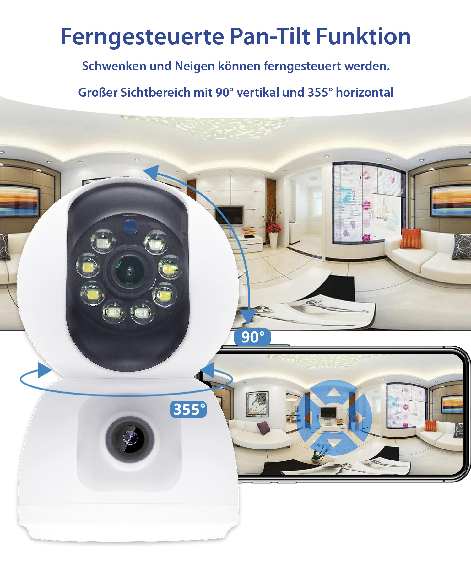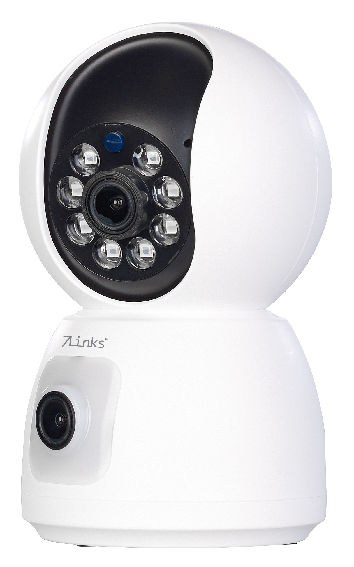 Alles im Blick: Die WLAN-Full-HD-Kamera von 7links deckt per Pan-Tilt-Kameralinse nicht nur einen 360° Überwachungsbereich ab, sondern blickt dank einer zweiten, fest installierten Linse auch in zwei Richtungen gleichzeitig. Es gibt praktisch keine toten Winkel und man sieht alles, was sich vor der Kamera abspielt - in hochauflösendem Full HD.