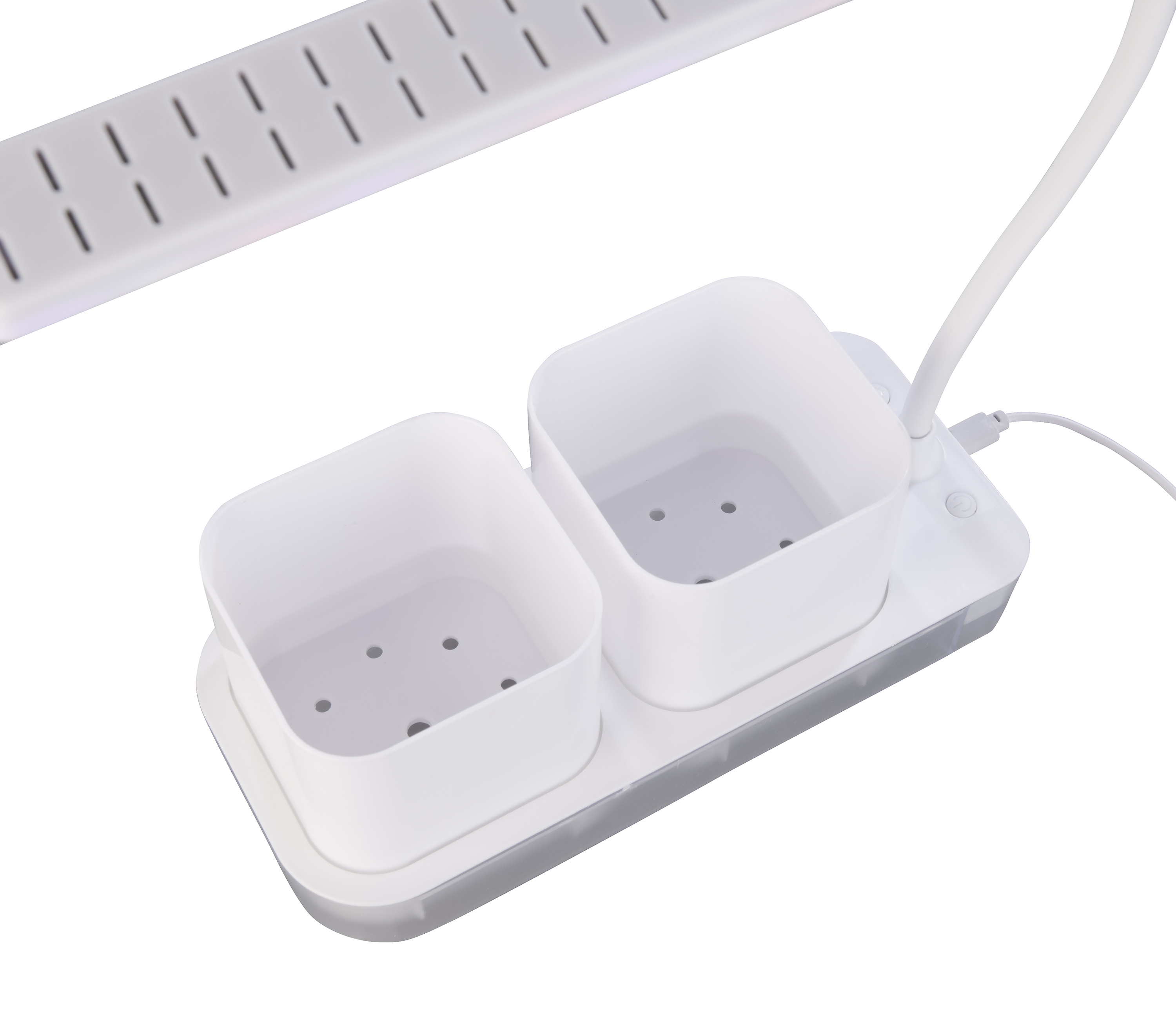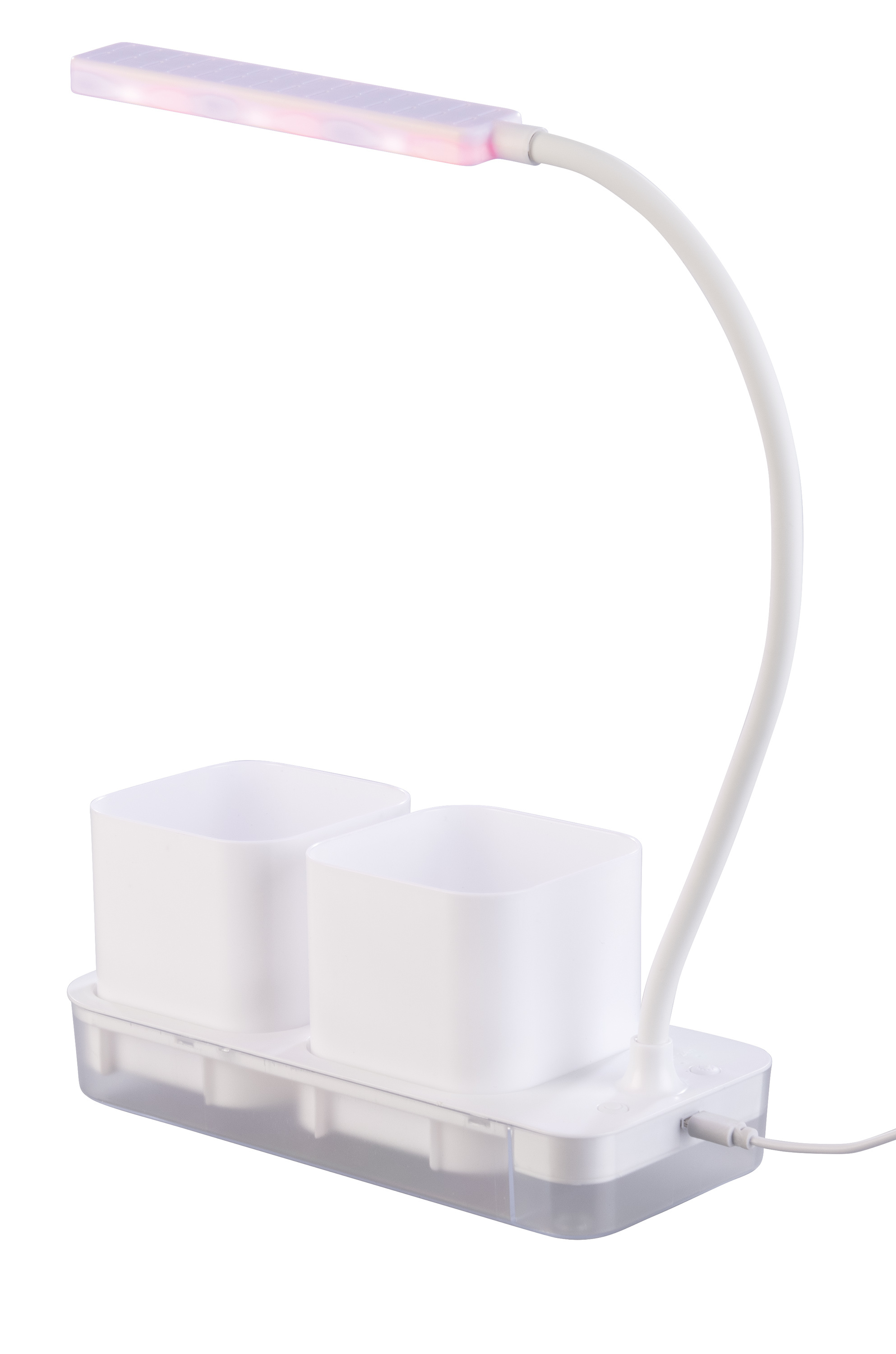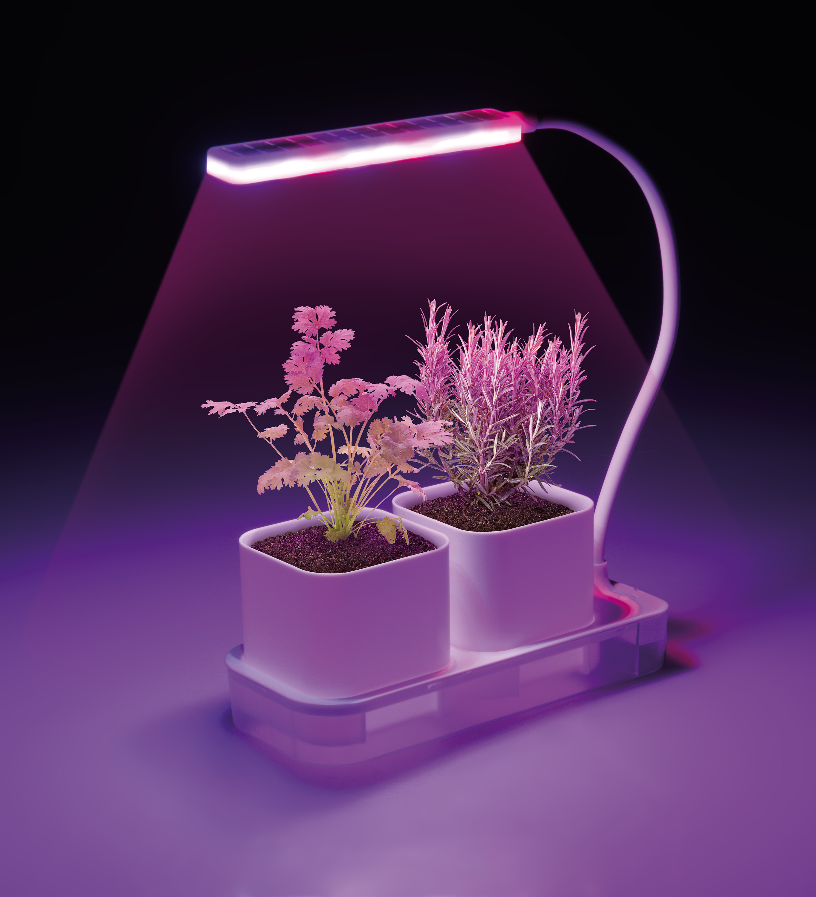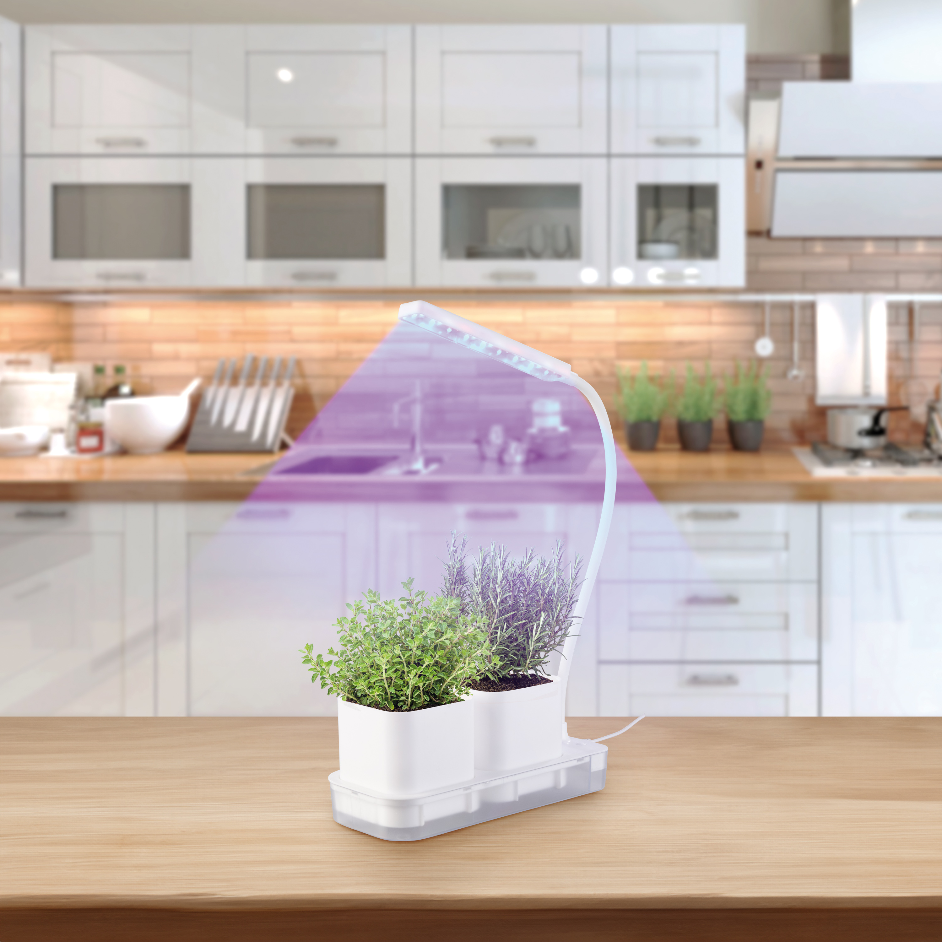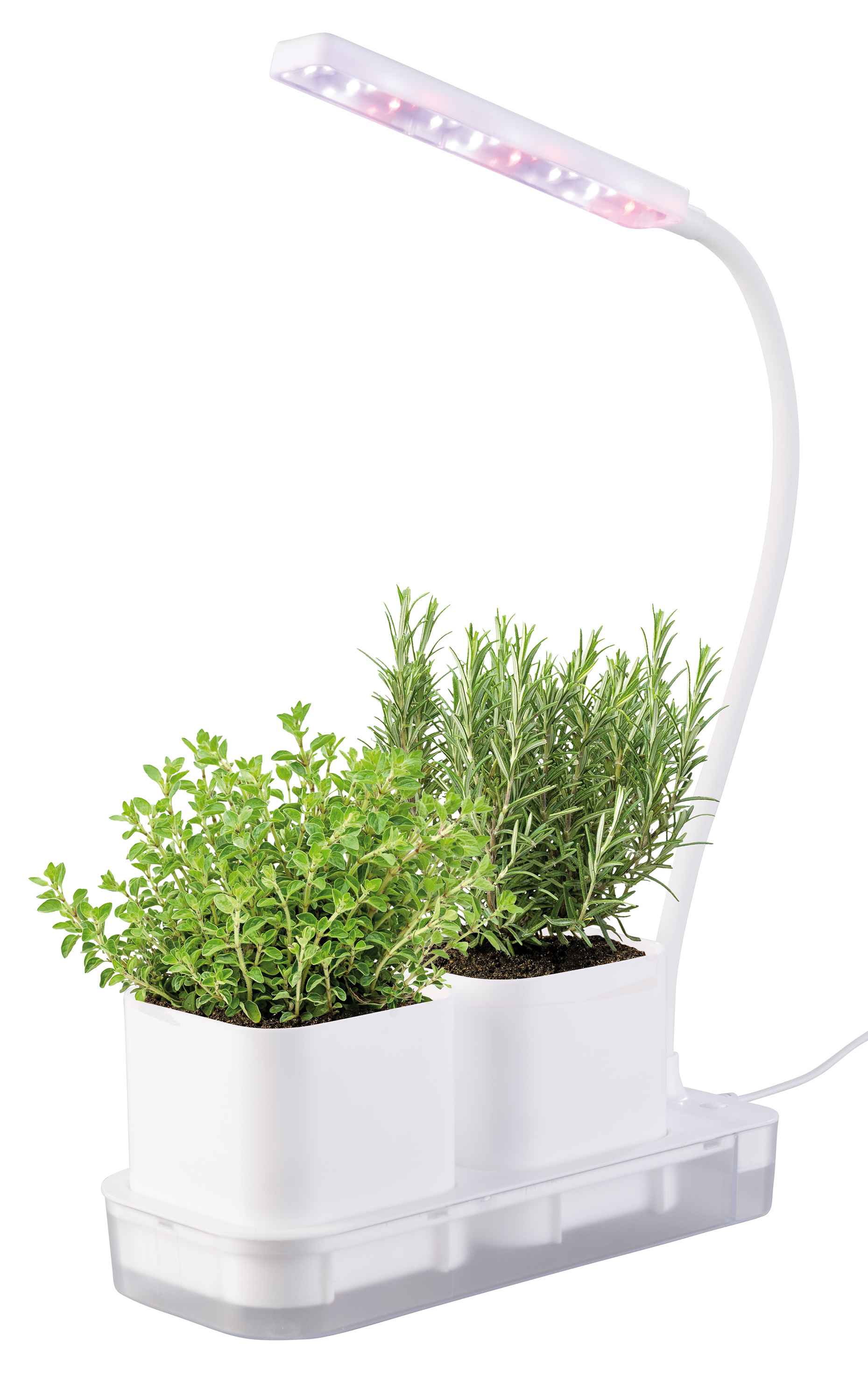 Bestens versorgt: Dank flexiblem Schwanenhals mit Wachstums-LEDs und einer Timer-Funktion stellt man die optimale Beleuchtung ein. Durch Licht und den Wassertank bleiben die Pflanzen dabei immer bestens versorgt, auch wenn man nicht zu Hause ist.