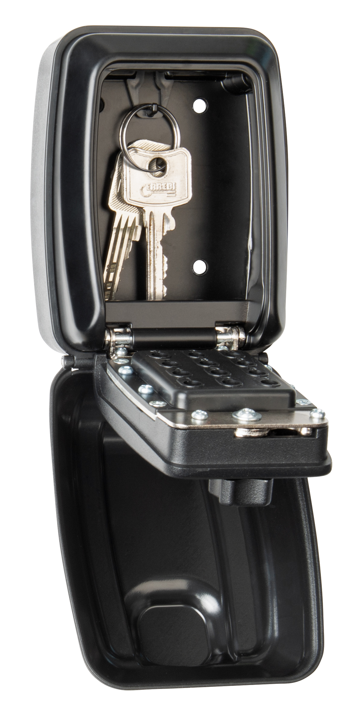 Sichere Wandmontage: Der Schlüssel-Safe ist an der Rückseite vorgebohrt. So sind die Schrauben nach der Montage verdeckt und können nicht von außen gelöst werden.