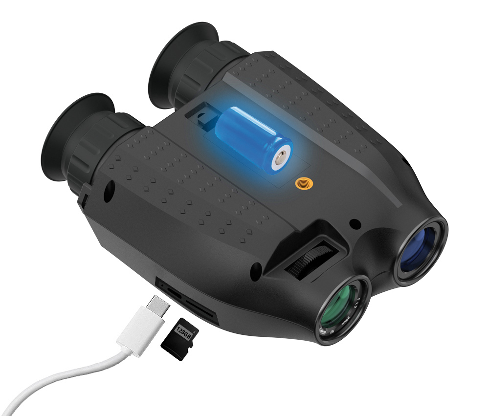 Jederzeit fotografieren: Ist eine microSD-Karte eingesteckt, dreht man Videos in hoher 2,5K-Auflösung oder schießt Fotos. Um die Schnappschüsse zu archivieren, verbindet man das Nachtsichtgerät einfach per USB mit dem PC.