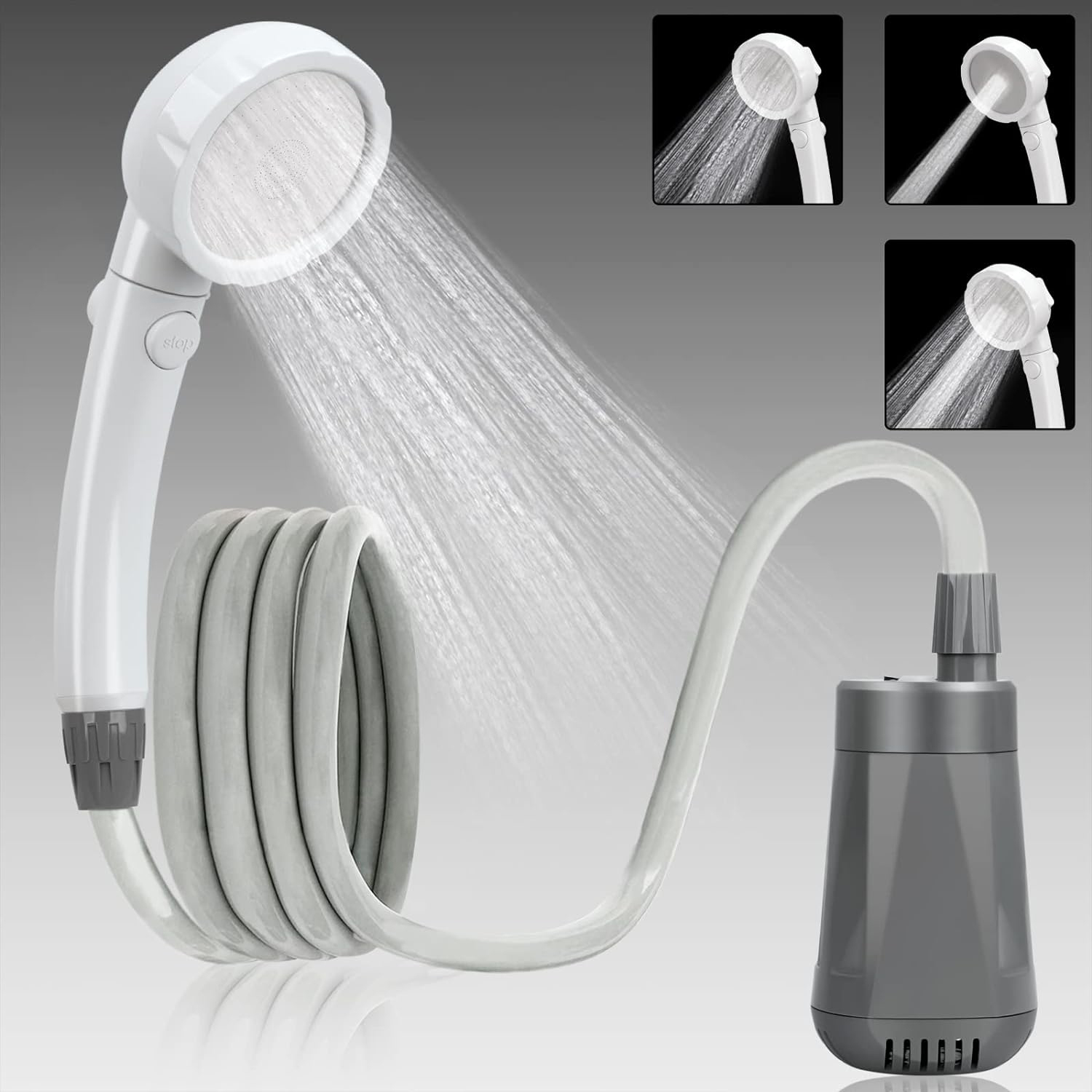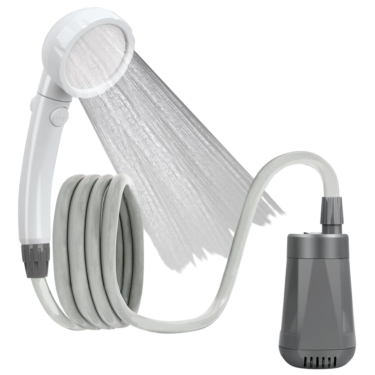 Die Bedienung der Dusche ist denkbar einfach. Dank eines integrierten Akkus ist kein Stromanschluss erforderlich. Die Dusche wird an einem gewünschten Ort platziert, die Pumpe in einen gefüllten Wassereimer getaucht und eingeschaltet – schon kann die Erfrischung beginnen.