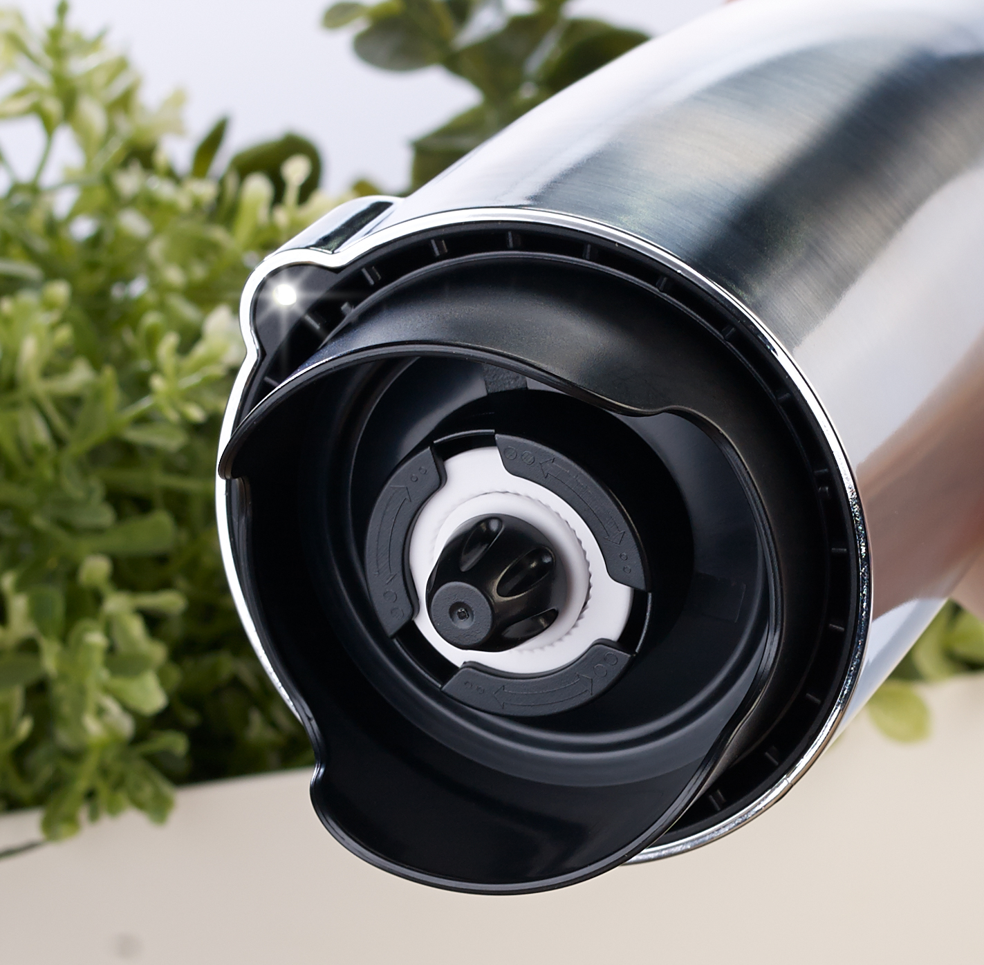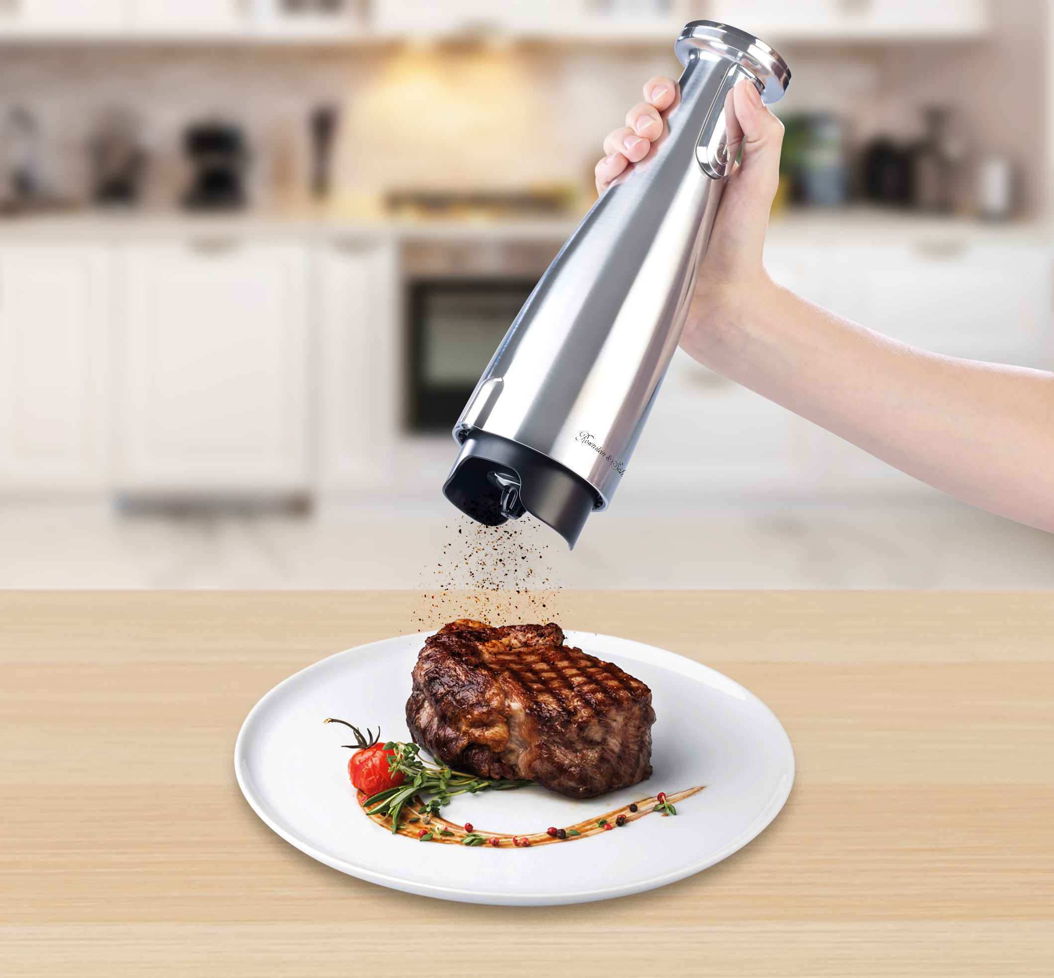 Perfekt dosiert von grob bis fein: Den Mahlgrad stellt man individuell an jedem Behälter stufenlos ein. Jetzt nur noch den Knopf drücken. Schon würzt man genau so viel und so fein, wie man es für sein Essen wünscht!