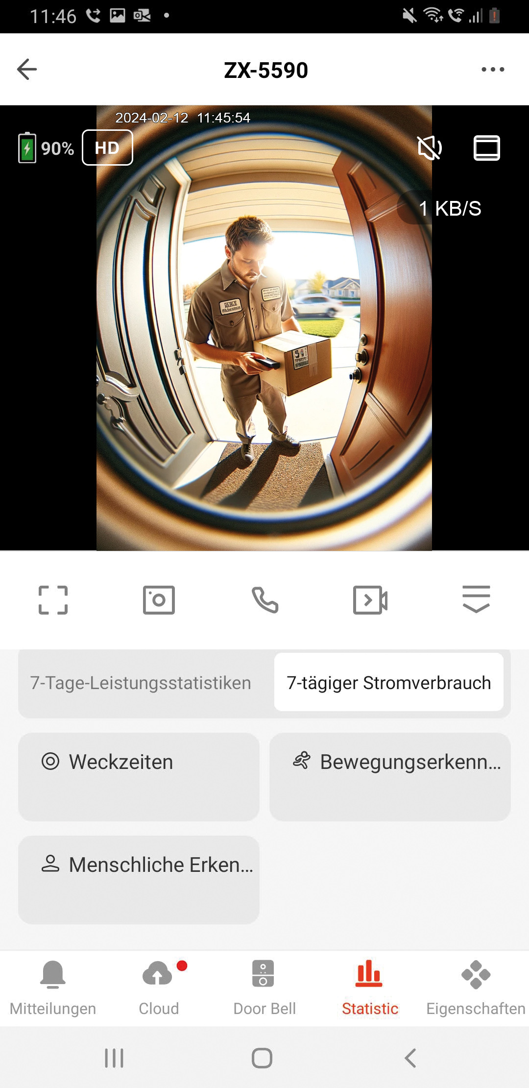 Mit KI-Technologie: Die Türklingel erkennt Personen und Pakete vor der Haustür, ohne dass jemand die Klingel betätigt, und informiert per App-Benachrichtigung. So entgeht einem kein Päckchen-Diebstahl!