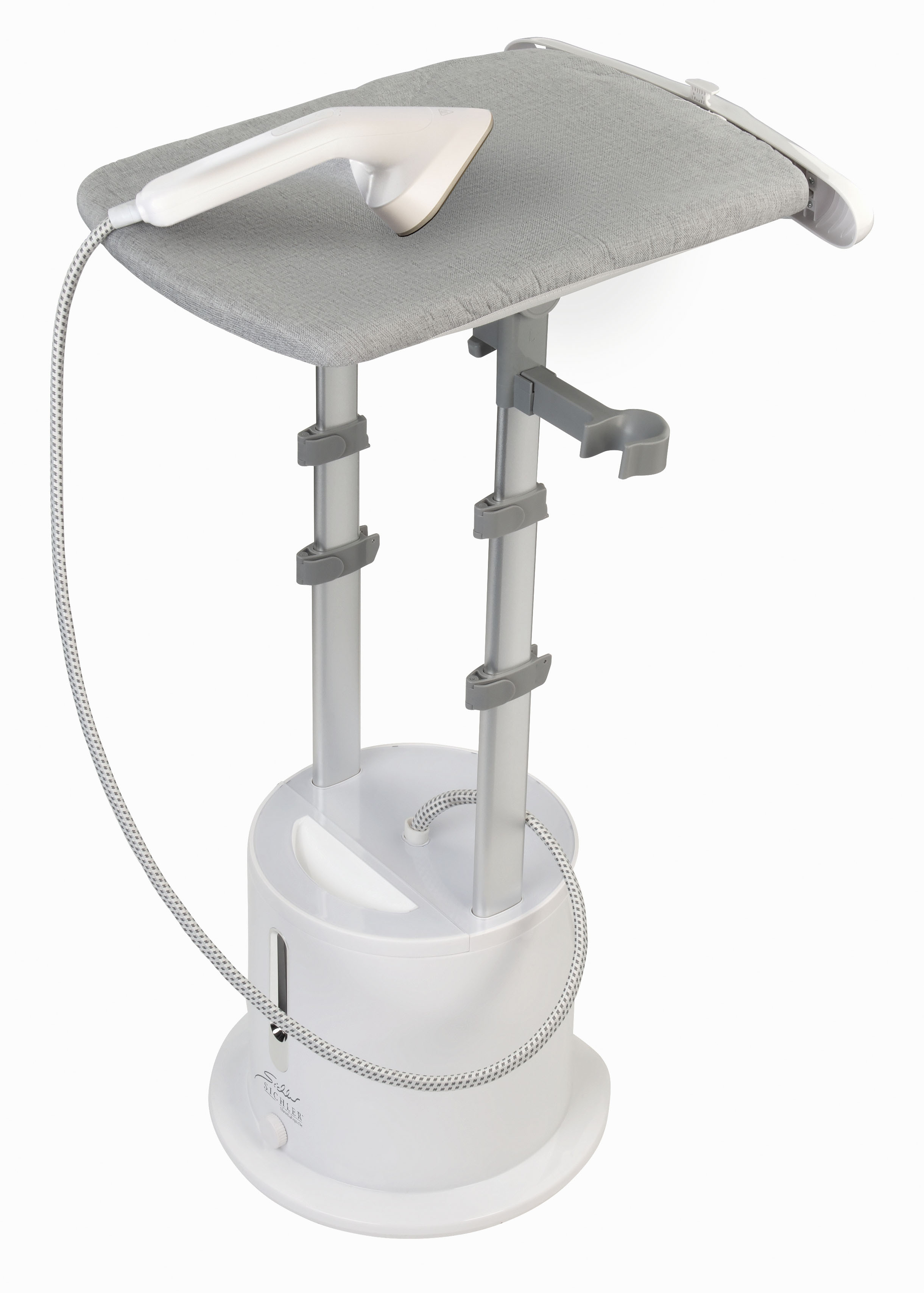 Flexible Einstellungen: Der Bügeltisch kann horizontal, vertikal oder schräg eingestellt werden. Auch die Höhe der Teleskopstange lässt sich einfach an die jeweiligen Bedürfnisse anpassen.