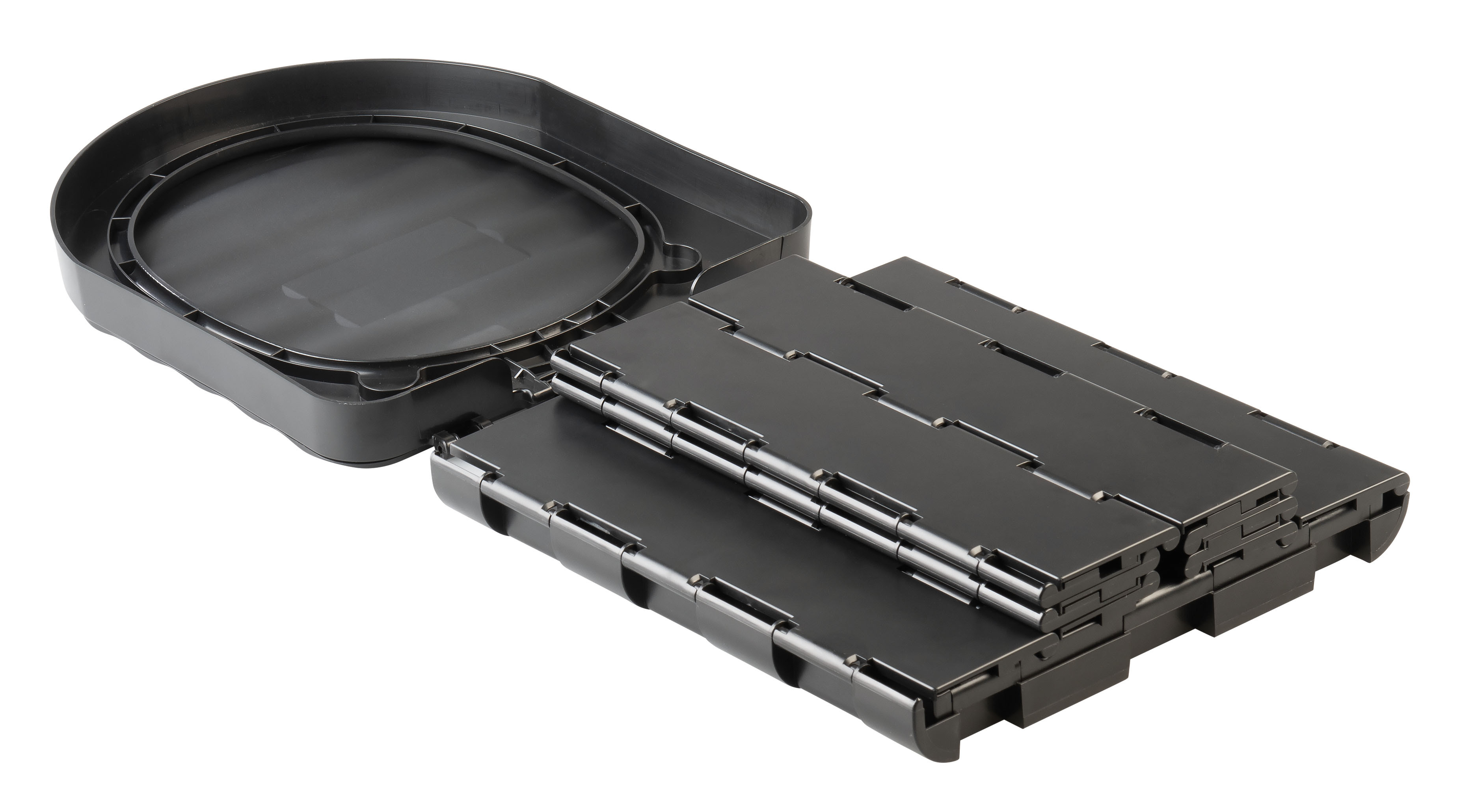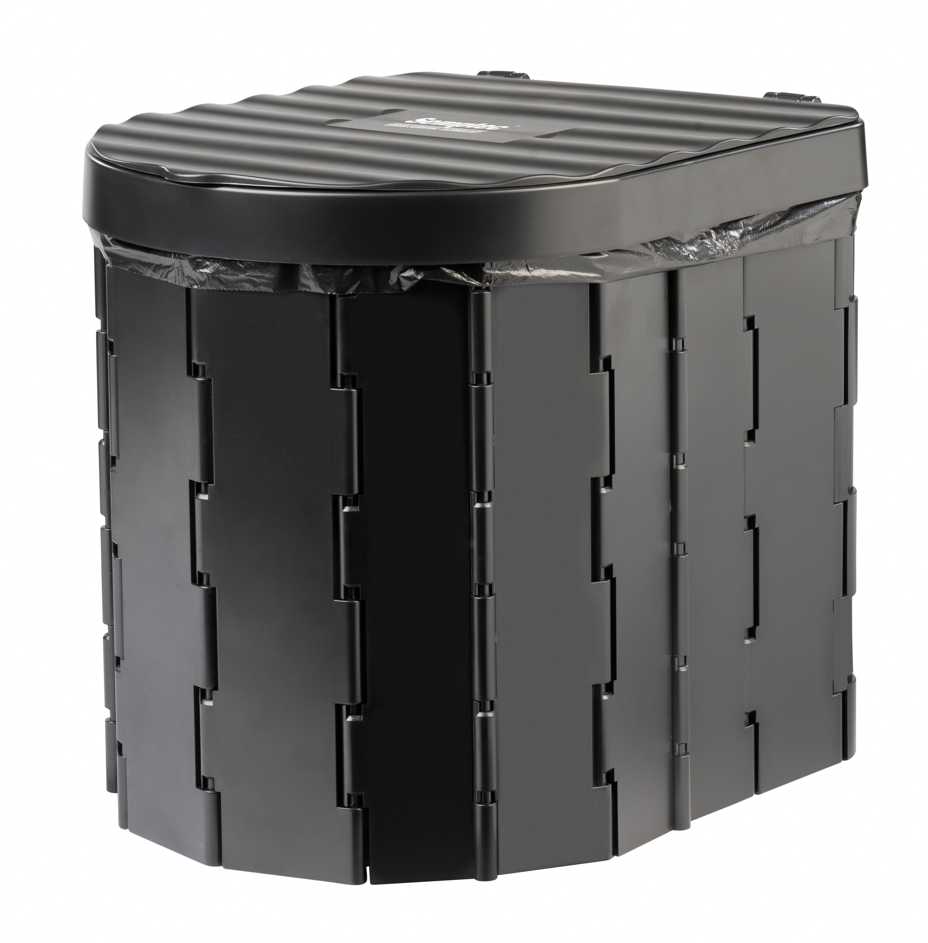 Die Campingtoilette lässt sich flach zusammenklappen und in der praktischen Tragetasche verstauen. So ist sie leicht zu transportieren und überall einsetzbar.