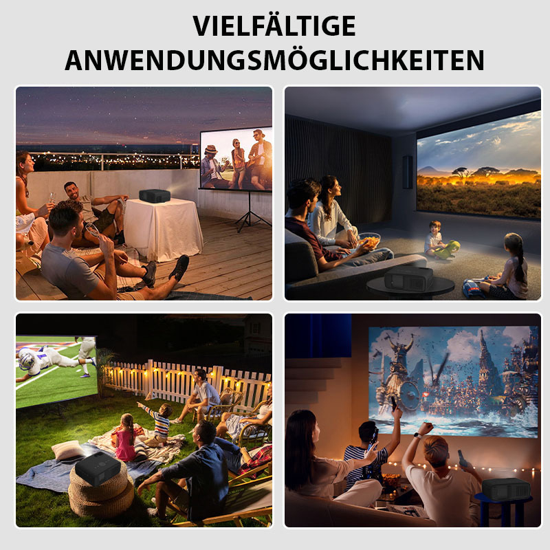 Der LED-Heim-Beamer von SceneLights bringt Filme, Videos, Fotos und vieles mehr in beeindruckender Full HD-Qualität auf eine Diagonale von bis zu 3,8 Metern. Mit einer Helligkeit von 7.000 Lumen lassen sich Lieblingsinhalte auch in halbdunklen Räumen in höchster Brillanz genießen.