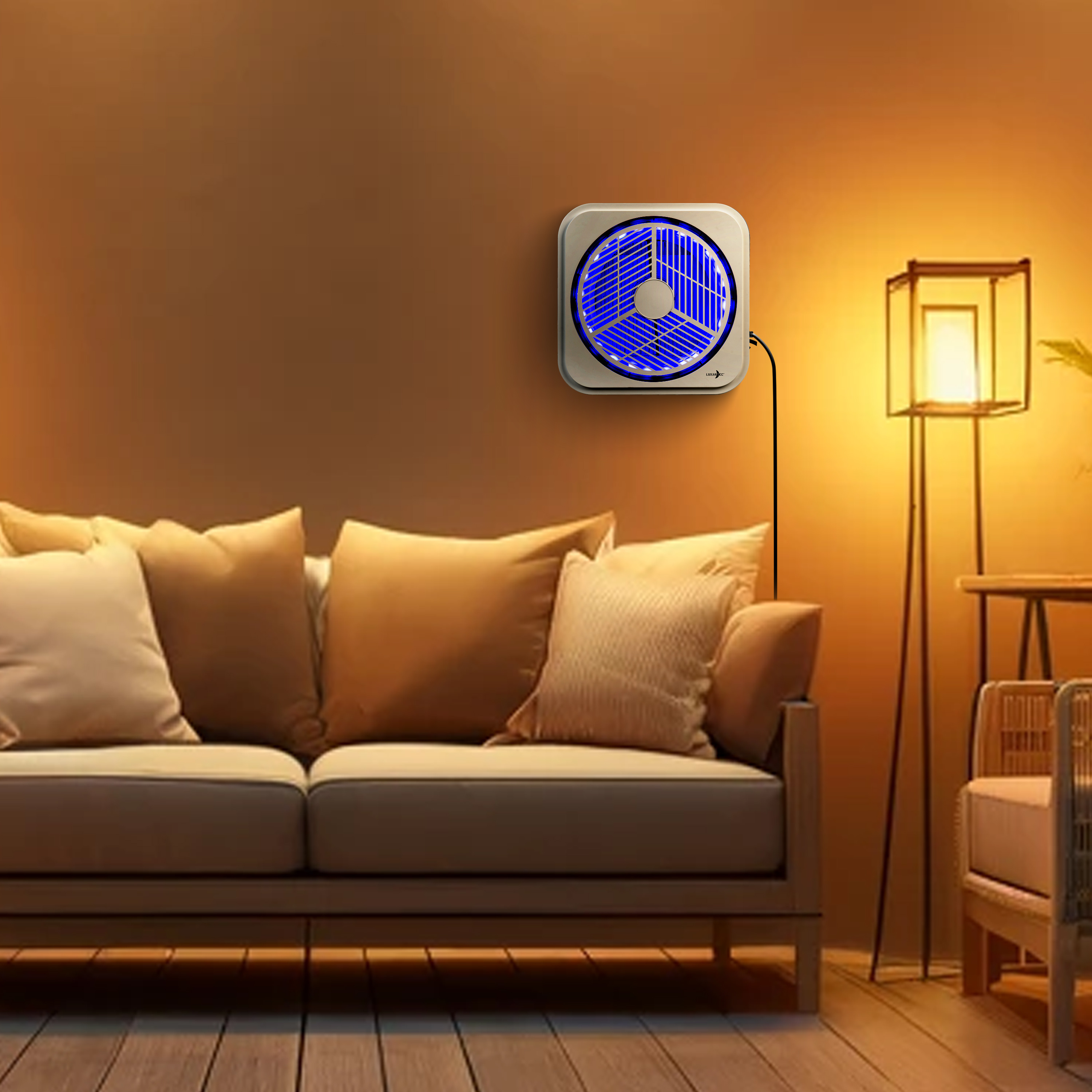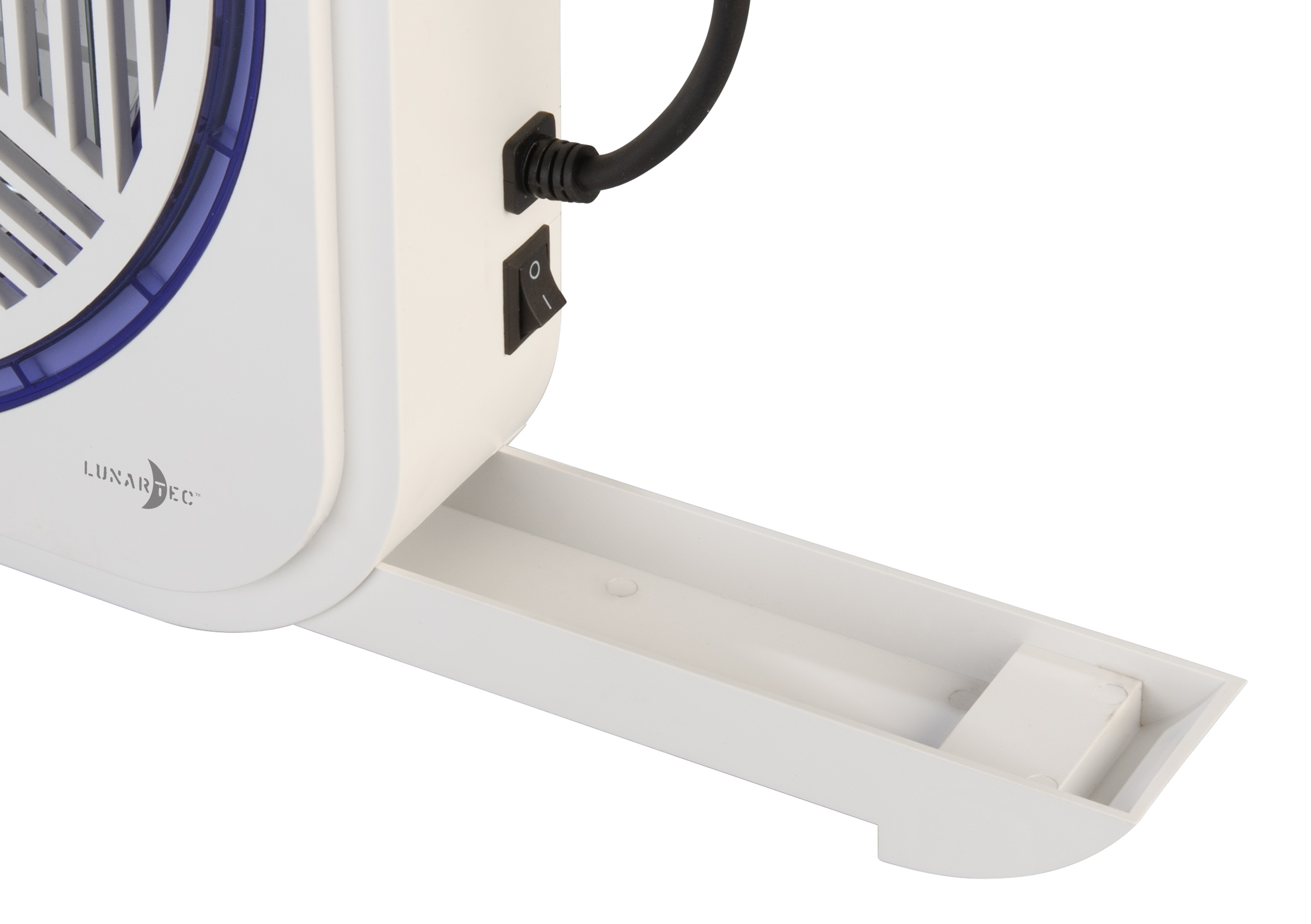 Das ultraviolette Licht lockt Insekten an, die beim Kontakt mit dem berührungssicheren Hochspannungsgitter durch einen Stromschlag getötet werden. Das Schutzgitter gewährleistet die Sicherheit von Kindern und Haustieren.