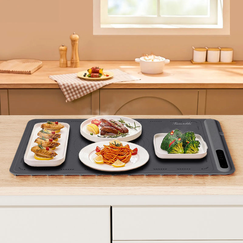 Rosenstein & Söhne 2er-Set, Rollbare, digitale Warmhalteplatte Silikon, 55 - 100 °C, 61 x 40cm