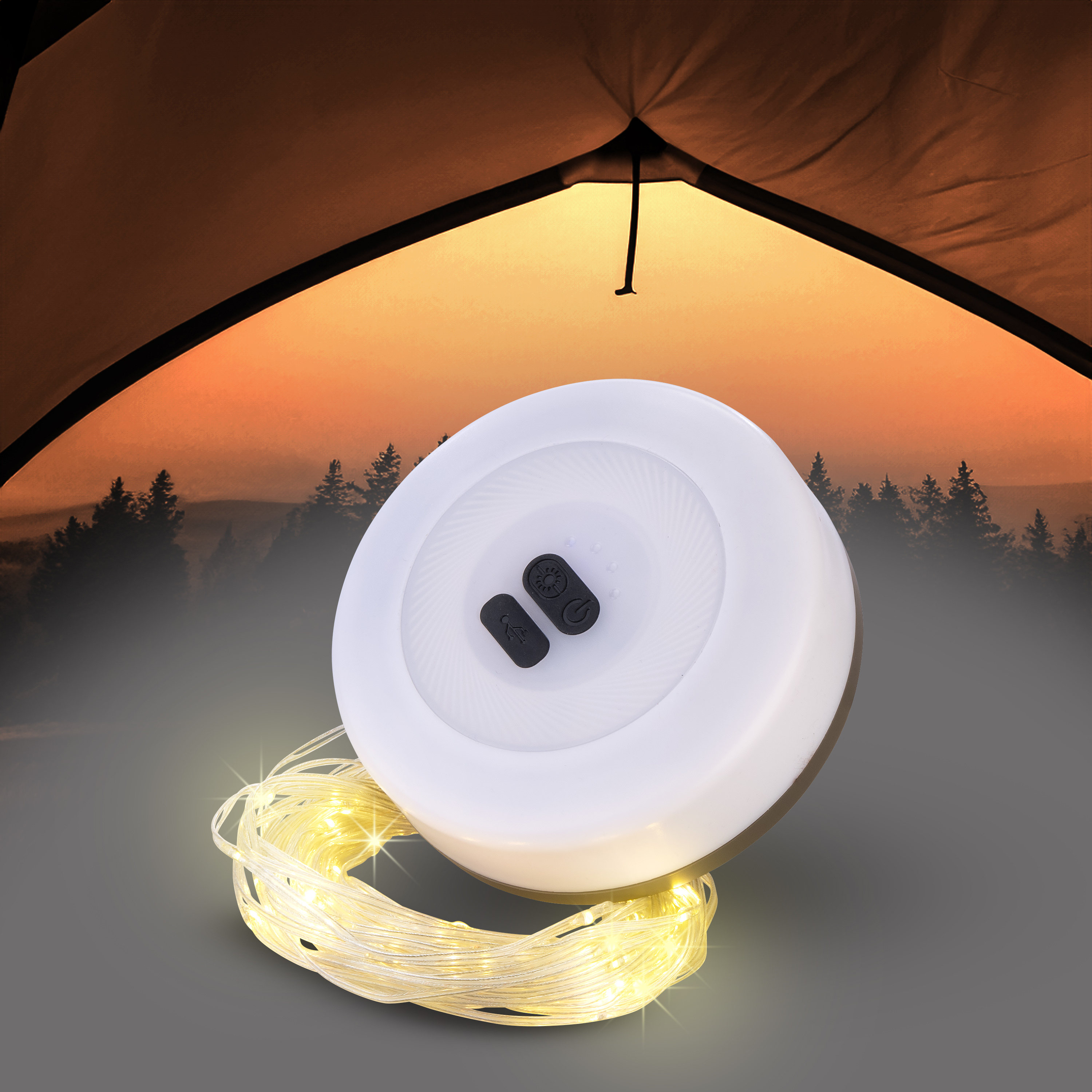 Lunartec 2er Set 2in 1 Campinglampe mit Lichterkette, 10 m LED Draht