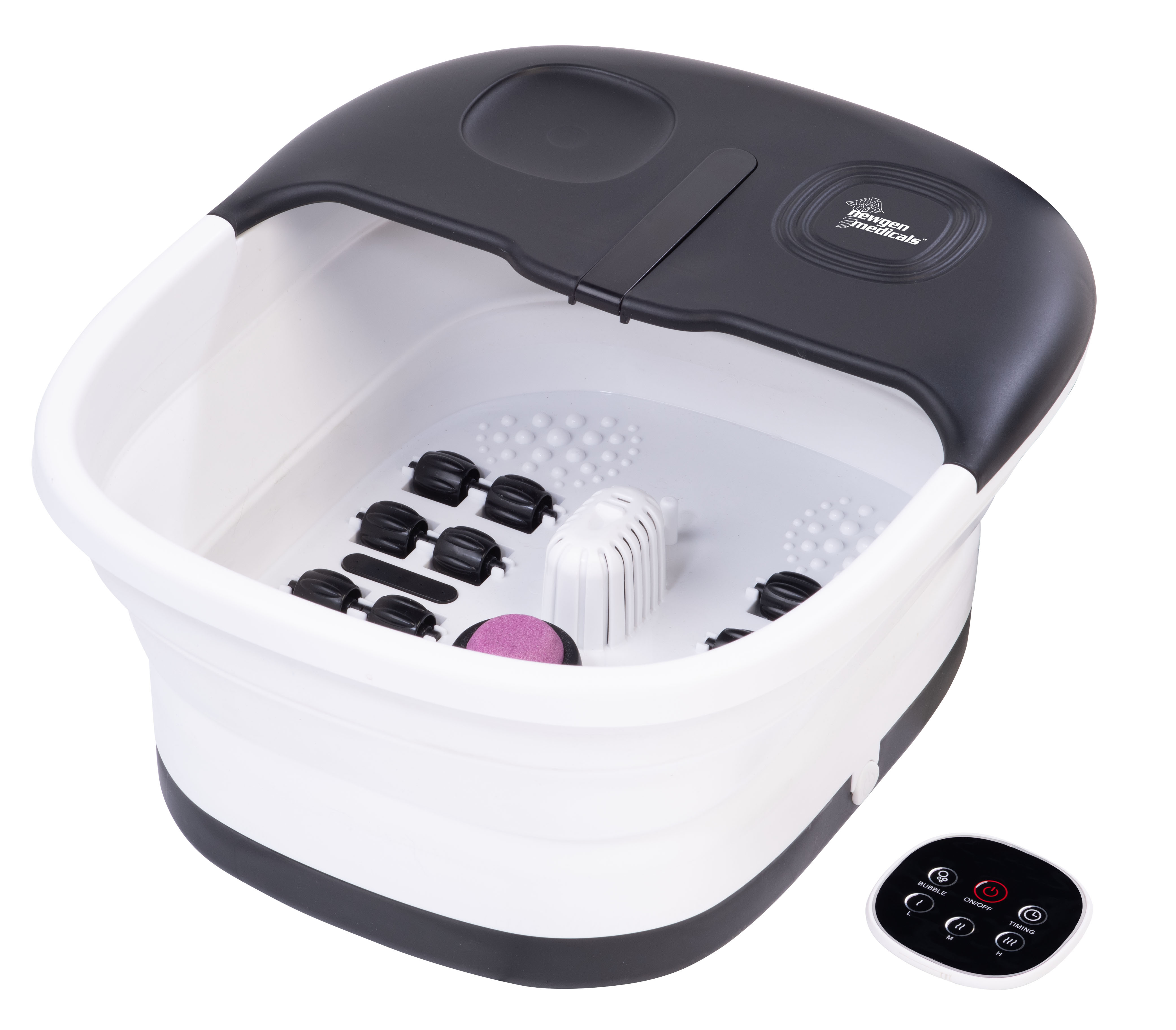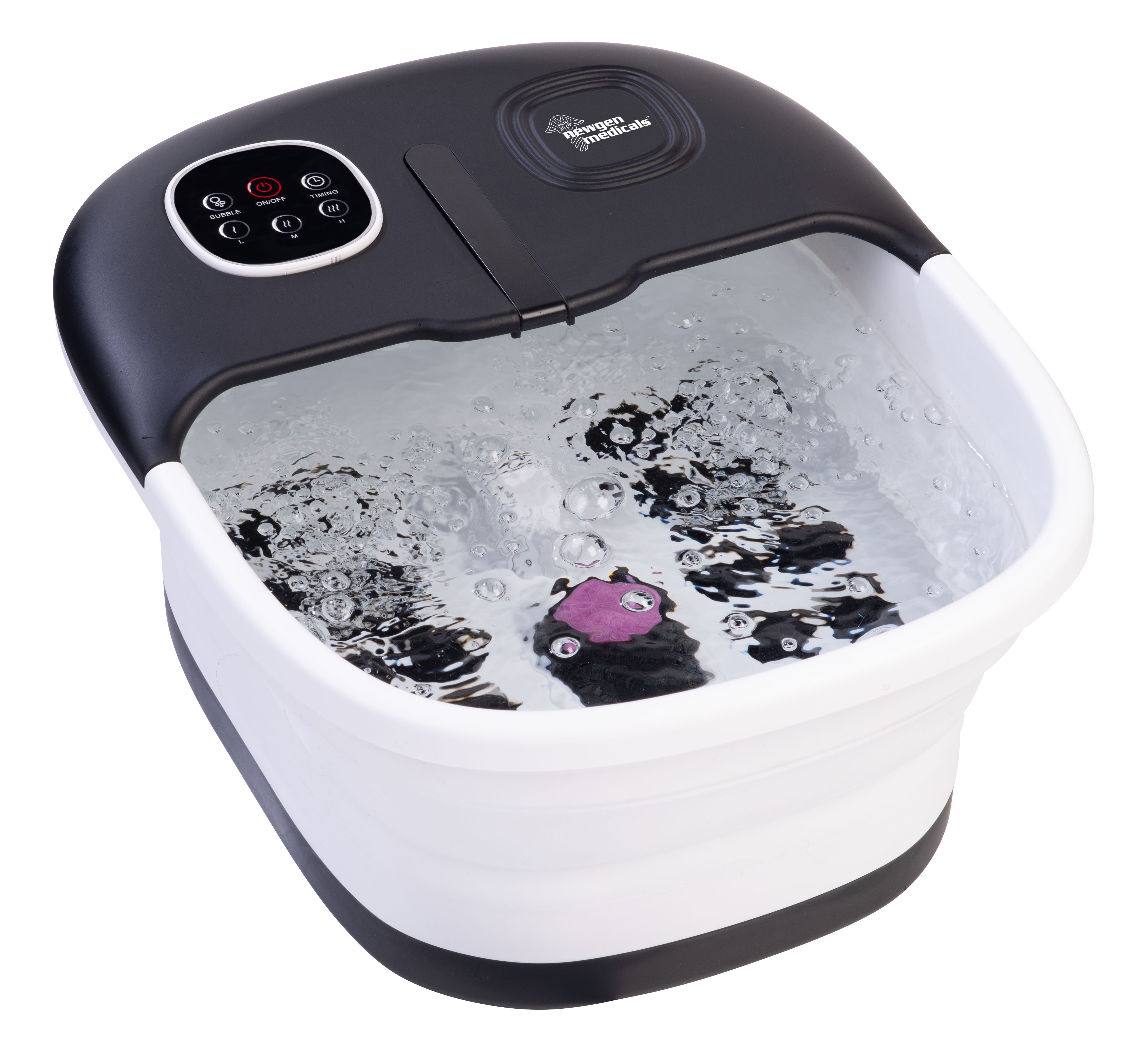 (lifepr) (Buggingen, 05.09.2024) Das faltbare Fußsprudelbad von newgen medicals bietet eine Kombination aus Luftsprudelmassage, einstellbarer Wärme und 16 Massagerollen für die Pflege beanspruchter Füße. Die Funktionen können über eine Fernbedienung gesteuert werden. Nach Gebrauch lässt sich das Gerät platzsparend zusammenklappen und verstauen. Ideal für die Entspannung nach einem anstrengenden Tag!