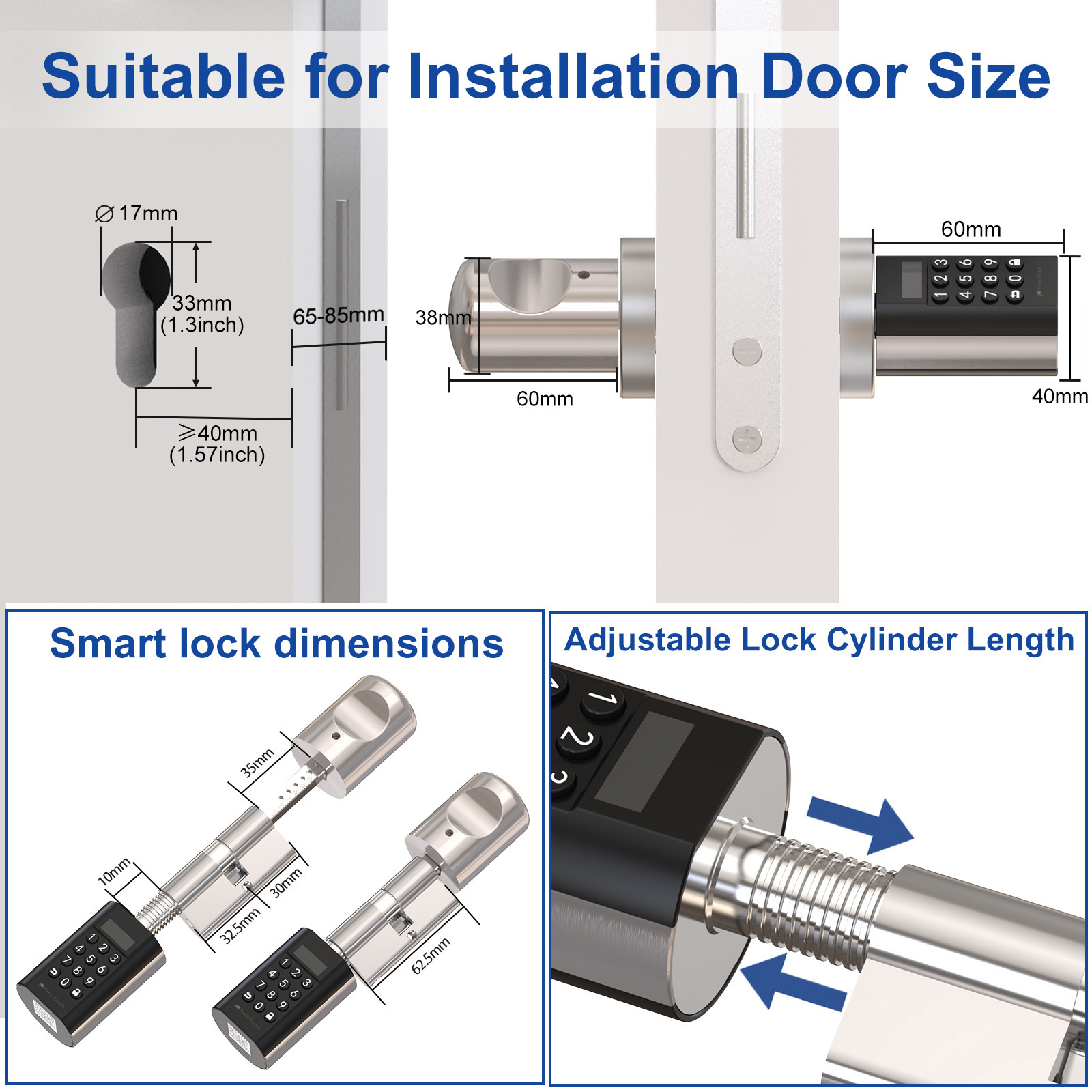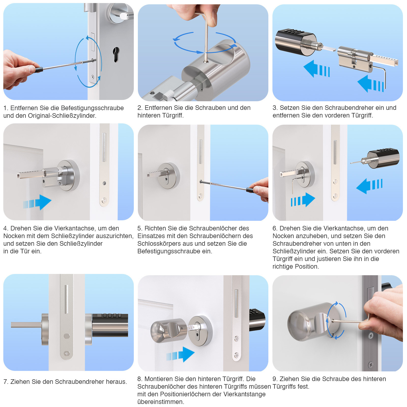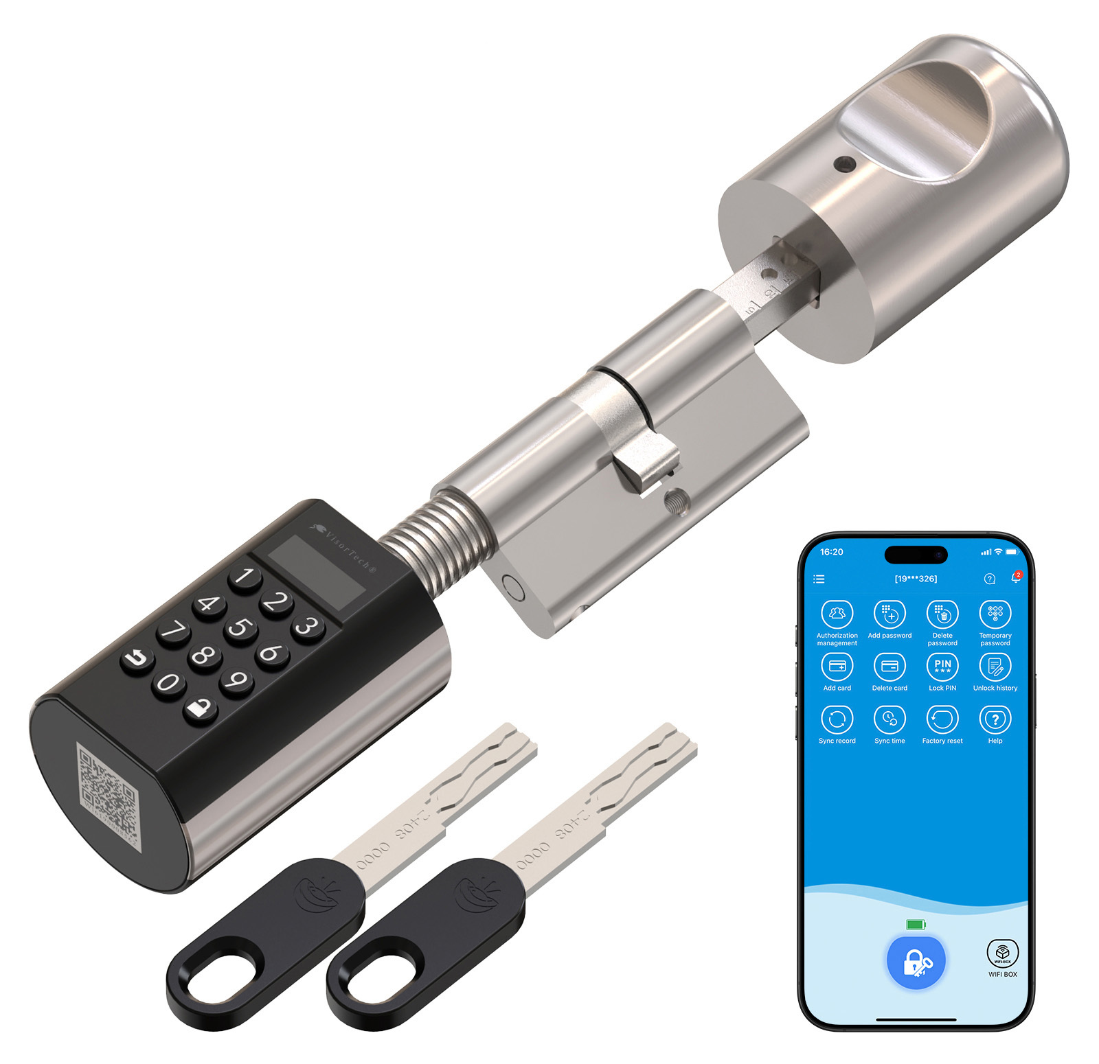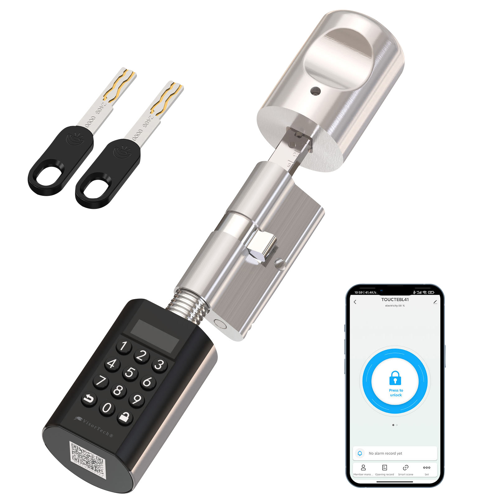 VisorTech Elektronischer Tür-Schließzylinder TSZ-530 mit Display, Code, Transponder, App