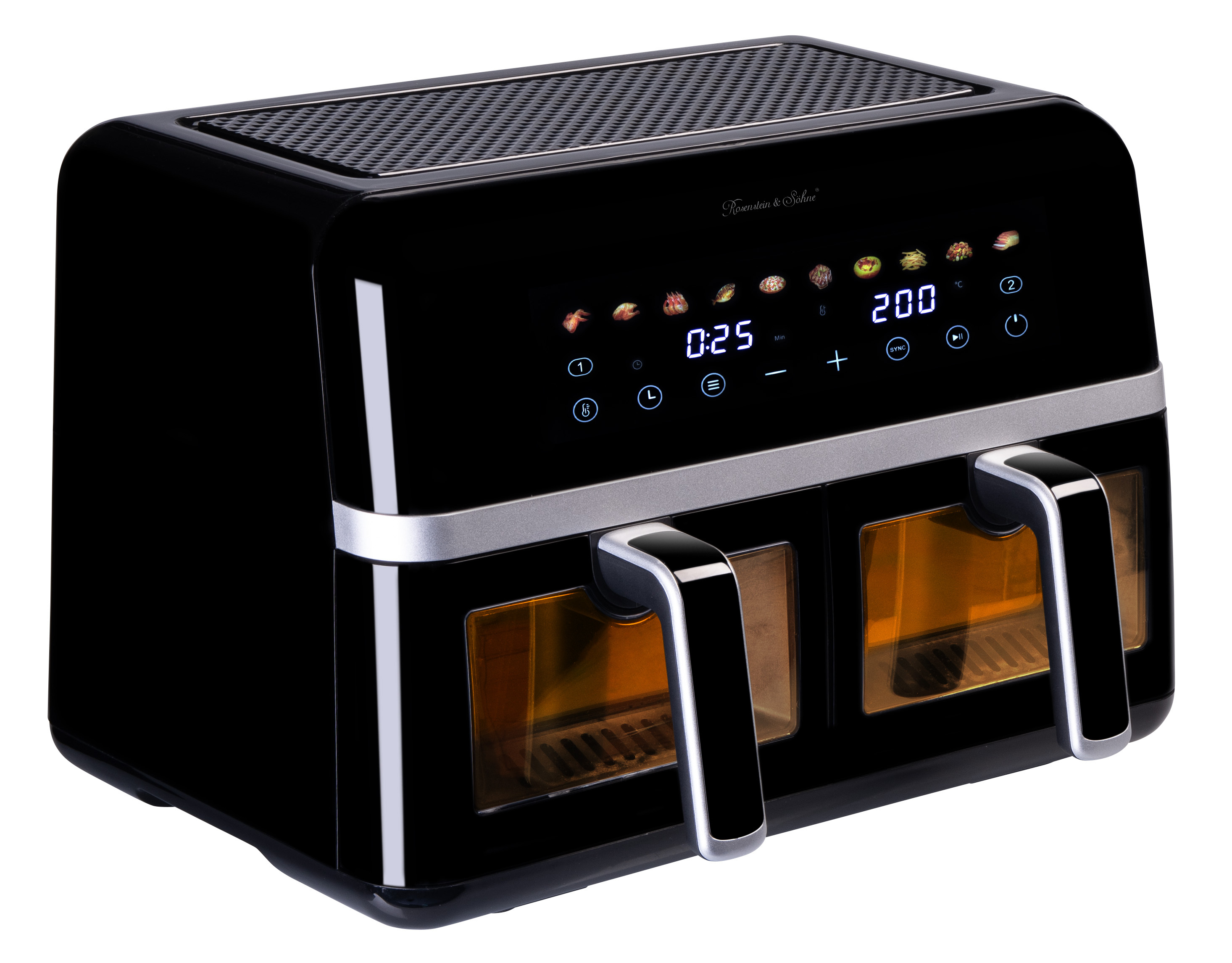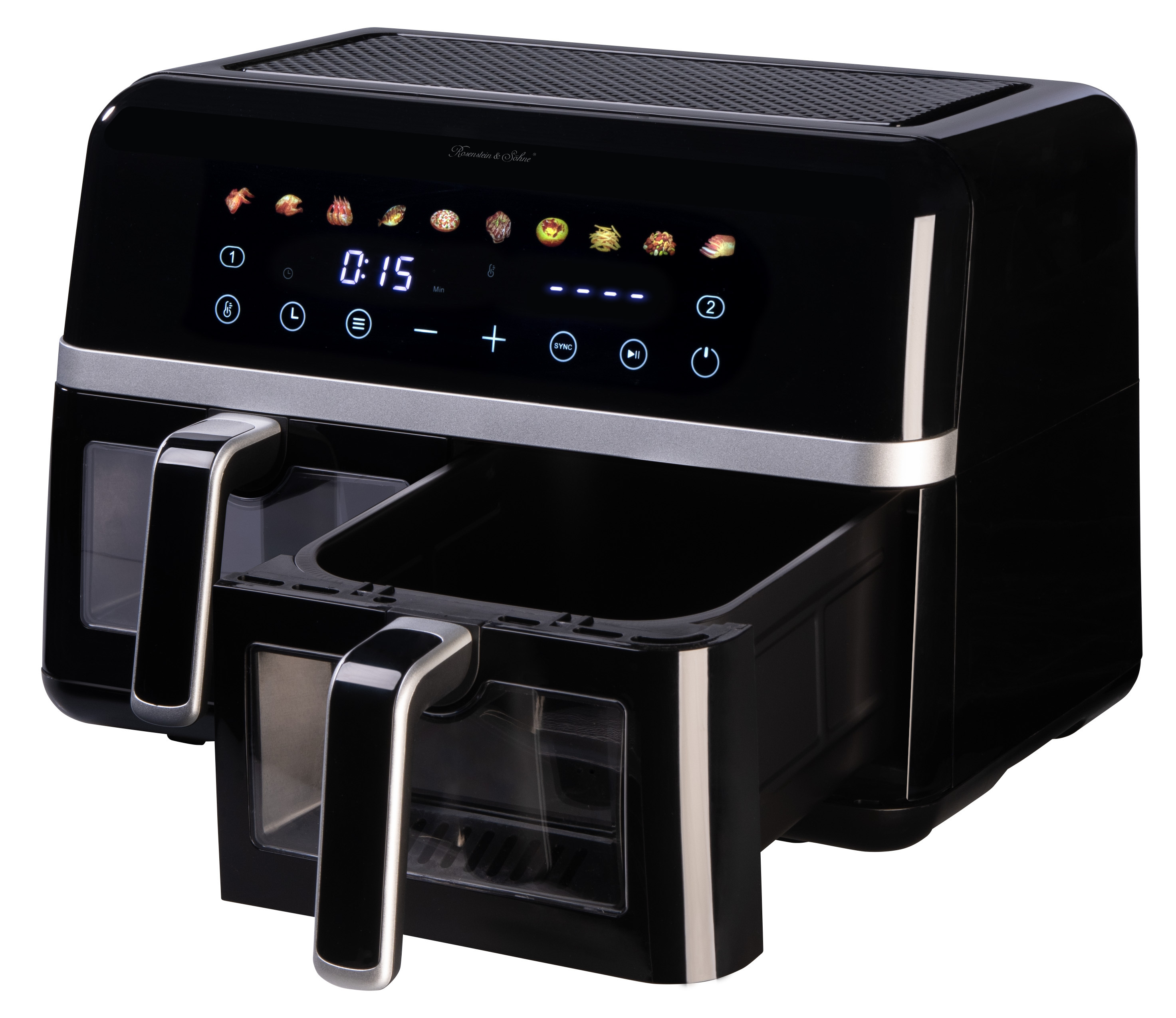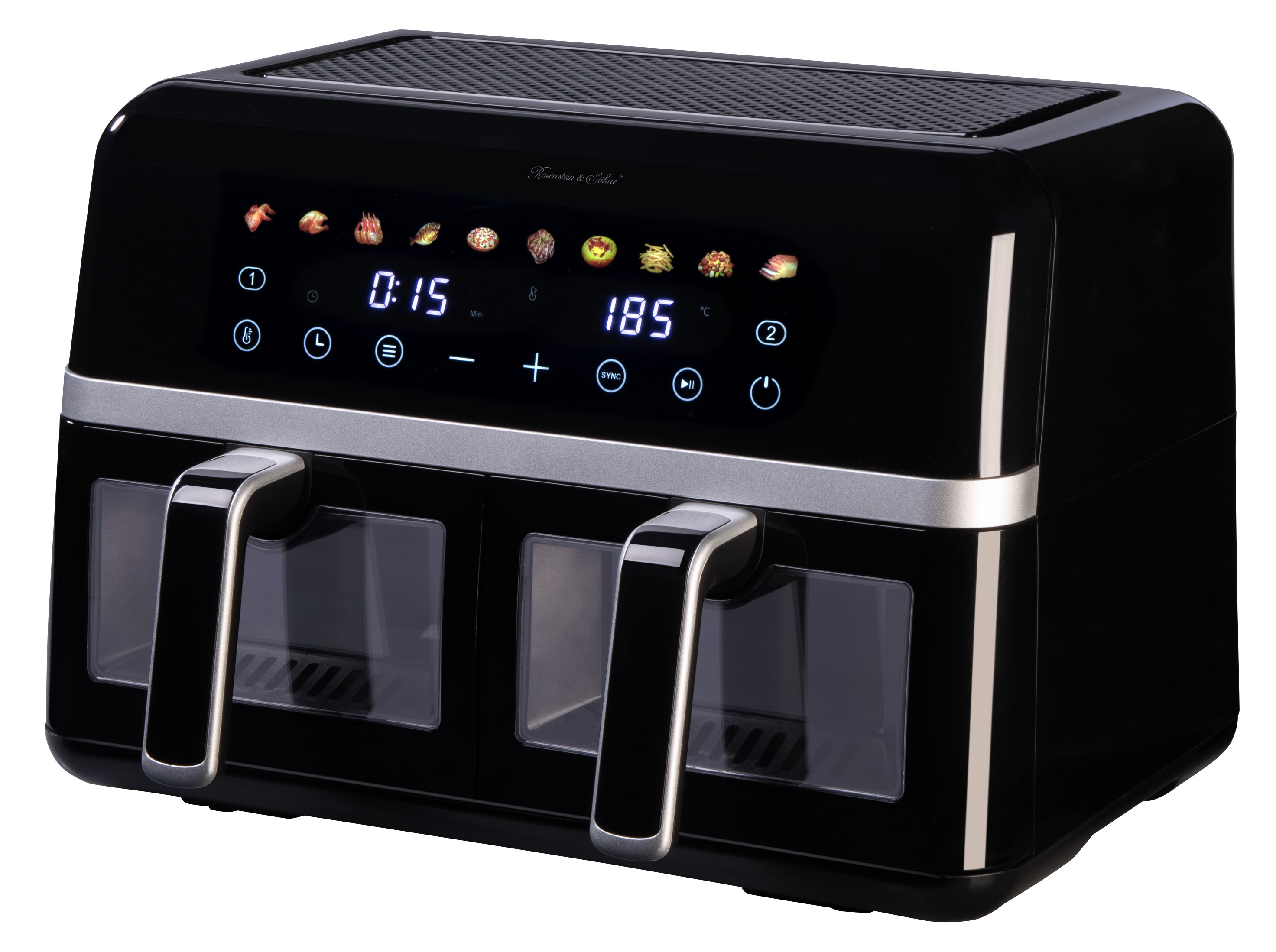 Rosenstein & Söhne Dual-Heißluftfritteuse HF-420, 2 Schubladen mit Sichtfenster, 10 Programme
