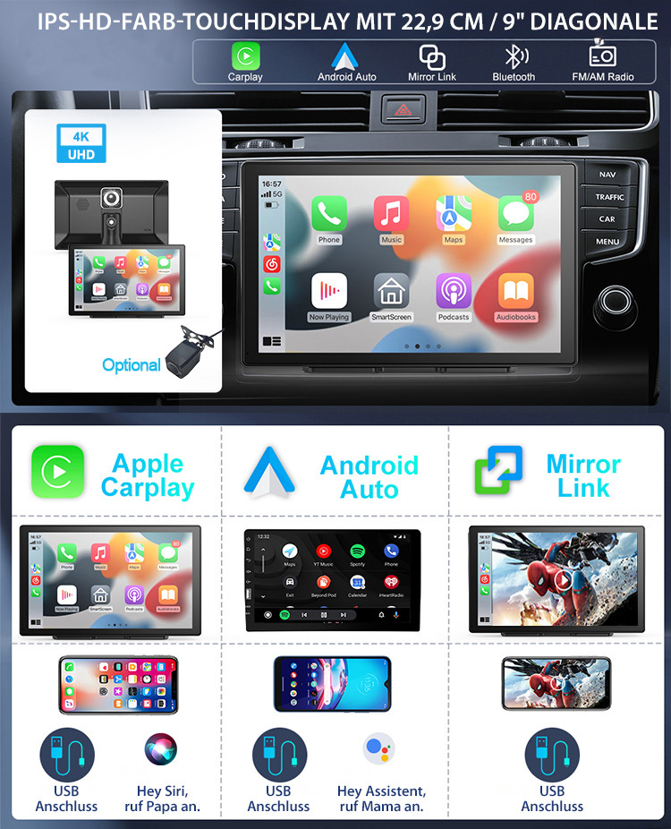auvisio Mobiler Full-HD-IPS-Monitor EZM-315 mit 18,5"/47 cm, 120 Hz, USB-C, Standfuß