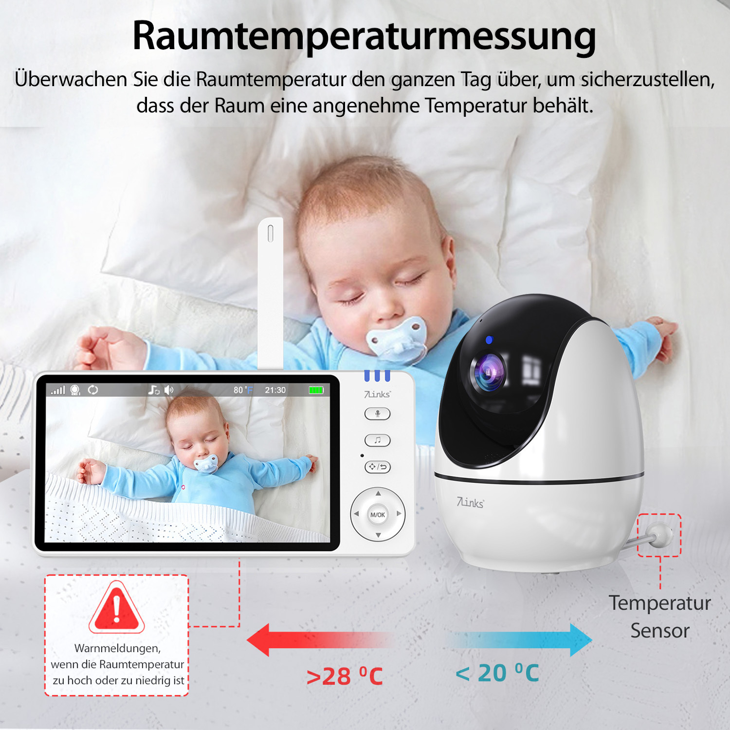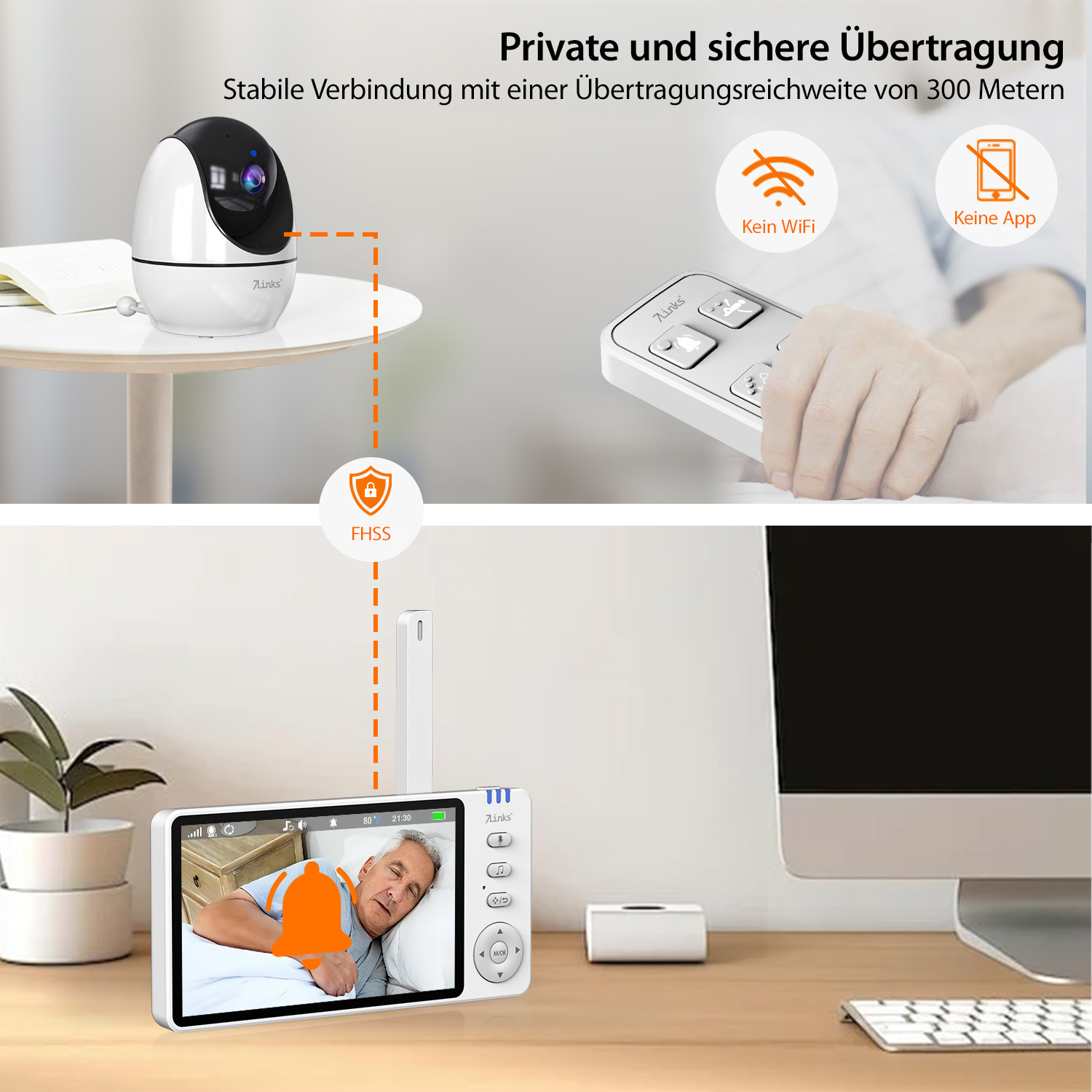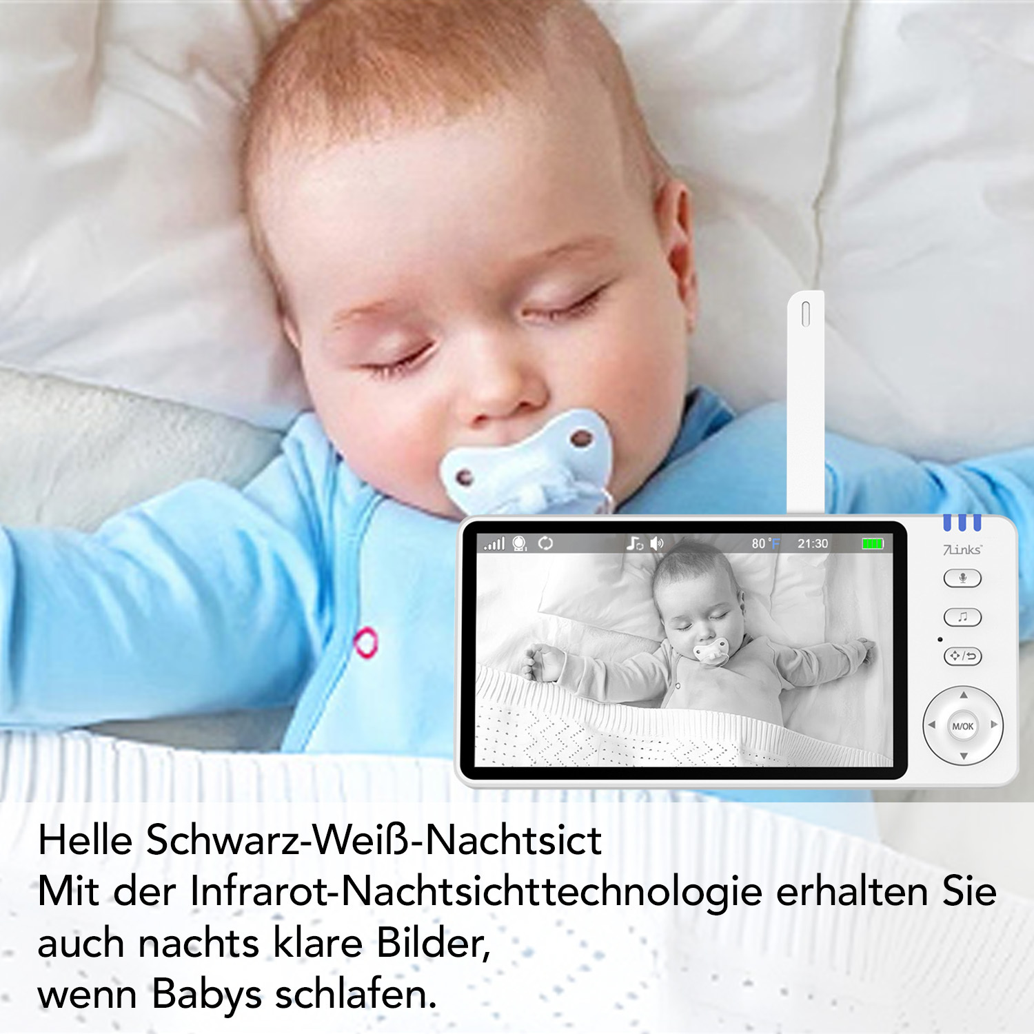 7links HD-Video-Babyphone VBP-240.hd mit 2,4"-LCD-Display, IR-Nachtsicht, 300 m