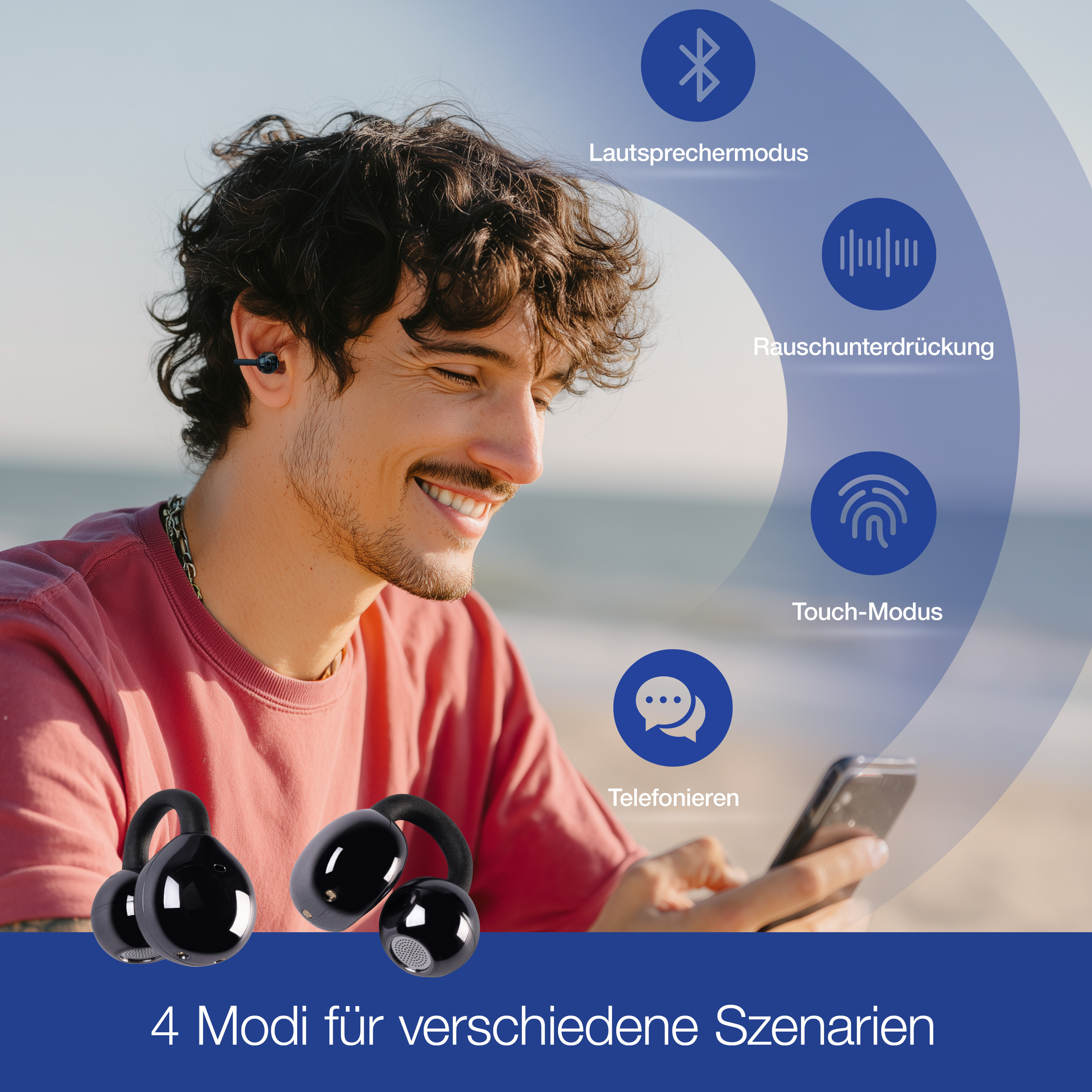 auvisio Open-Ear Clip-on-Stereo-Headset, Bluetooth 6.0, Freisprechen, Ladecase