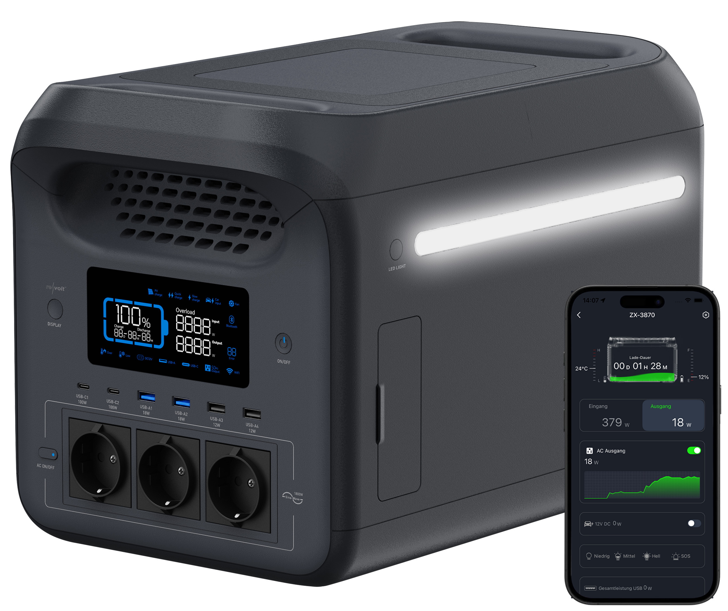 revolt Tragbare Powerstation & Solargenerator HSG-500, 614,4 Wh, USV, App, 1.000 Watt