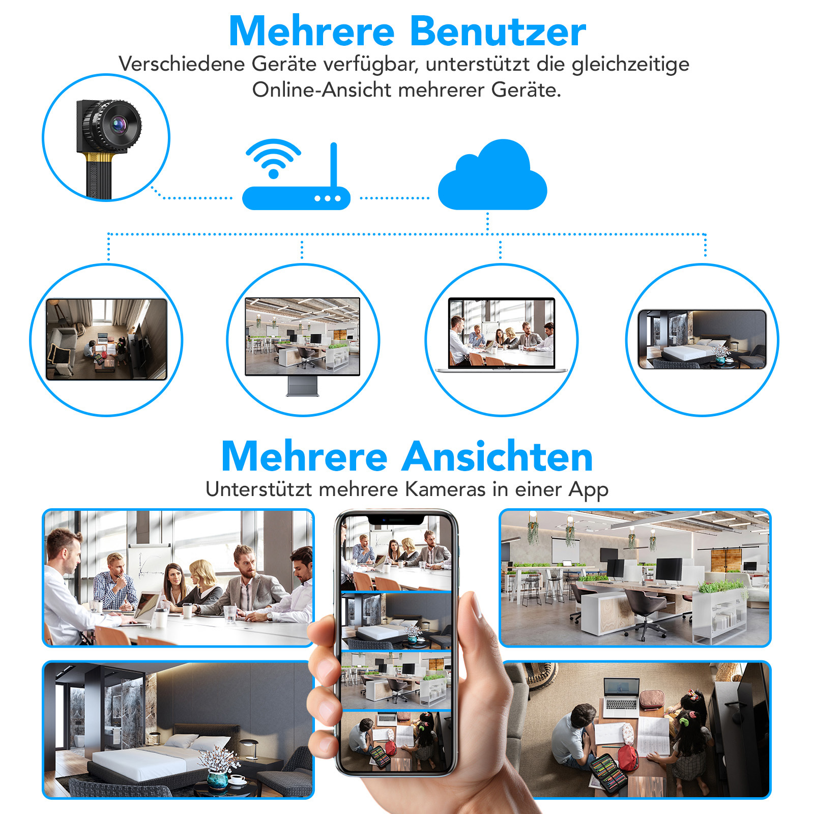 7links 2K-Mini-IP-Kamera mit Dualband-WLAN IPC-910, Nachtsicht, 4 Std. Akku, App
