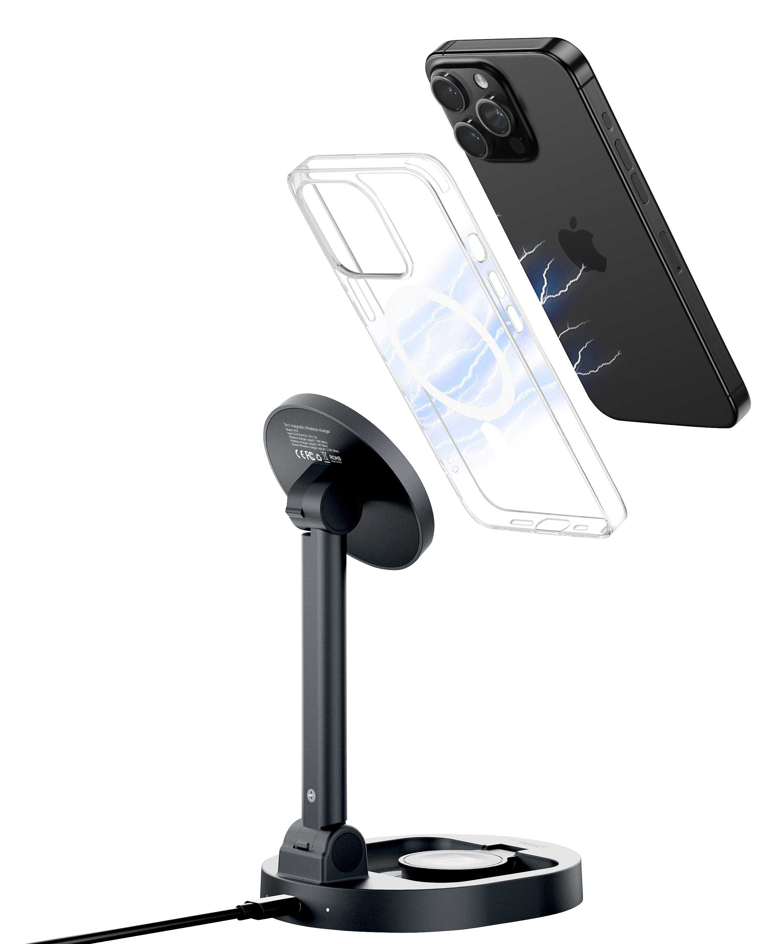 Callstel 4er-Set 3in1-MagSafe-Ladestationen für iPhone, Apple Watch und AirPods