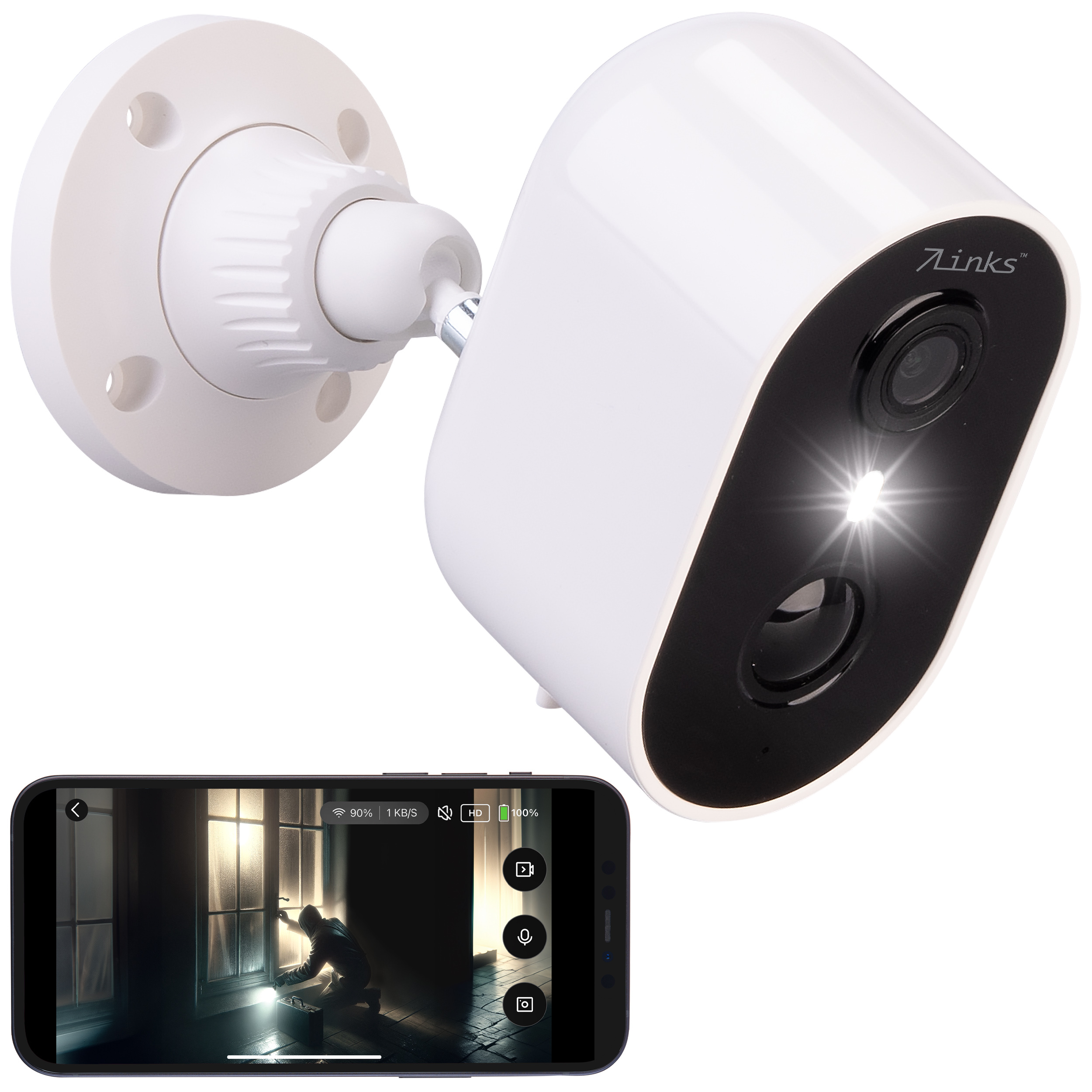 (lifepr) (Buggingen, 12.11.2024) Die batteriebetriebene 7links Outdoor-IP-Überwachungskamera IPC-775bietet gestochen scharfe 2K-Bildqualität und einen 3 MP-Sensor für eine detailreiche Überwachung bei Tag und Nacht. Dank kabelloser WLAN-Verbindung und integriertem Akku ist sie flexibel und ohne aufwändige Installation einsetzbar. Der intelligente PIR-Bewegungssensor minimiert Fehlalarme und meldet Aktivitäten zuverlässig per App-Benachrichtigung. Die IP65-Zertifizierung schützt vor Witterungseinflüssen, während die farbige Nachtsicht und eine optionale Sirenenfunktion zusätzliche Sicherheit bieten. Ideal für die Überwachung von Haus und Garten - auch kompatibel mit Amazon Echo Show zur smarten Steuerung.