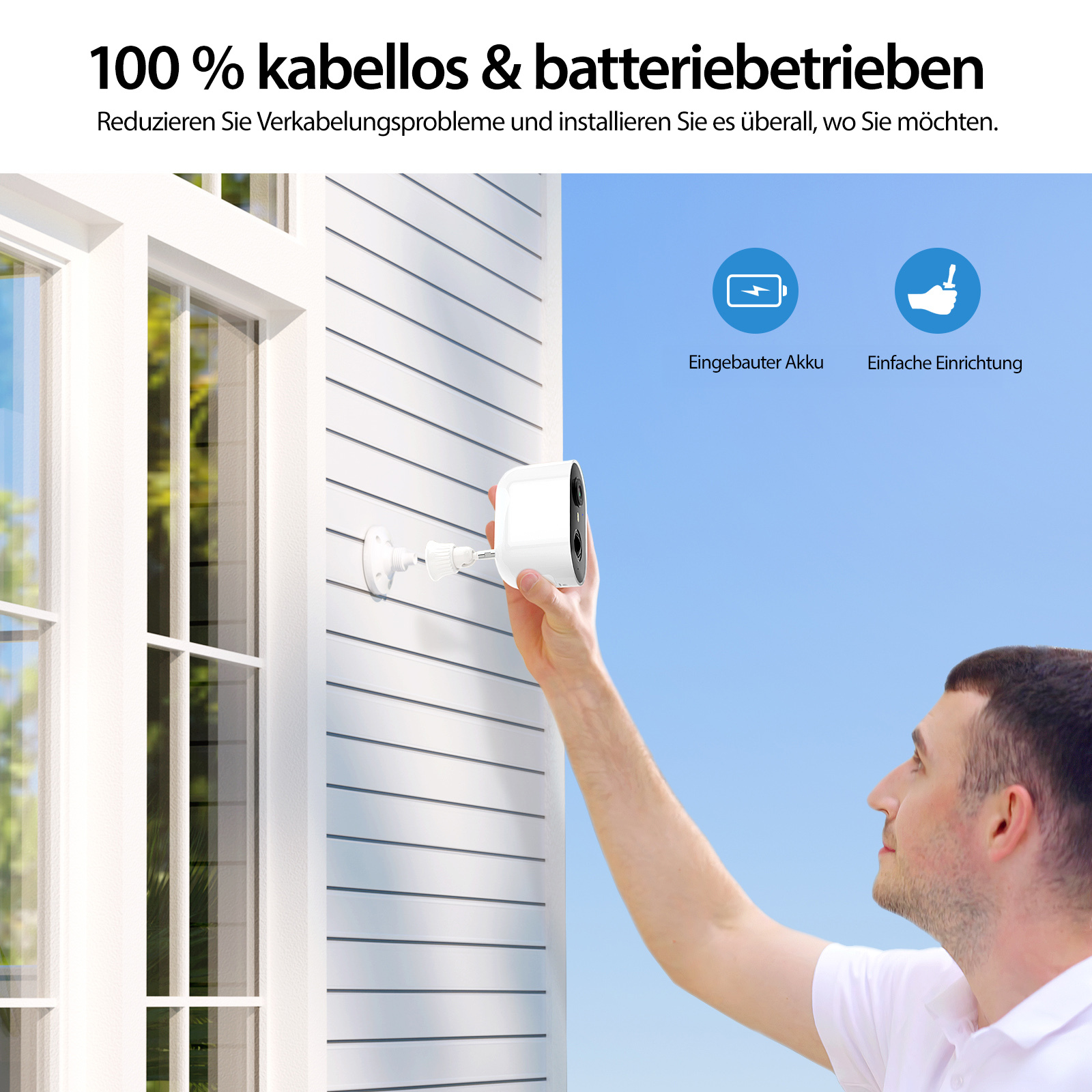 Die Kamera ist mit einer intelligenten Personenerkennung ausgestattet und reagiert nur auf menschliche Bewegungen im Überwachungsbereich. Unwichtige Bewegungen wie Tiere, Autos oder Äste im Wind werden ignoriert, um Fehlalarme zu vermeiden und die Batterielebensdauer zu optimieren.