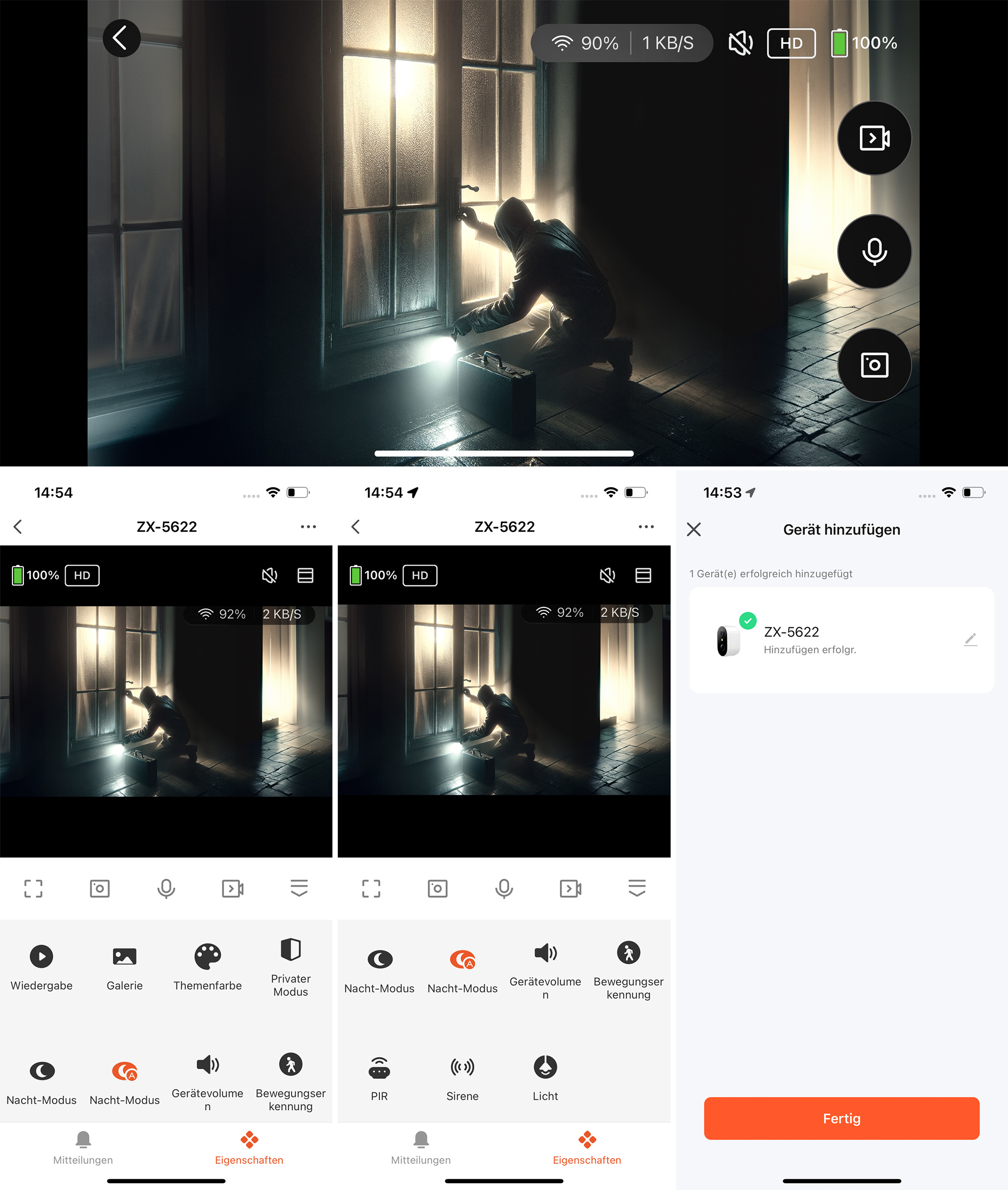 Die App bietet jederzeit und überall Zugriff auf die Kamera. Jede registrierte Bewegung wird direkt gemeldet und das Livebild kann jederzeit auf mobilen Geräten mit Android- oder iOS-Betriebssystem abgerufen werden.