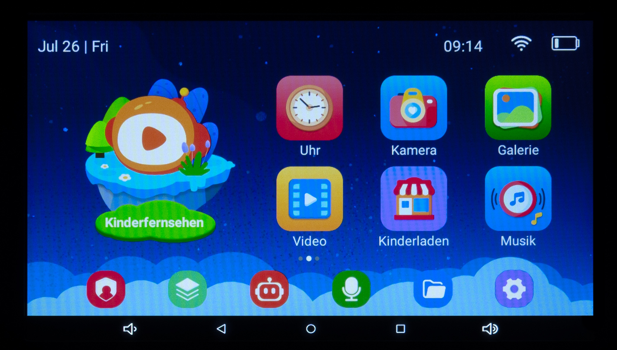 Das 7 Zoll große Farb-Touchdisplay bietet eine intuitive Bedienoberfläche, die speziell auf Kinder zugeschnitten ist. Lernspiele aus den Bereichen Naturwissenschaften, Mathematik, erste Grundlagen oder Gehirntraining können einfach aufgerufen werden. Darüber hinaus ermöglicht ein Kunstprogramm die kreative Entfaltung. Auch Musik- und Videofunktionen stehen zur Verfügung, so dass der Roboter vielseitig eingesetzt werden kann. Die Einstellungen können über das Display vorgenommen und bei Bedarf durch Schutzfunktionen vor unbefugtem Zugriff gesichert werden.