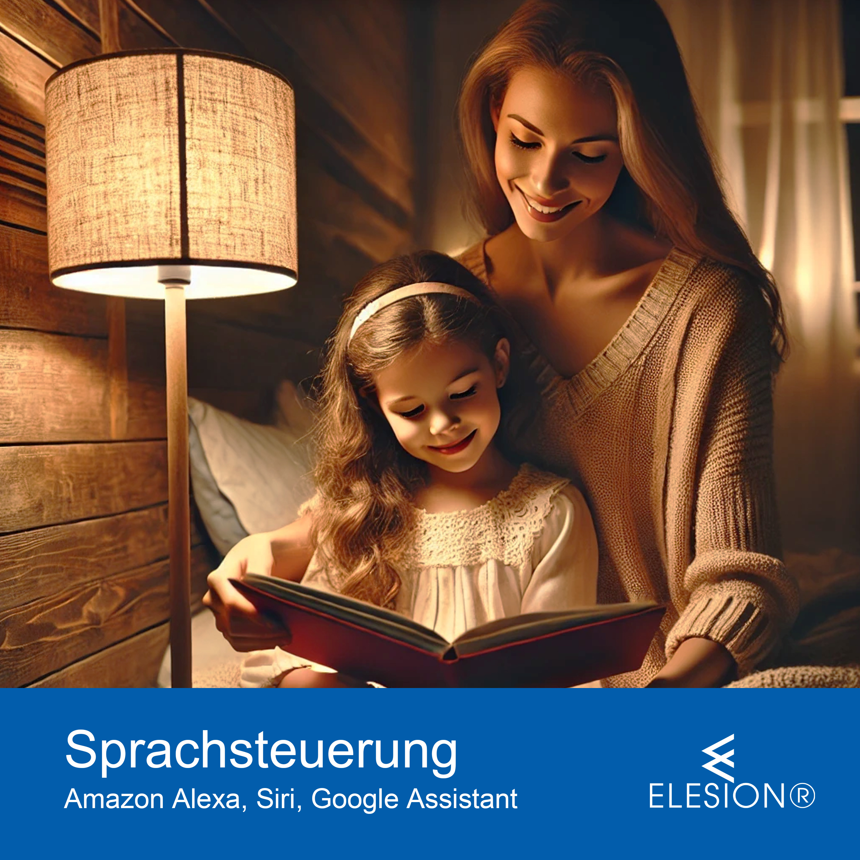 Die Lampe ist mit Sprachassistenten wie Siri, Alexa und Google Assistant kompatibel. Mit einfachen Sprachbefehlen lassen sich Lichtfarbe, Helligkeit sowie Ein- und Ausschalten steuern.