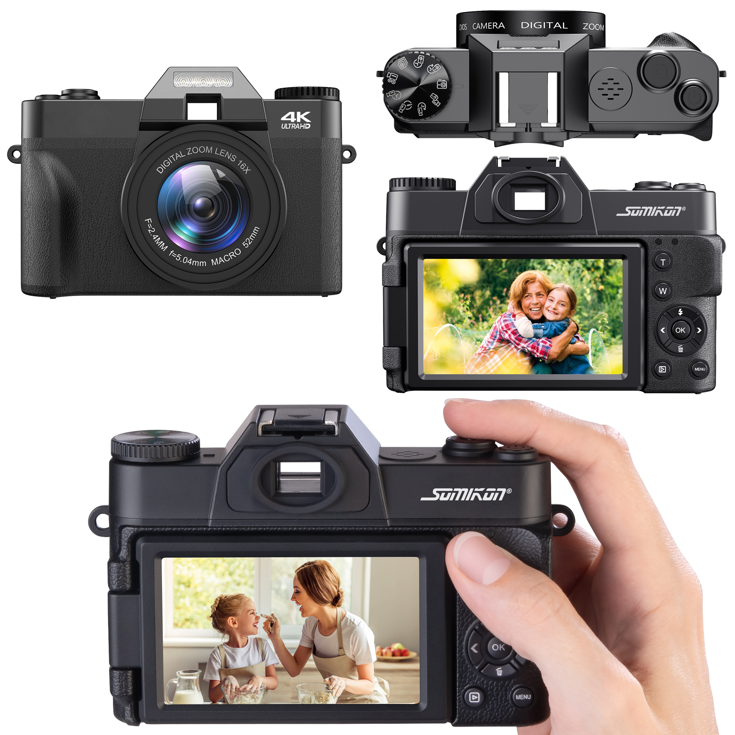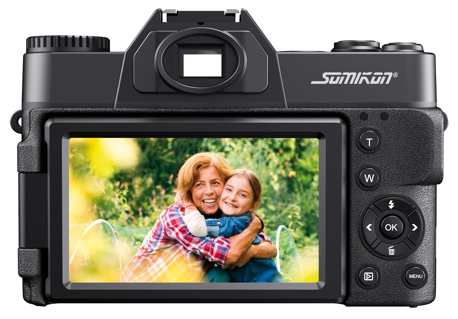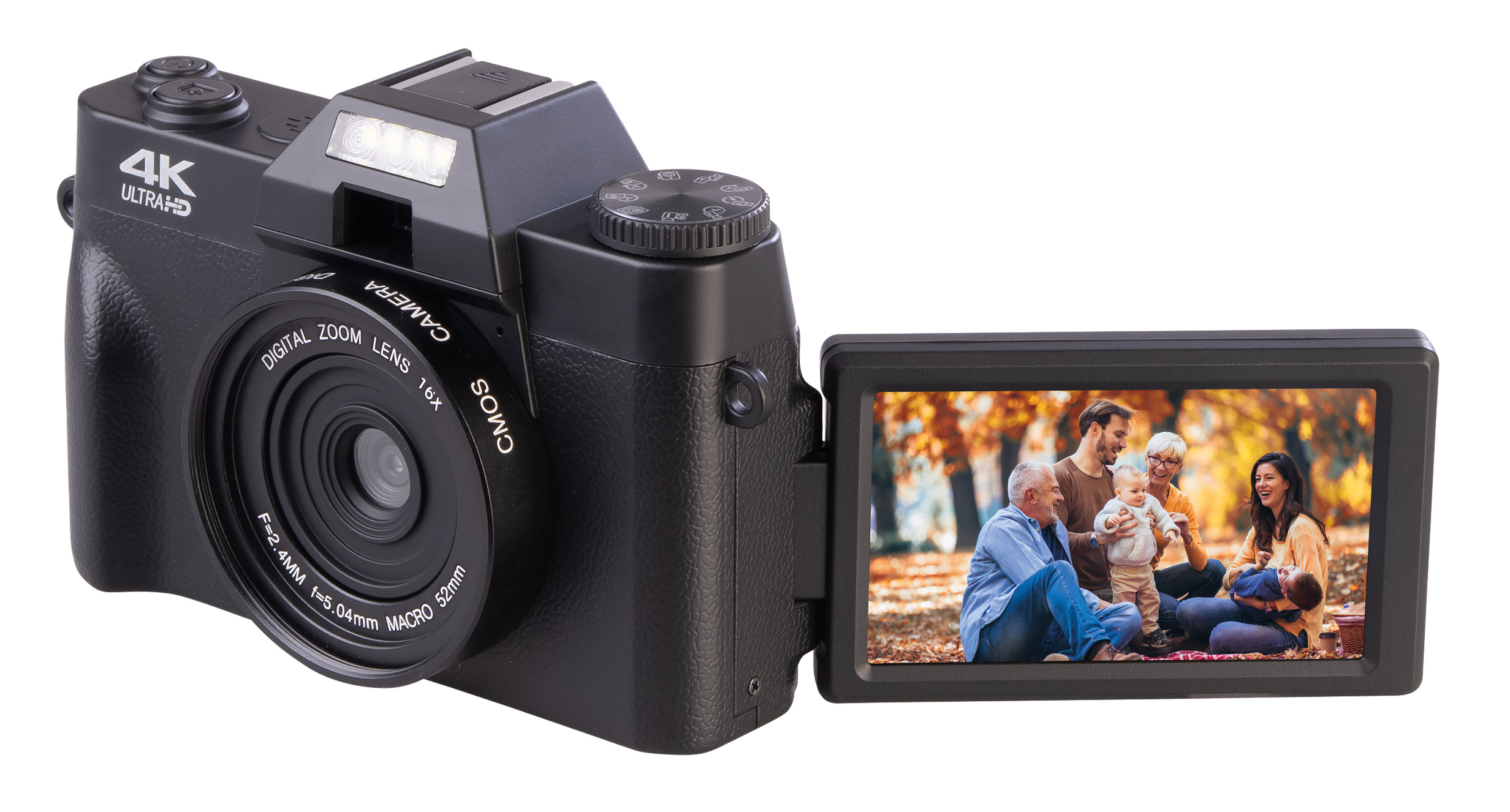 (lifepr) (Buggingen, 25.11.2024) Die Somikon 4K-UHD-Digitalkamera mit 3"-Flip-HD-Display, Makroobjektiv und WLAN bietet mit einem nativen 13-Megapixel-CMOS-Sensor eine beeindruckende Bildqualität. Der 16-fache Digitalzoom und die Makrolinse ermöglichen detailreiche Nahaufnahmen. Drei Fokus-Modi - Autofokus, manueller Fokus und Fixfokus - bieten Flexibilität für unterschiedliche Aufnahmesituationen. Die Anti-Shake-Funktion sorgt für scharfe Bilder auch bei Bewegungen, die integrierte LED für optimale Ausleuchtung bei schlechten Lichtverhältnissen. Die WLAN-Konnektivität ermöglicht die einfache Übertragung der Aufnahmen. Das ausklappbare 3"-Display erleichtert Selfies und Aufnahmen aus verschiedenen Winkeln. Ideal für Vlogs und Makro-Aufnahmen.