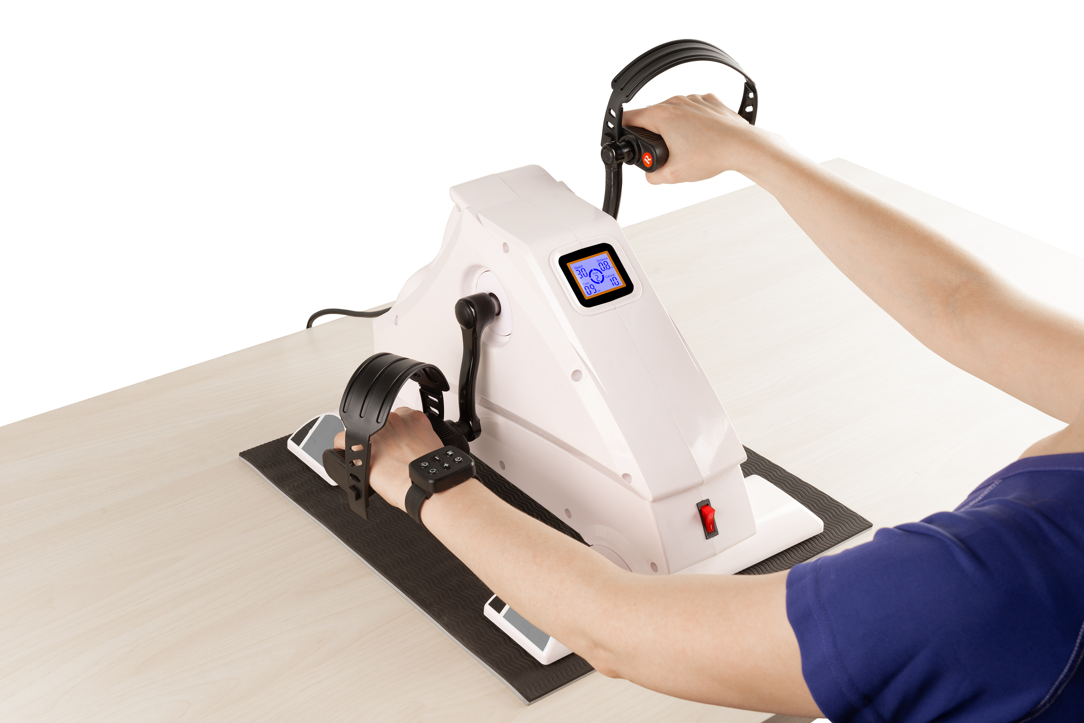 Der motorisierte Arm- und Beintrainer von PEARL sports ermöglicht Bewegungsübungen am Arbeitsplatz oder zu Hause. Das Trainingsgerät kann unter dem Schreibtisch oder auf einem Tisch platziert werden. Der einstellbare Vor- und Rücklauf aktiviert unterschiedliche Muskelgruppen.