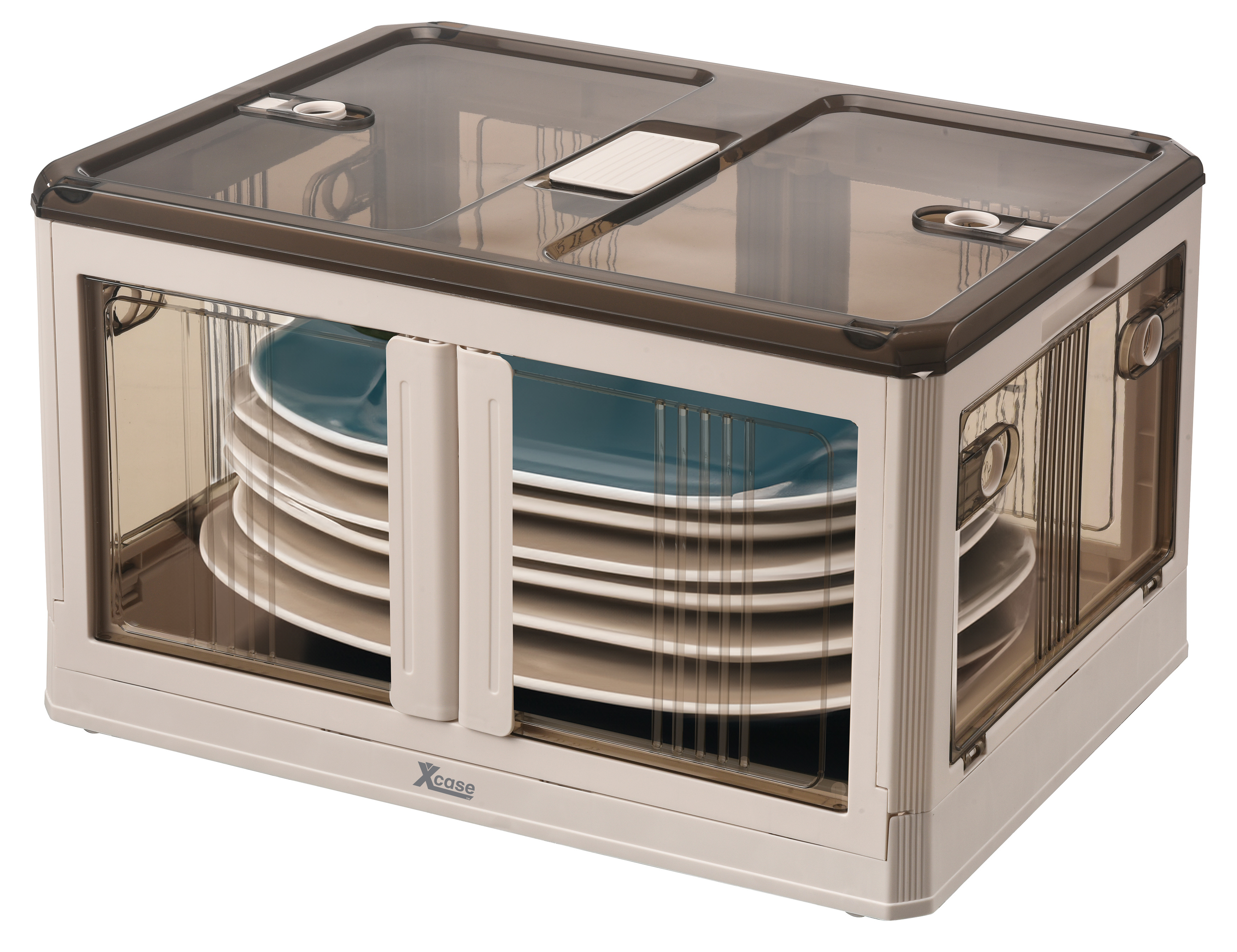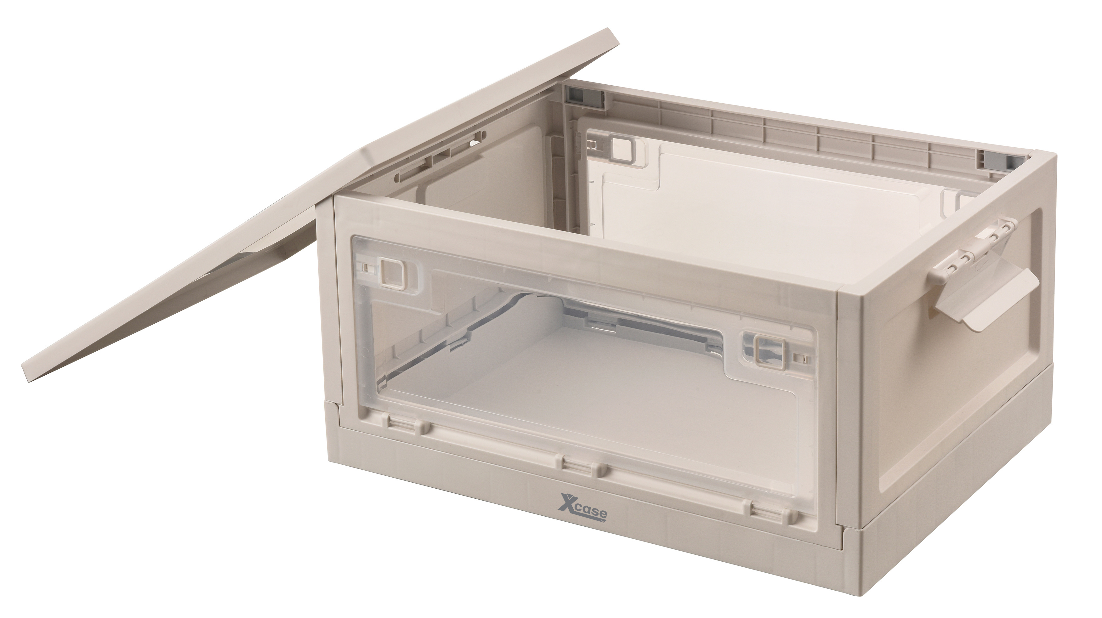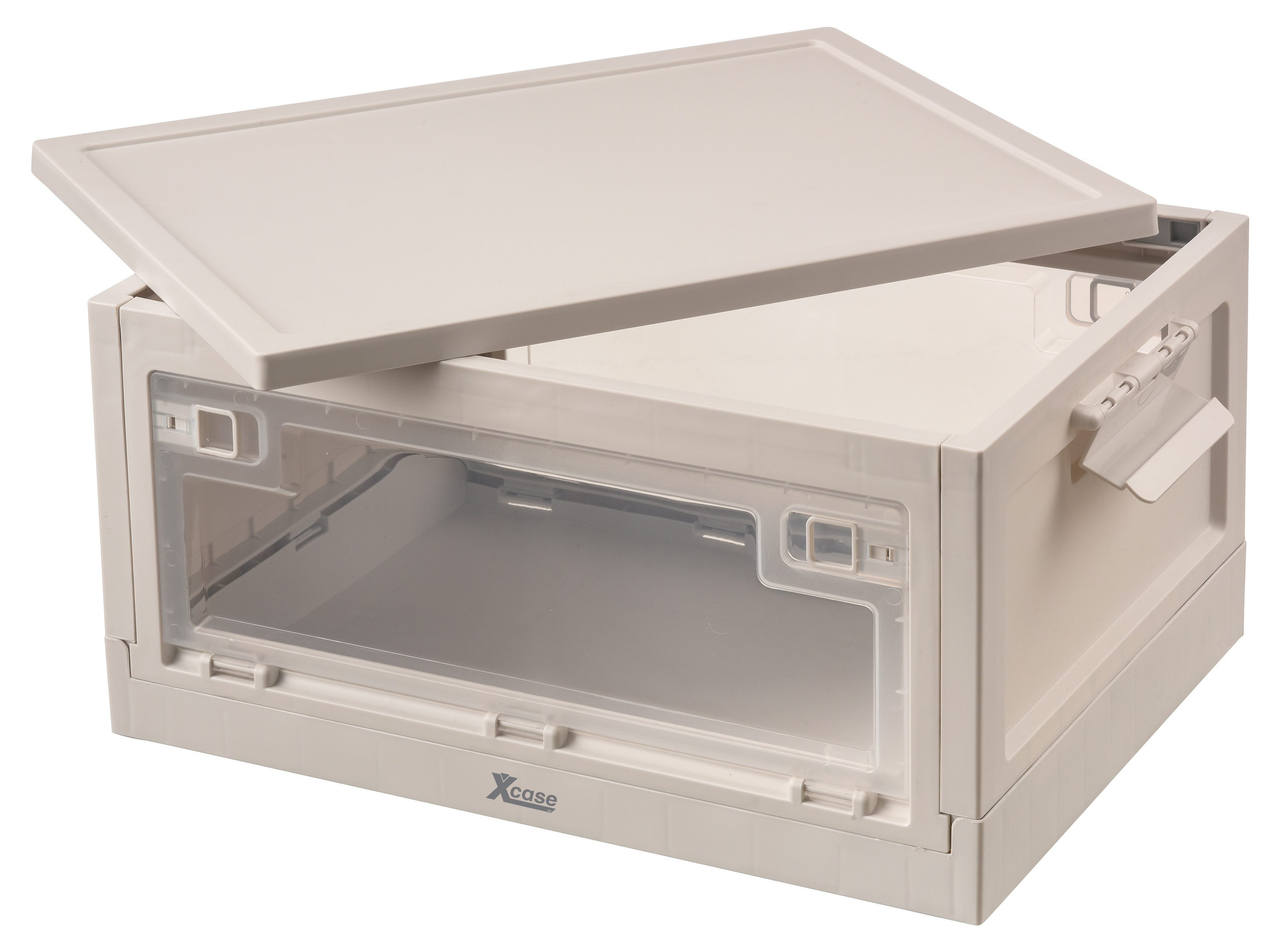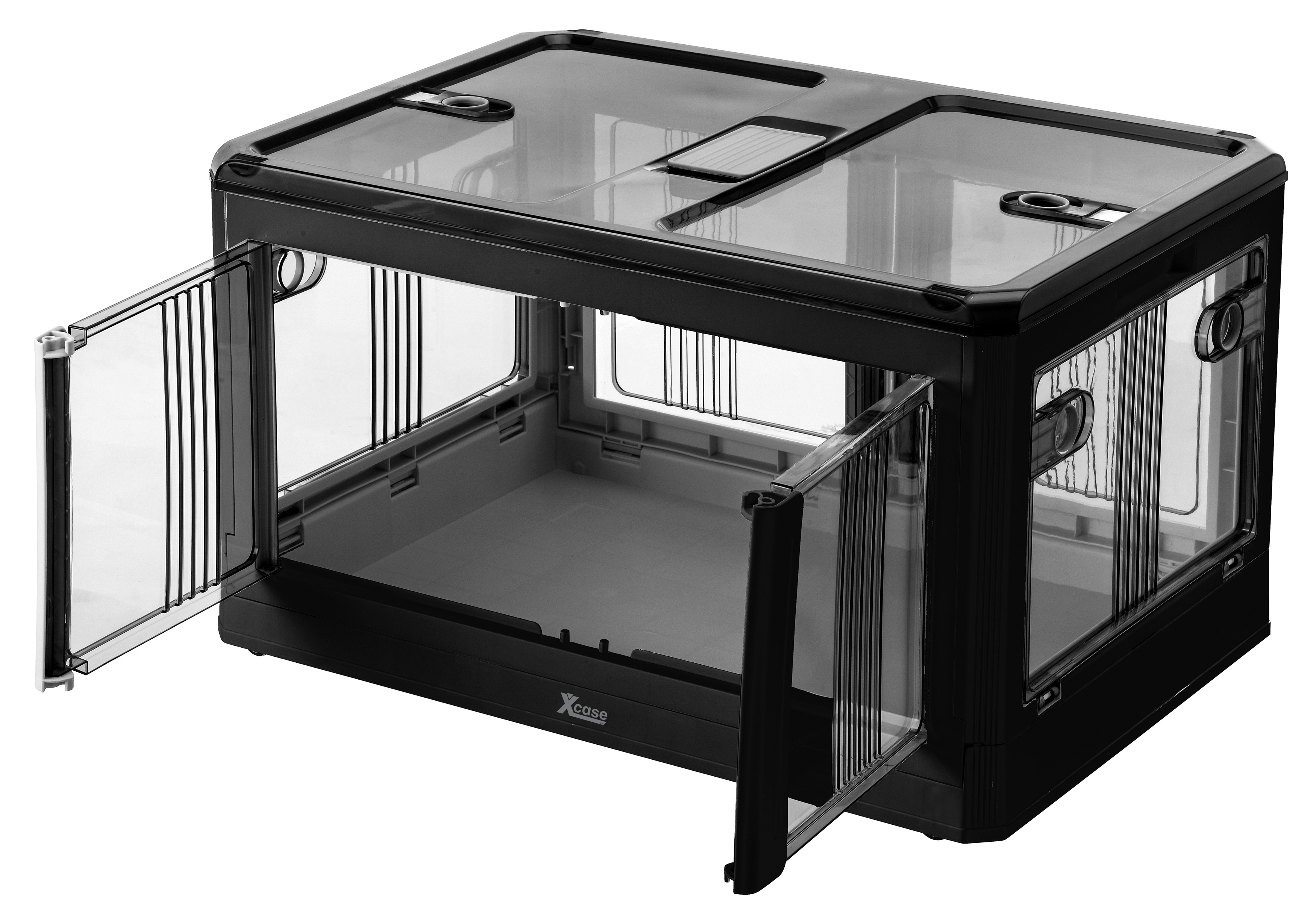 Das Aufbewahrungssystem von Xcase besteht aus stapelbaren Klappboxen mit Deckel zur systematischen Organisation von Werkzeug, Kabeln oder Kleidung. Die Boxen verfügen über seitliche Zugriffsklappen, die den Inhalt auch im gestapelten Zustand zugänglich machen.