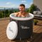 Schnell einsatzbereit: Mit wenigen Handgriffen lässt sich das Eisbad aufstellen. Einfach die Stützstangen einschieben, den oberen Ring mit der enthaltenen Luftpumpe aufpumpen und den Ablaufhahn anschrauben. Schon kann man den neuen Badezuber mit frischem Wasser befallen.