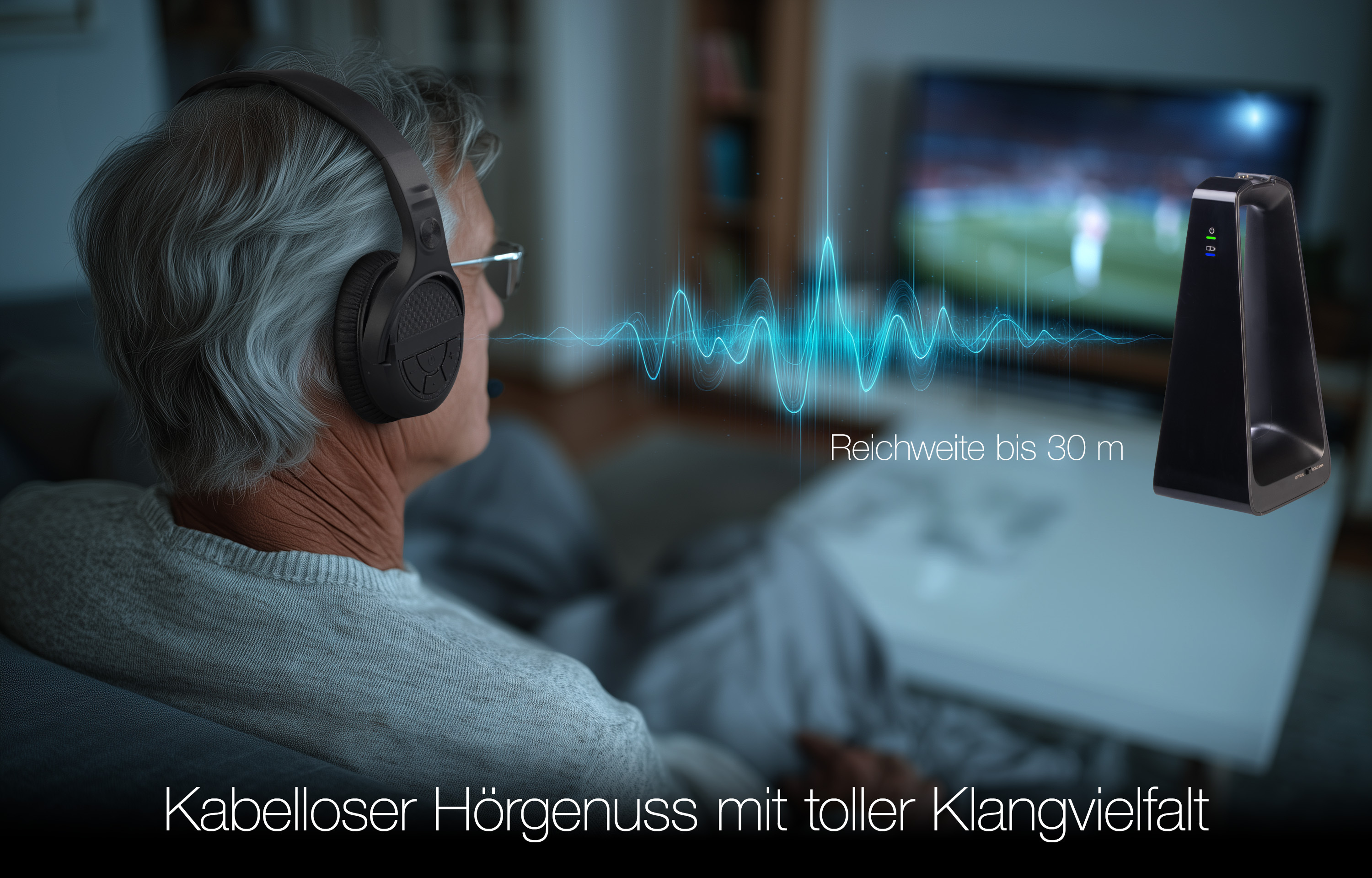 Optional ist ein Zusatzkopfhörer erhältlich, der sich ebenfalls mit der Ladestation verbinden lässt – ideal für gemeinsame Fernsehabende zu zweit oder eine Silent Disco im heimischen Wohnzimmer.