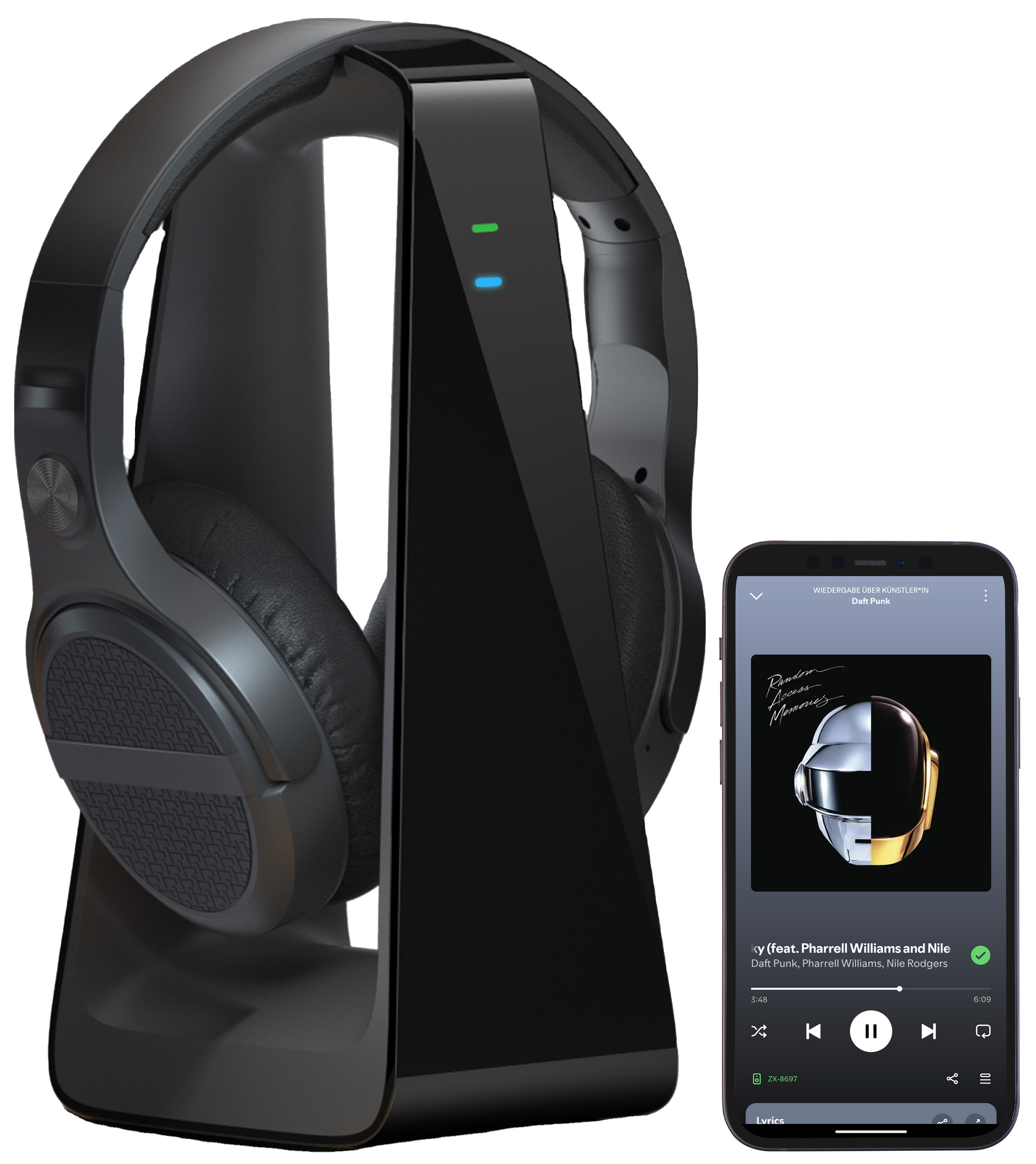 Zusätzlicher Funk-Kopfhörer für doppeltes Vergnügen:Einfach den zweiten Kopfhörer mit der schon vorhandenen Lade- und Basisstation verbinden und schon erfolgt die Audio-Übertragung gleichzeitig an diesen sowie den schon vorhandenen Kopfhörer. Perfekt für gemütliche Fernsehabende zu zweit oder die Silent Disco im heimischen Wohnzimmer.