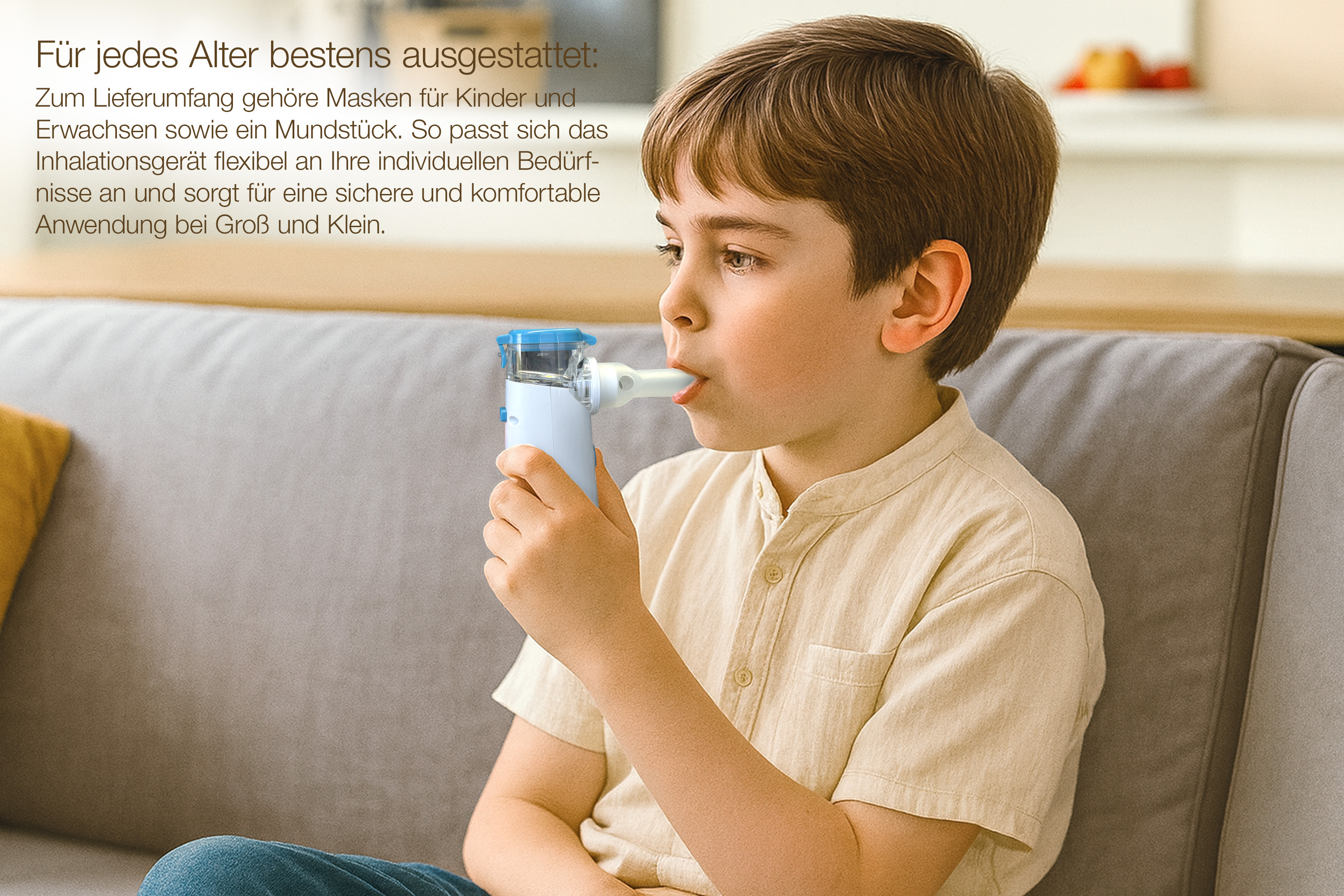 (lifepr) (Buggingen, 18.12.2025) Ideal für Erwachsene und Kinder: Das Akku-Inhalationsgerät von newgen medicals ist mit einem Betriebsgeräusch von unter 50 Dezibel sehr leise. Es erzeugt durch Ultraschall feine Aerosol-Partikel mit einer Größe von 0,5 bis 5 Mikrometern, die Beschwerden wie Husten, Bronchitis oder Reizungen durch trockene Luft lindern. Im Lieferumfang enthalten sind Masken für Erwachsene und Kinder sowie ein Mundstück. Das große Tankvolumen von 10 ml erlaubt eine lange Anwendungsdauer. Der integrierte 750-mAh-Li-Ion-Akku ermöglich bis zu 10 Anwendungen und lässt sich per USB-C aufladen.