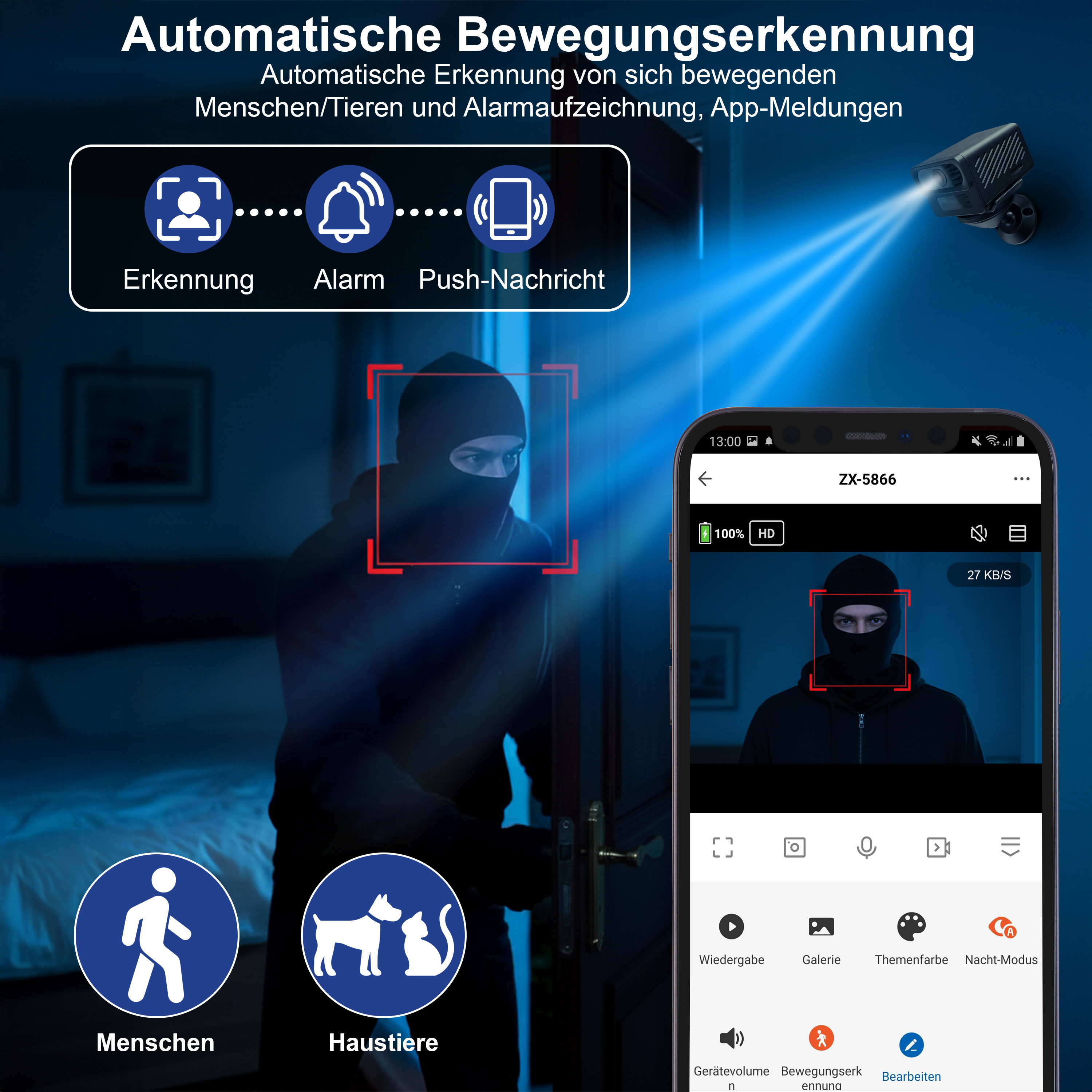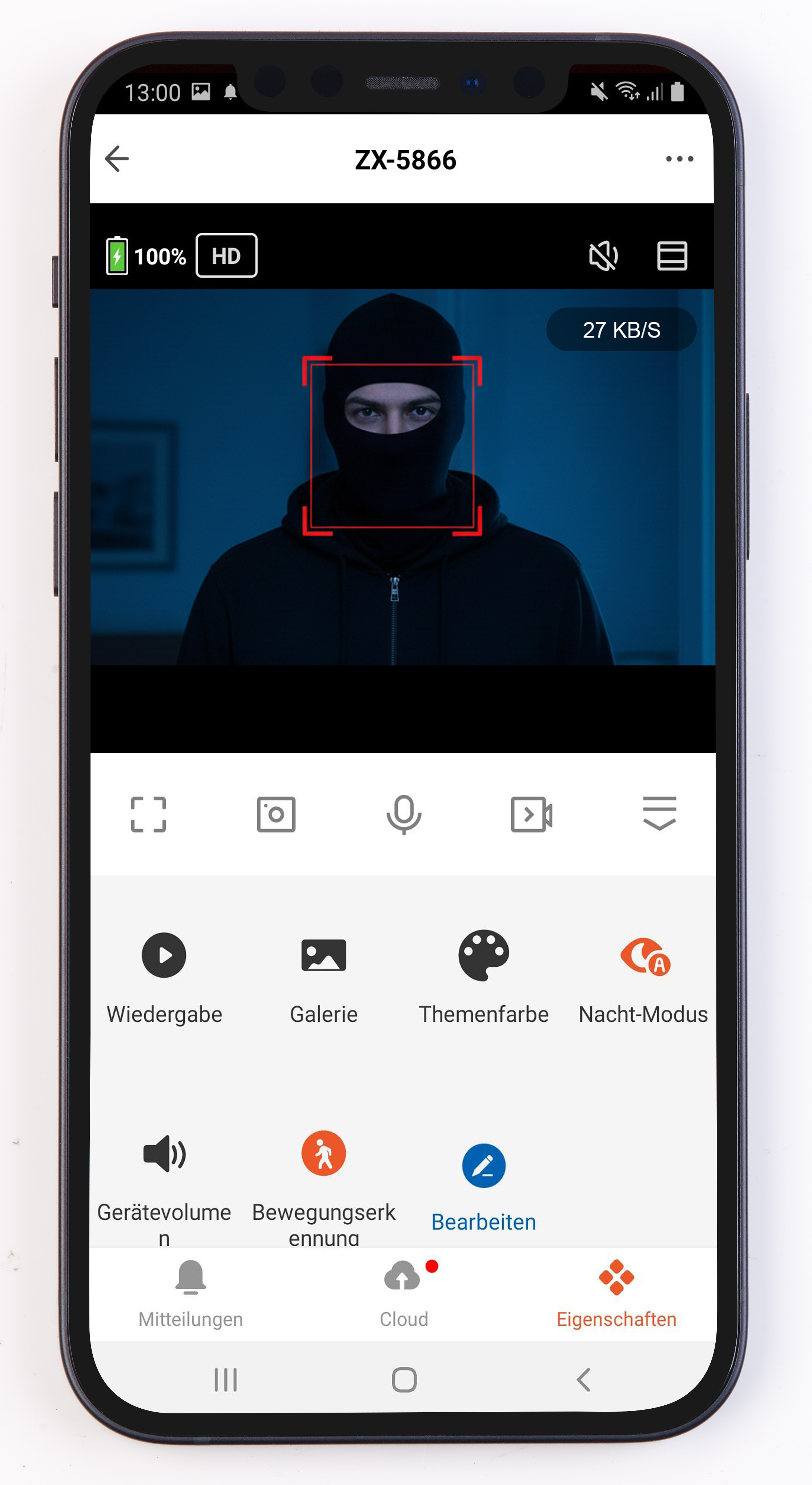 Volle Kontrolle per App „ELESION“ – weltweit: Bei erkannten Bewegungen erfolgt automatisch eine Benachrichtigung auf Smartphone oder Tablet. Live-Bilder lassen sich jederzeit abrufen, Aufzeichnungen bequem ansehen. Sämtliche Funktionen und Einstellungen werden zentral über die App gesteuert.
