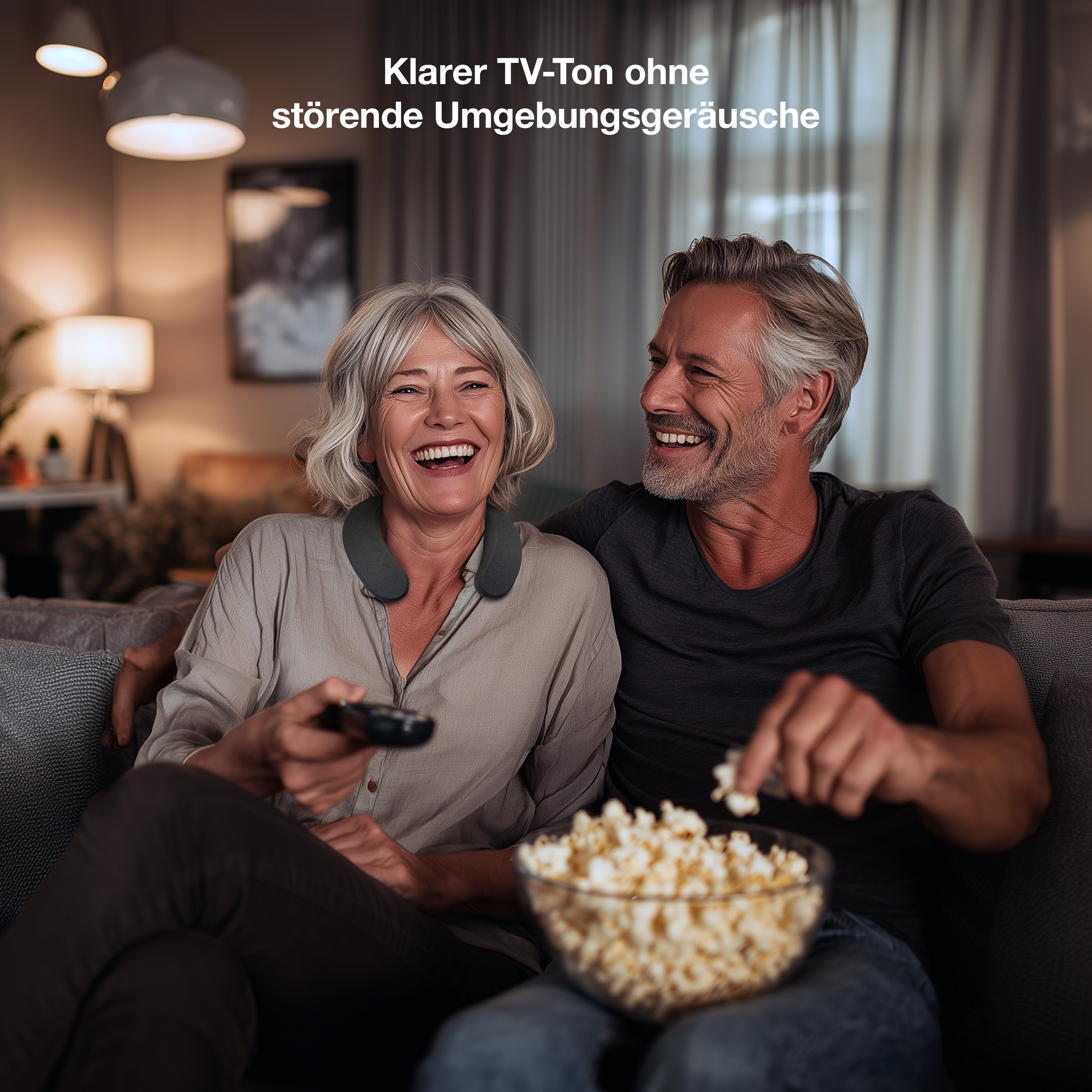 Direkter Fernsehton ohne Lautstärkeprobleme: Der Funk-Hörverstärker und Nackenlautsprecher von auvisio überträgt den TV-Ton klar und deutlich. Drei voreingestellte Hörprofile optimieren den Klang für unterschiedliche Anforderungen – etwa zur Sprachverständlichkeit oder Geräuschunterdrückung. Die Fernsehlautstärke kann dadurch niedrig bleiben, während der Ton trotzdem gut verständlich ankommt.