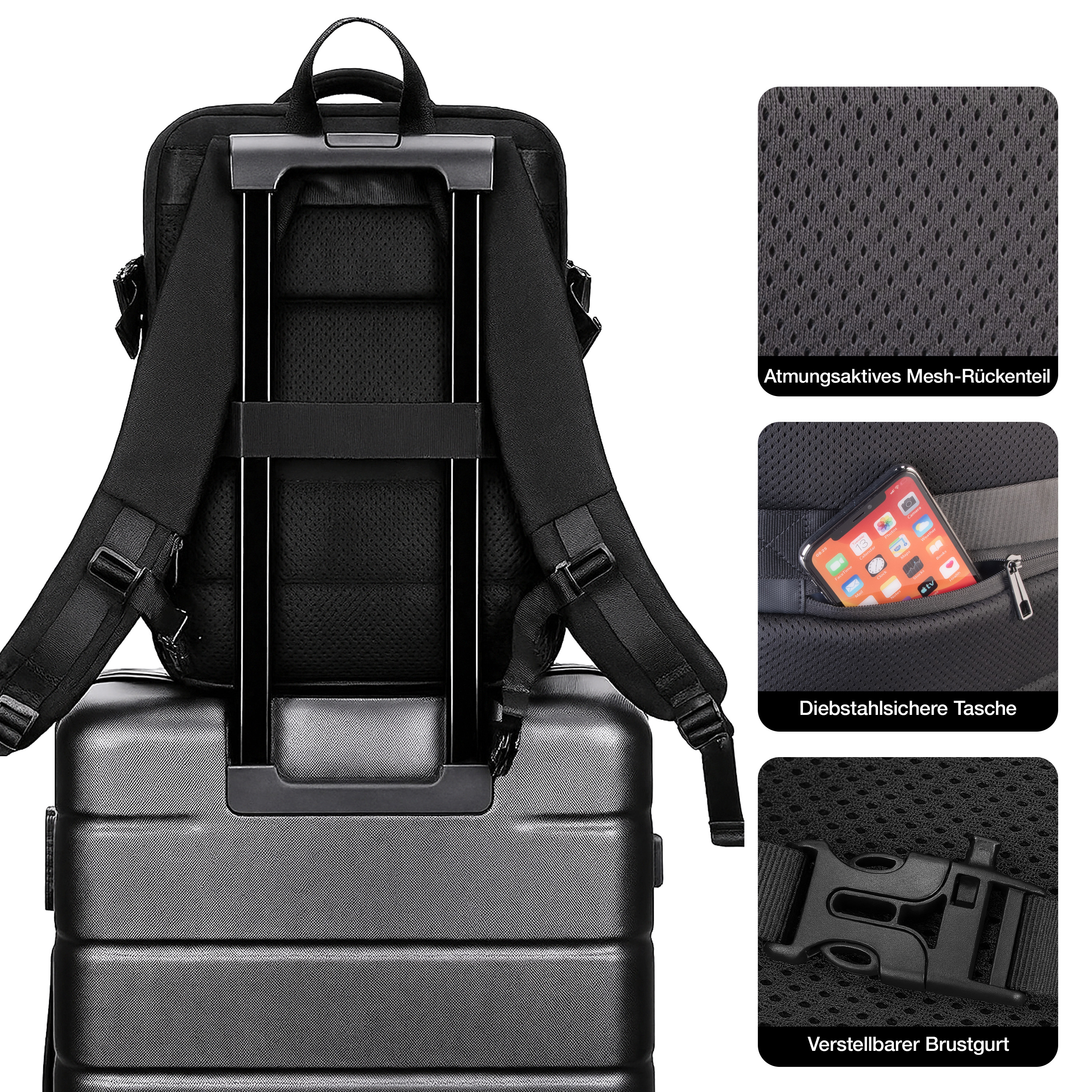 Großzügiges Fassungsvermögen: Mit 40 Litern Kapazität bietet der Rucksack genügend Platz für Wäsche, Schuhe und alle notwendigen Reiseutensilien. Die großzügige Aufteilung macht den Rucksack ideal für Wochenendtrips, Spontanreisen und Geschäftsreisen.