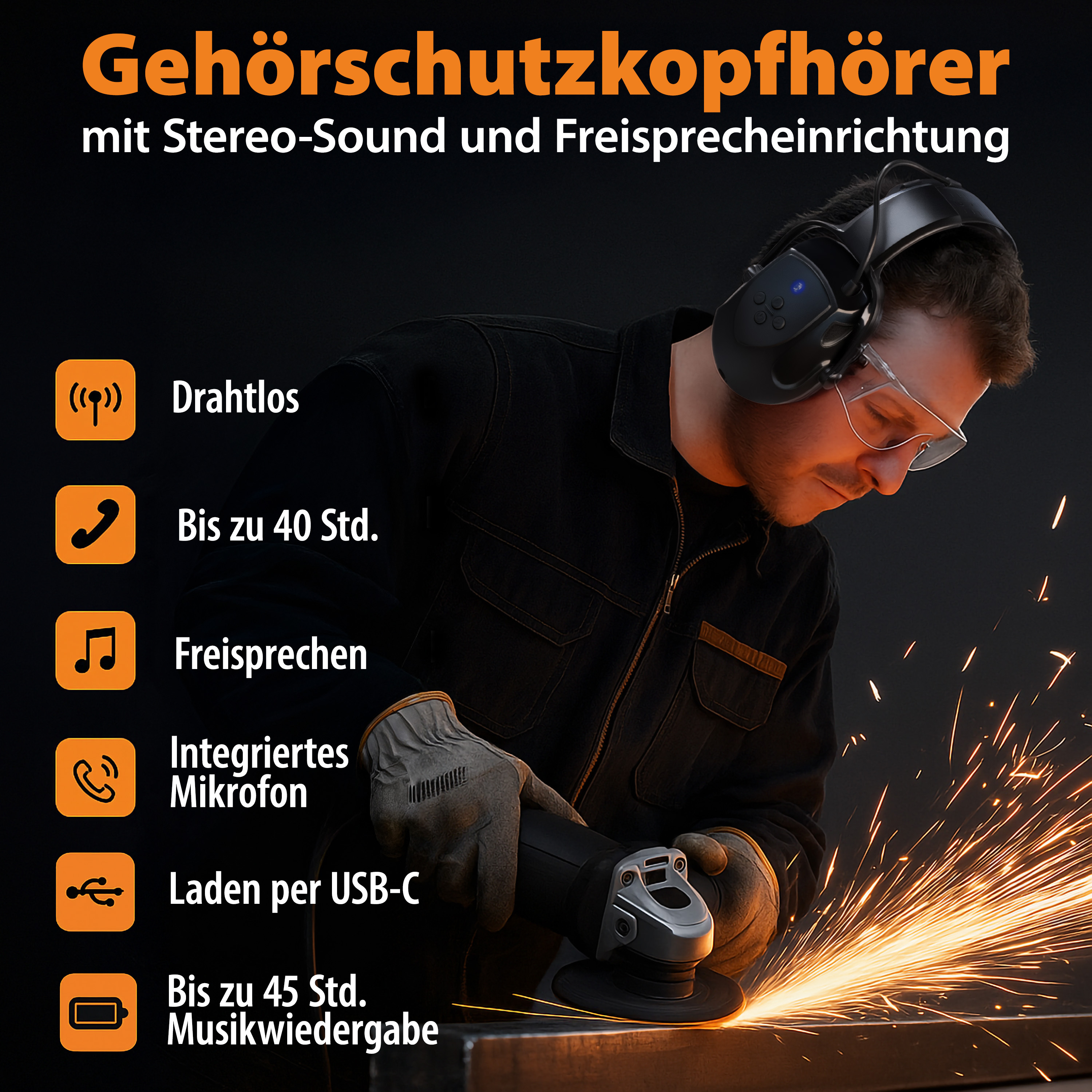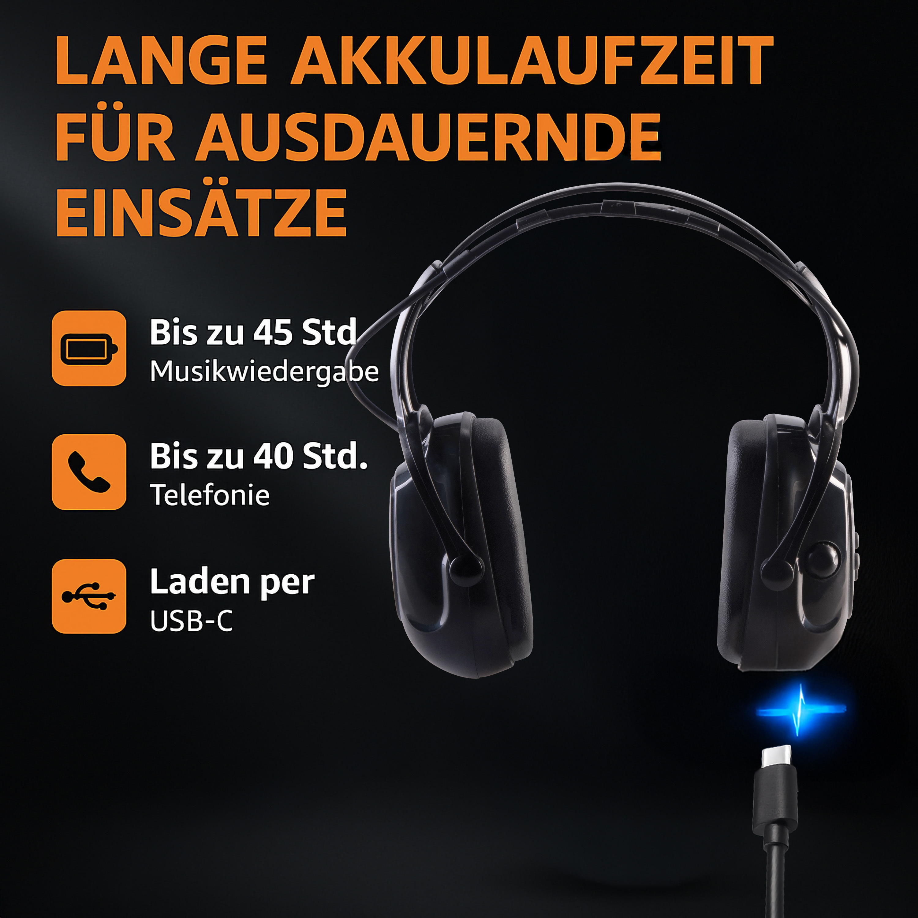 Gehörschutz kombiniert mit kabelloser Audiowiedergabe:Der Akku-Gehörschutzkopfhörer von AGT verbindet aktiven Lärmschutz mit Bluetooth-5.1-Konnektivität. Die kabellose Verbindung zu Smartphones oder Tablets ermöglicht das Abspielen von Musik, Podcasts oder die Annahme von Anrufen in lauten Arbeitsumgebungen.