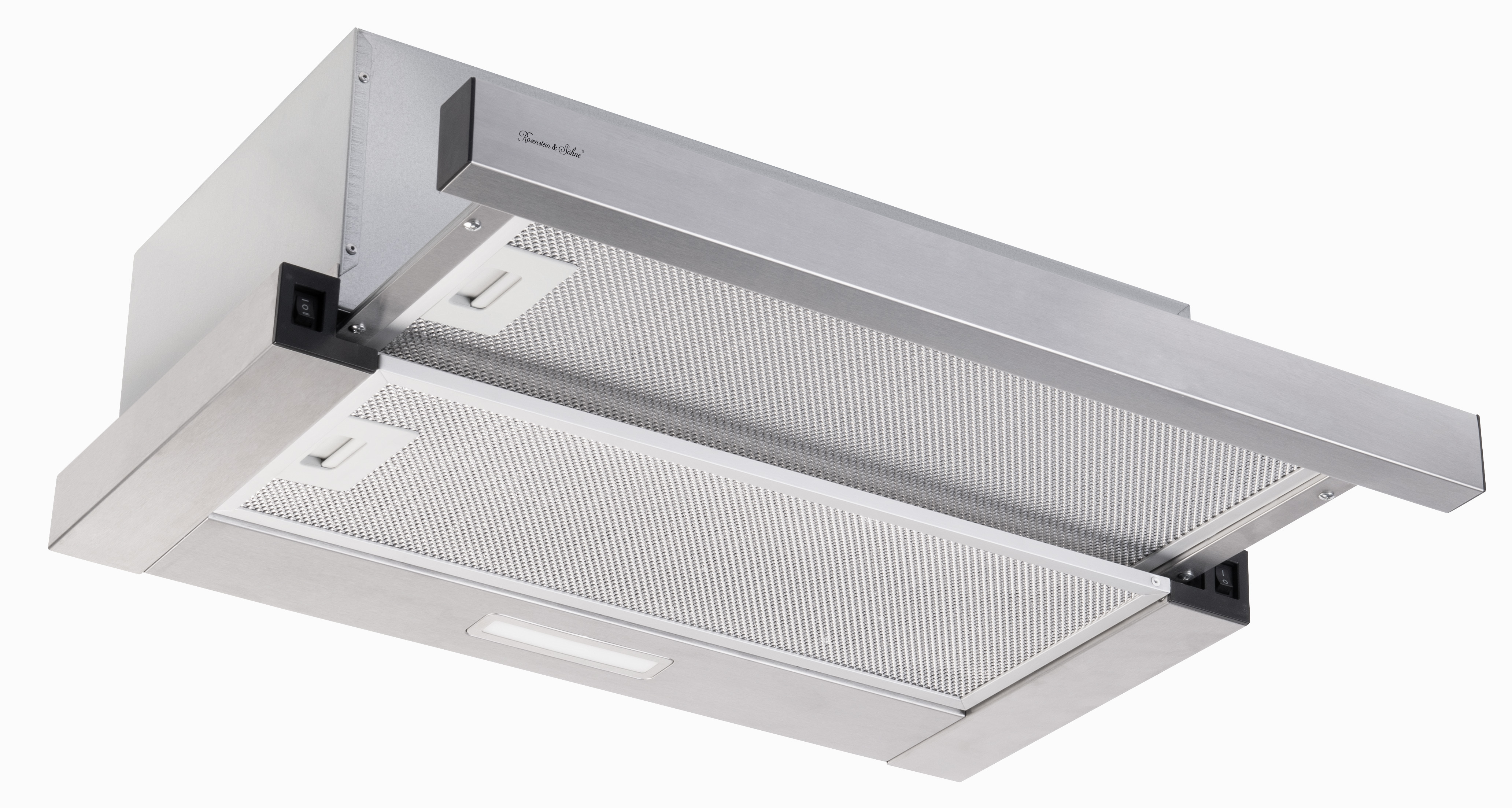 (lifepr) (Buggingen, 23.01.2026) Effektive Geruchsfilterung in unauffälligem Küchendesign: Die 60 Zentimeter breite Flachschirm-Dunstabzugshaube von Rosenstein & Söhne erreicht eine Saugleistung von 350 m³ pro Stunde bei einer Leistung von lediglich 65 Watt. Sie ist zum Einbau in Küchenhängeschränke geeignet und arbeitet als Umlufthaube mit integriertem Aktivkohlefilter. Mit einem optionalen Abluftschlauch kann sie auch als Ablufthaube eingesetzt werden. Es stehen zwei Geschwindigkeitsstufen – niedrig und hoch – zur Verfügung. Eine integrierte LED-Beleuchtung erhellt das Kochfeld.