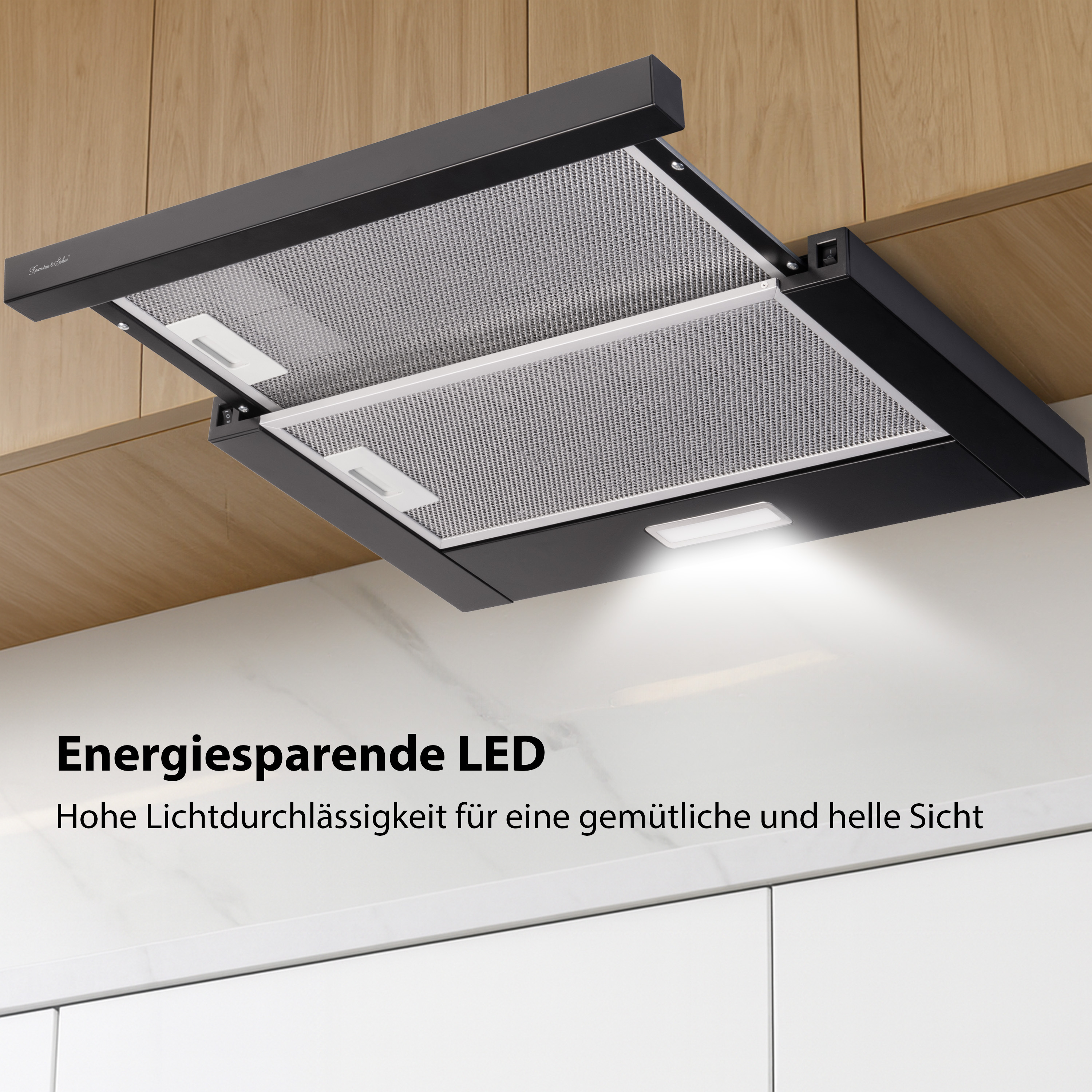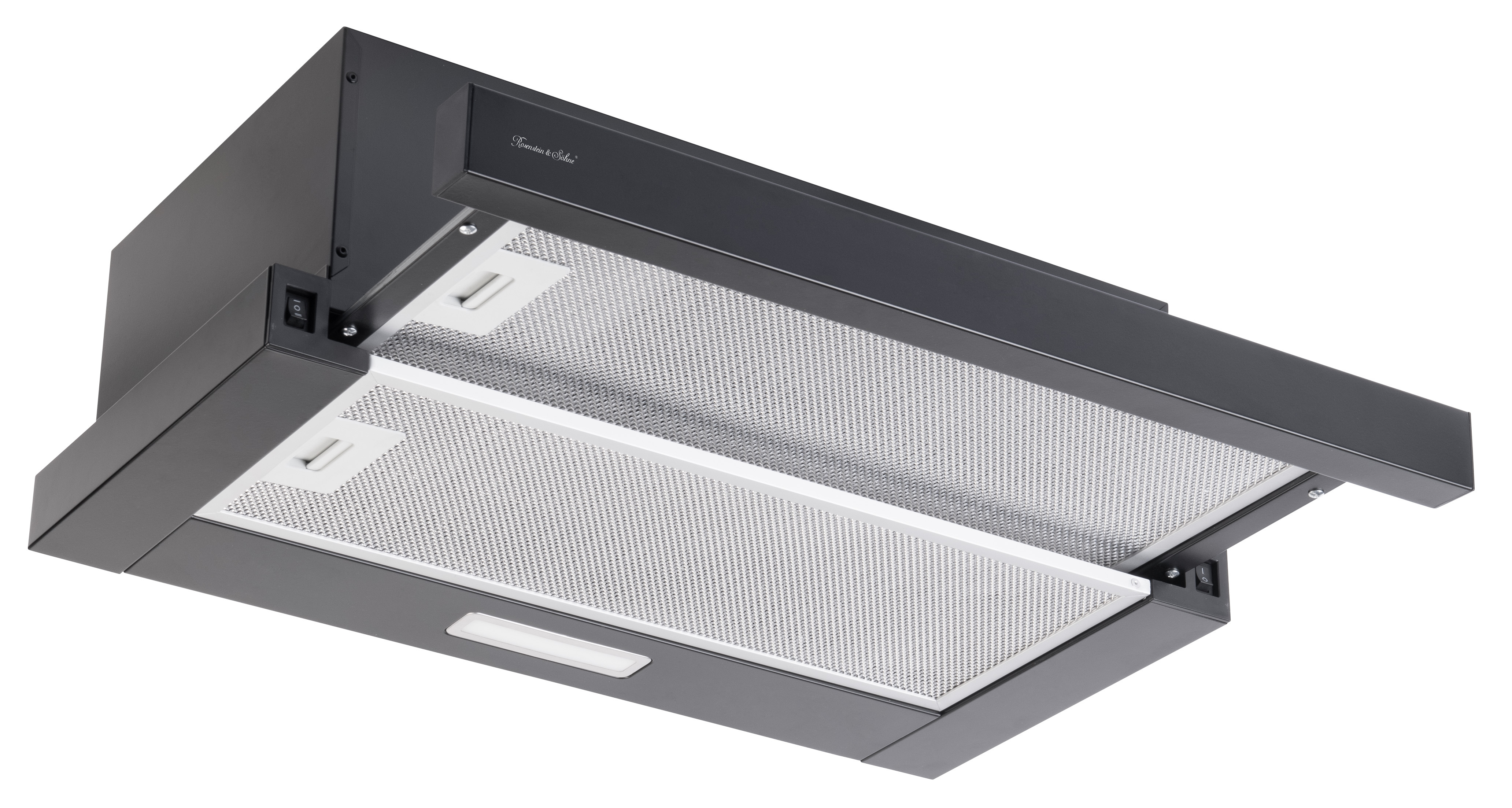Rosenstein & Söhne Flachschirm-Dunstabzugshaube, Umluft, 350m³/Std. Saugleistung, schwarz