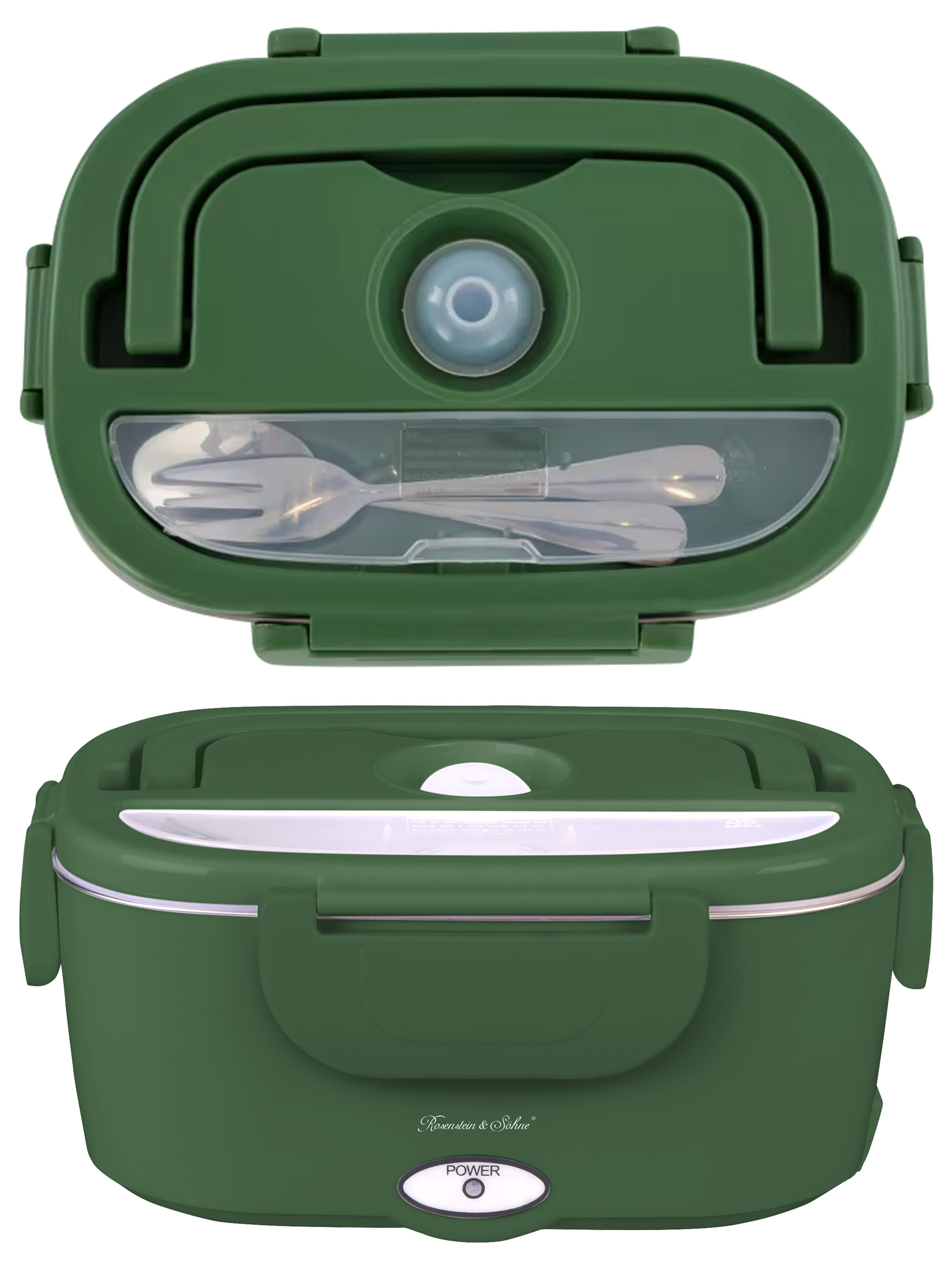 (lifepr) (Buggingen, 02.03.2026) Die elektrische Lunchbox von Rosenstein & Söhne ermöglicht es, auch außer Haus warme Mahlzeiten zu genießen – sei es im Büro, unterwegs im Auto oder im Lkw. Der herausnehmbare Behälter aus Edelstahl fasst 1,5 Liter und kann wahlweise über eine Steckdose (230 Volt) oder den Zigarettenanzünder (12/24 Volt) mit Strom versorgt werden. Eine zusätzliche Kunststoffdose mit Deckel bietet Platz für Beilagen und Toppings. Gabel und Löffel aus Edelstahl können platzsparend im Deckel verstaut werden. Die mitgelieferte Isoliertasche schützt das Essen beim Transport und hält die Temperatur. Mit einer Leistung von 80 Watt ist das Gerät auf warme Mahlzeiten in rund 25 Minuten ausgelegt.
