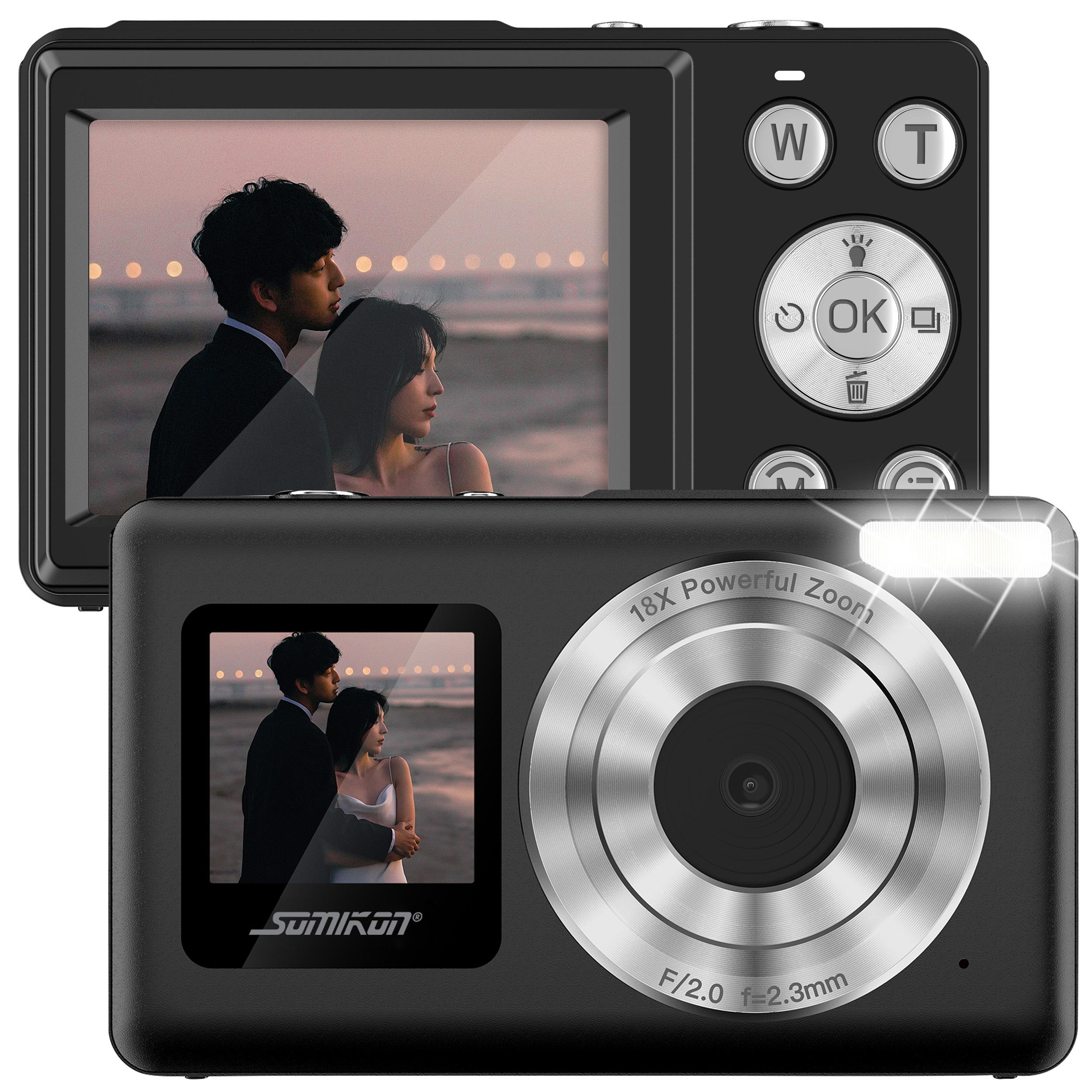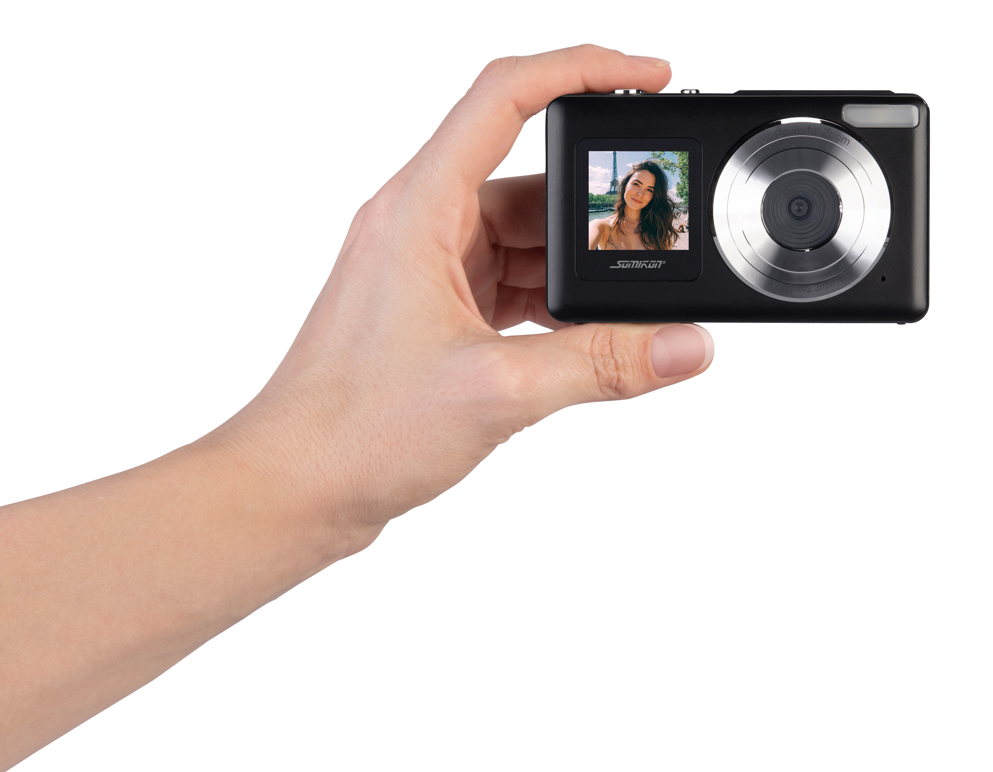 (lifepr) (Buggingen, 03.03.2026) Die Full-HD-Digitalkamera mit zwei Displays von Somikon ermöglicht Videoaufnahmen in Full-HD-Auflösung, die bis zu einer Qualität von 4K interpoliert werden können. Darüber hinaus können Fotos mit bis zu 48 Megapixeln aufgenommen werden. Ein 18-fach-Digitalzoom, Autofokus und LED-Blitzlicht ermöglichen flexible Aufnahmen aus verschiedenen Distanzen und bei unterschiedlichen Lichtverhältnissen. Zwei Farb-LCD-Displays – ein 6,1 cm großes Display auf der Rückseite und ein 3,3 cm großes Frontdisplay – erleichtern die Bildgestaltung und Selfie-Aufnahmen. Die übersichtliche Bedienung richtet sich besonders an Fotografie-Einsteiger und Kinder. Somit eignet sich das kompakte Gerät als kompakter Begleiter für den Urlaub, Alltag, Ausflüge und erste fotografische Projekte.