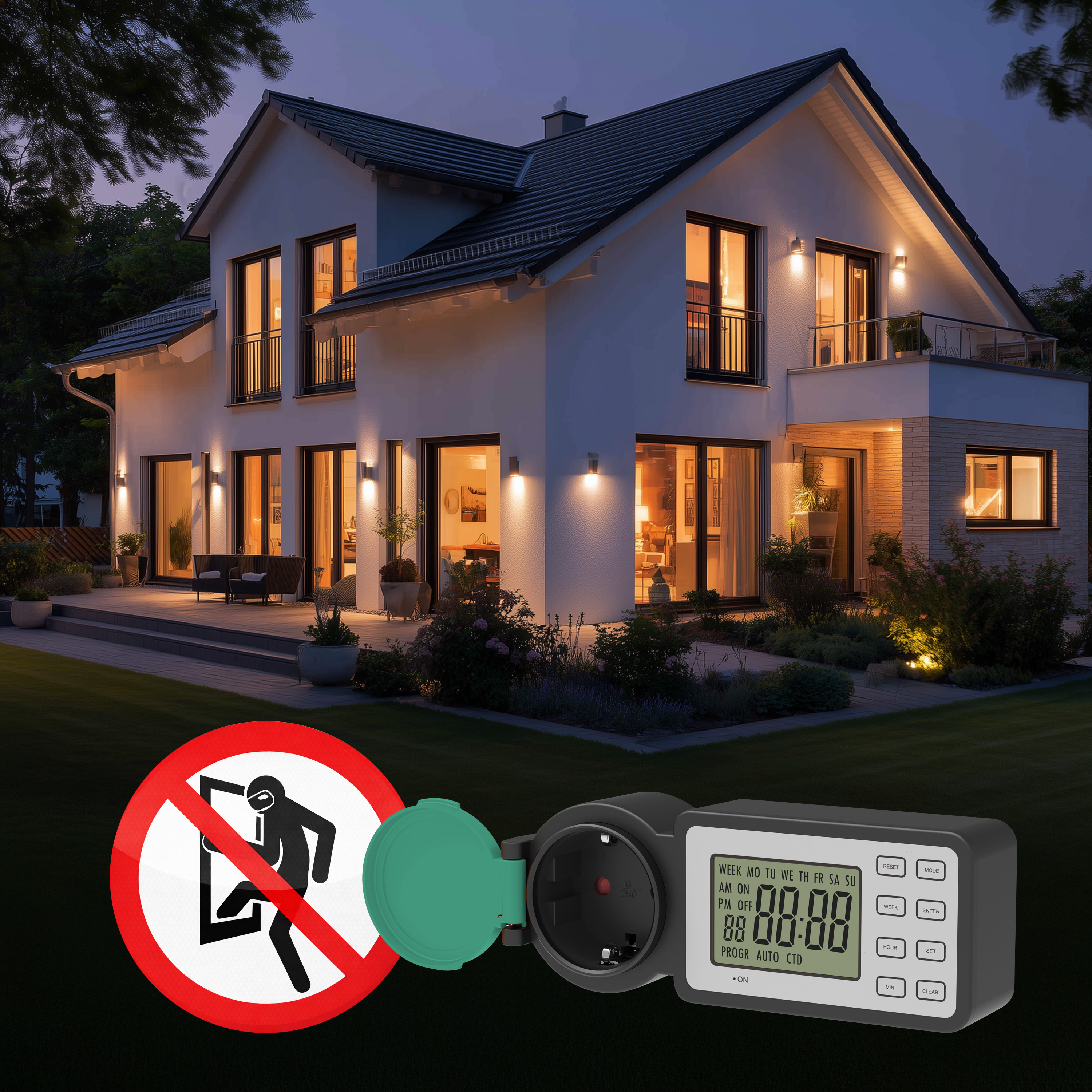 Individuelle Programmierung für jeden Bedarf: Pro Tag speichert die Zeitschaltuhr bis zu 12 Ein- und Ausschaltzeiten – wahlweise für einzelne Tage, Werktage oder das Wochenende. So lässt sich die Stromzufuhr exakt an den Tagesablauf anpassen und unnötiger Energieverbrauch vermeiden: Beleuchtung schaltet sich bei Tageslicht ab, der Springbrunnen pausiert, wenn der Garten ungenutzt bleibt.