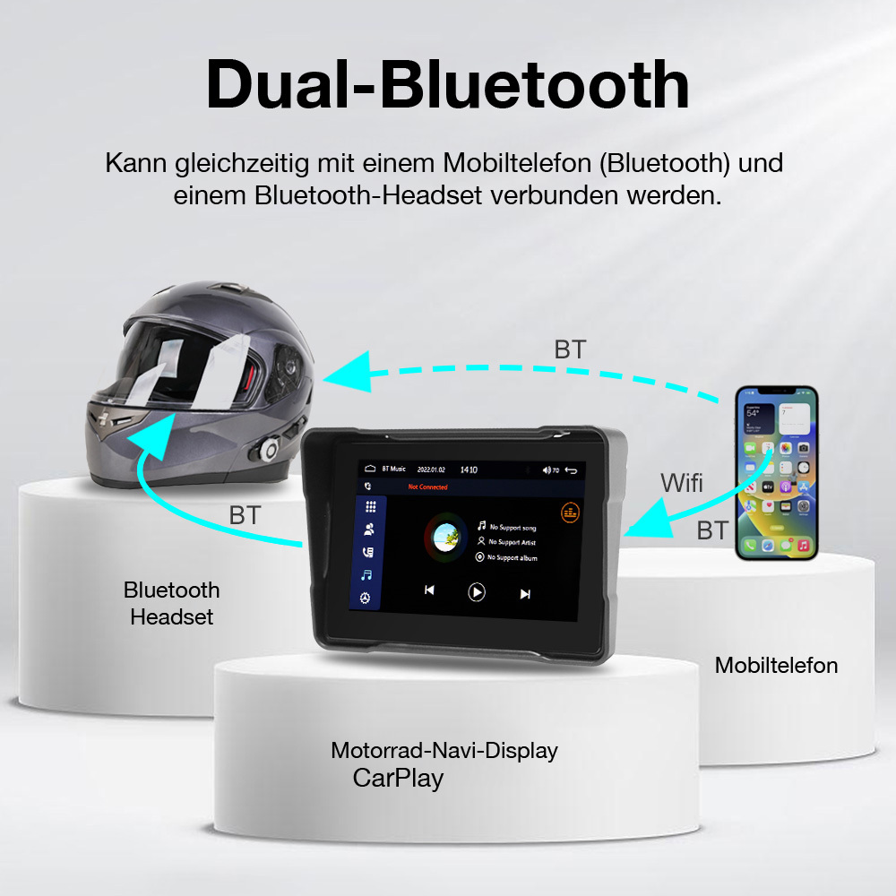 Robust und zuverlässig verbunden: Bluetooth verbindet Smartphone oder Kopfhörer zuverlässig mit dem Display. Das wetterfeste Gehäuse ist für Regen und Sonneneinstrahlung ausgelegt. Die Lenkerhalterung sitzt sicher und lässt sich mit wenigen Handgriffen abnehmen – praktisch für unterwegs oder zur Aufbewahrung.