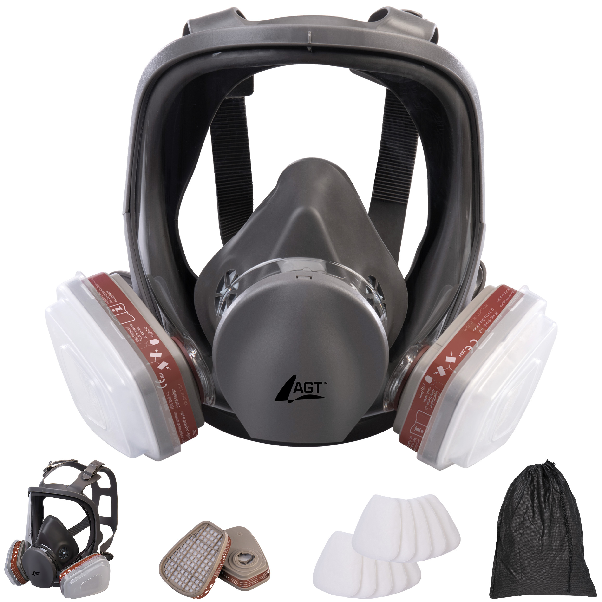 (lifepr) (Buggingen, 30.03.2026) Für den Einsatz in Industrie, Handwerk und bei Heimwerkerarbeiten: Die AGT Vollgesichts-Atemschutzmaske AS-110 mit Filter der Klasse A1P2 (Gasfiltertyp/-klasse A1 und Partikelfiltertyp/-klasse P2) schützt Gesicht, Augen und Atemwege gleichzeitig vor Dämpfen, Gasen, Partikeln und Feinstaub. Im Lieferumfang sind zwei Gasfilter und zehn Partikelfilter enthalten, sodass die Maske sofort einsatzbereit ist. Dank auswechselbarer Filter ist sie wiederverwendbar und somit langlebig. Die Maske entspricht den Anforderungen der Verordnung für persönliche Schutzausrüstung (PSA).