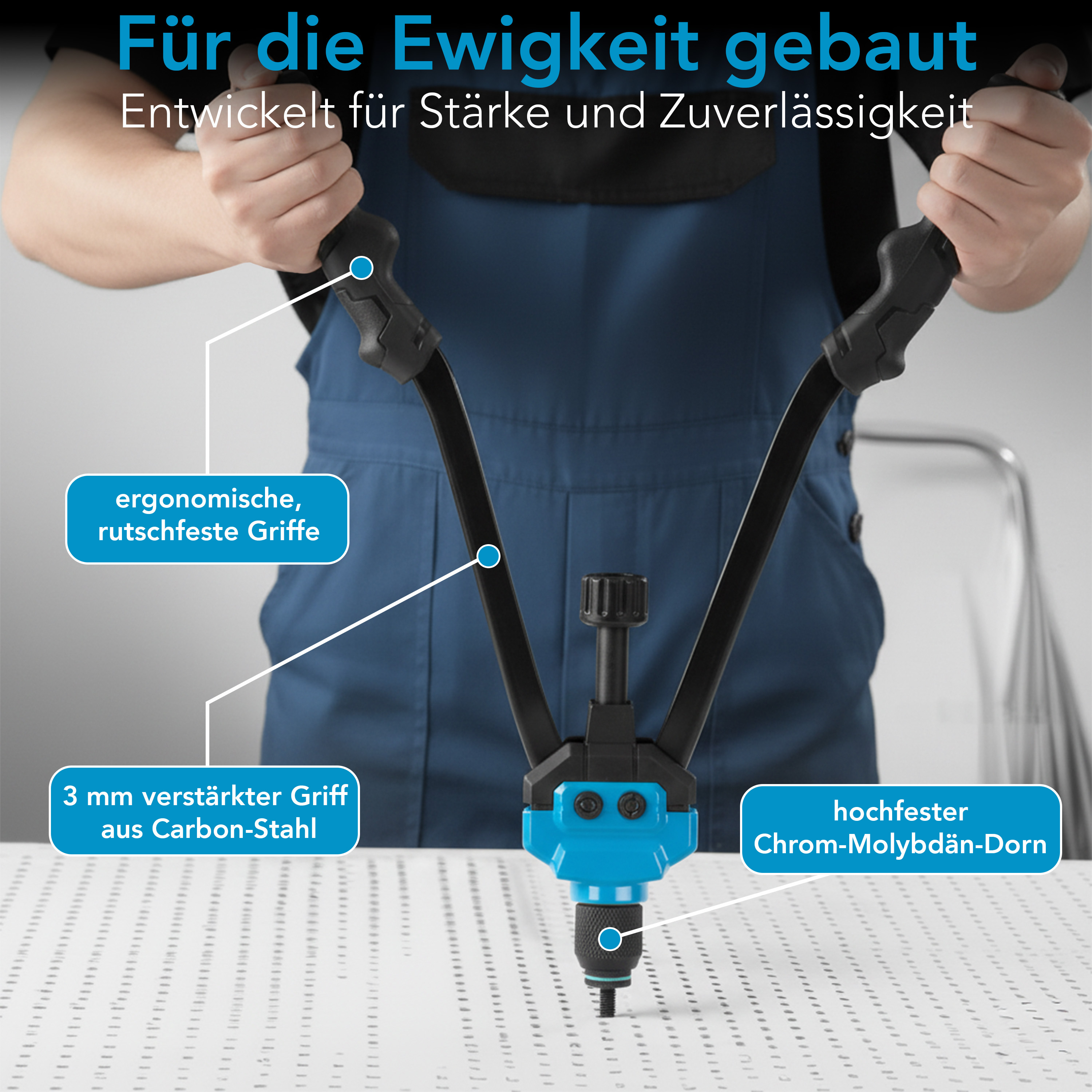 Hohe Hebelwirkung bei geringem Kraftaufwand: Mit einer Länge von 40 cm ermöglicht die Nietmutternzange von AGT besonders kraftsparendes Arbeiten – ideal für einfache, dauerhafte und präzise Verbindungen.