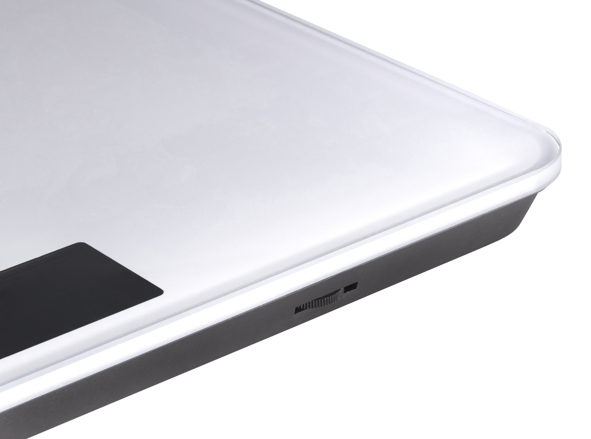 Robuste Glasfläche aus Sicherheitsglas: Die sechs Millimeter starke, trittfeste Glasoberfläche bietet sicheren Stand – auch auf glatten Badezimmerfliesen. Das Material bleibt auch bei häufiger Nutzung stabil und fügt sich optisch dezent in den Raum ein.