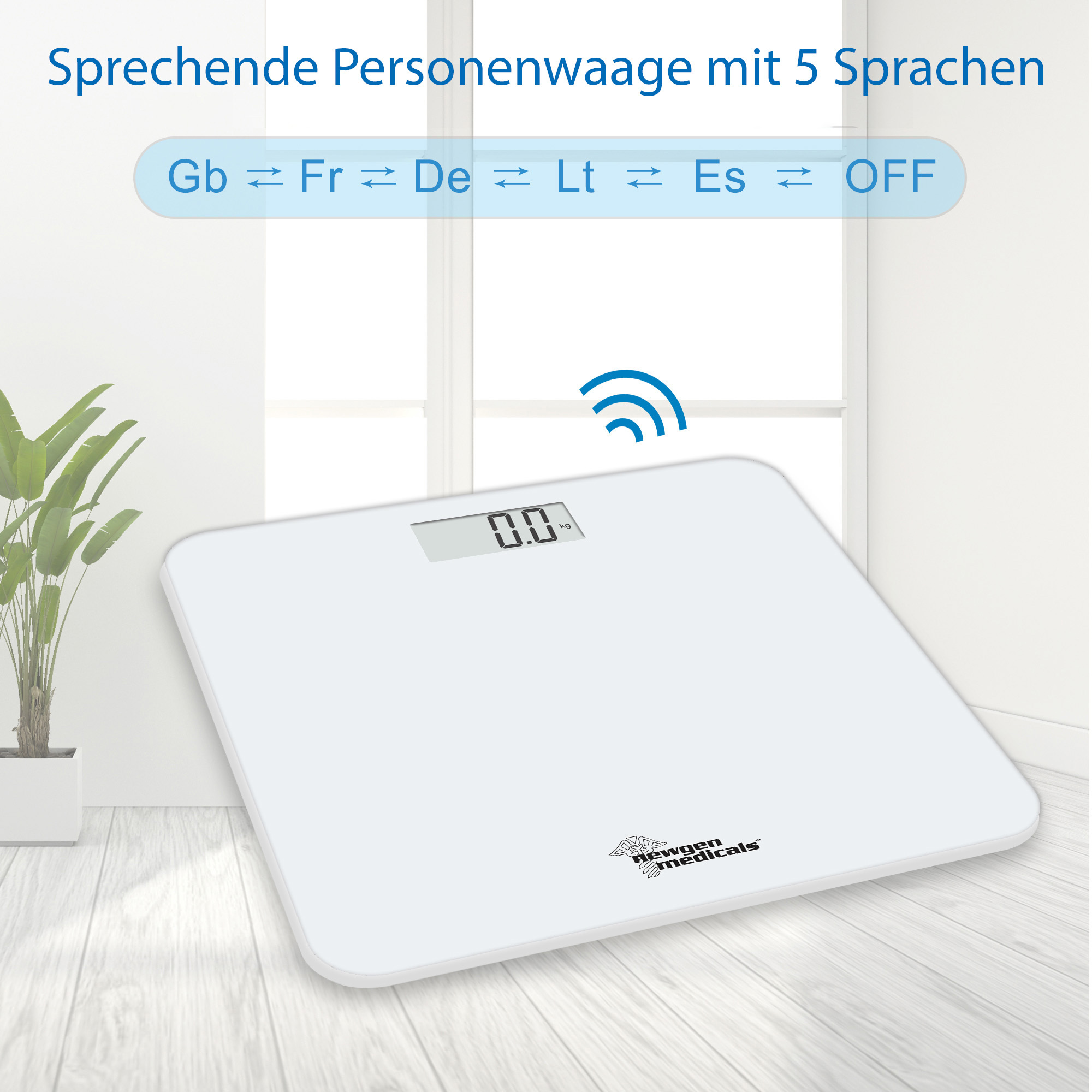 (lifepr) (Buggingen, 07.04.2026) Die sprechende Personenwaage von newgen medicals gibt das gemessene Gewicht komfortabel auch per Sprachausgabe in fünf Sprachen aus: Deutsch, Englisch, Französisch, Italienisch und Spanisch. Mit einer maximalen Belastbarkeit von 250 kg und einer Messgenauigkeit von 100 Gramm eignet sie sich für eine präzise Gewichtskontrolle im Alltag. Das große und helle LCD-Display ist gut ablesbar und erleichtert die Nutzung auch für Menschen mit Seheinschränkungen. Die 6 mm dicke Trittfläche aus Sicherheitsglas ist robust und sorgt für einen stabilen und sicheren Stand. Der Betrieb erfolgt über handelsübliche AAA-Batterien.